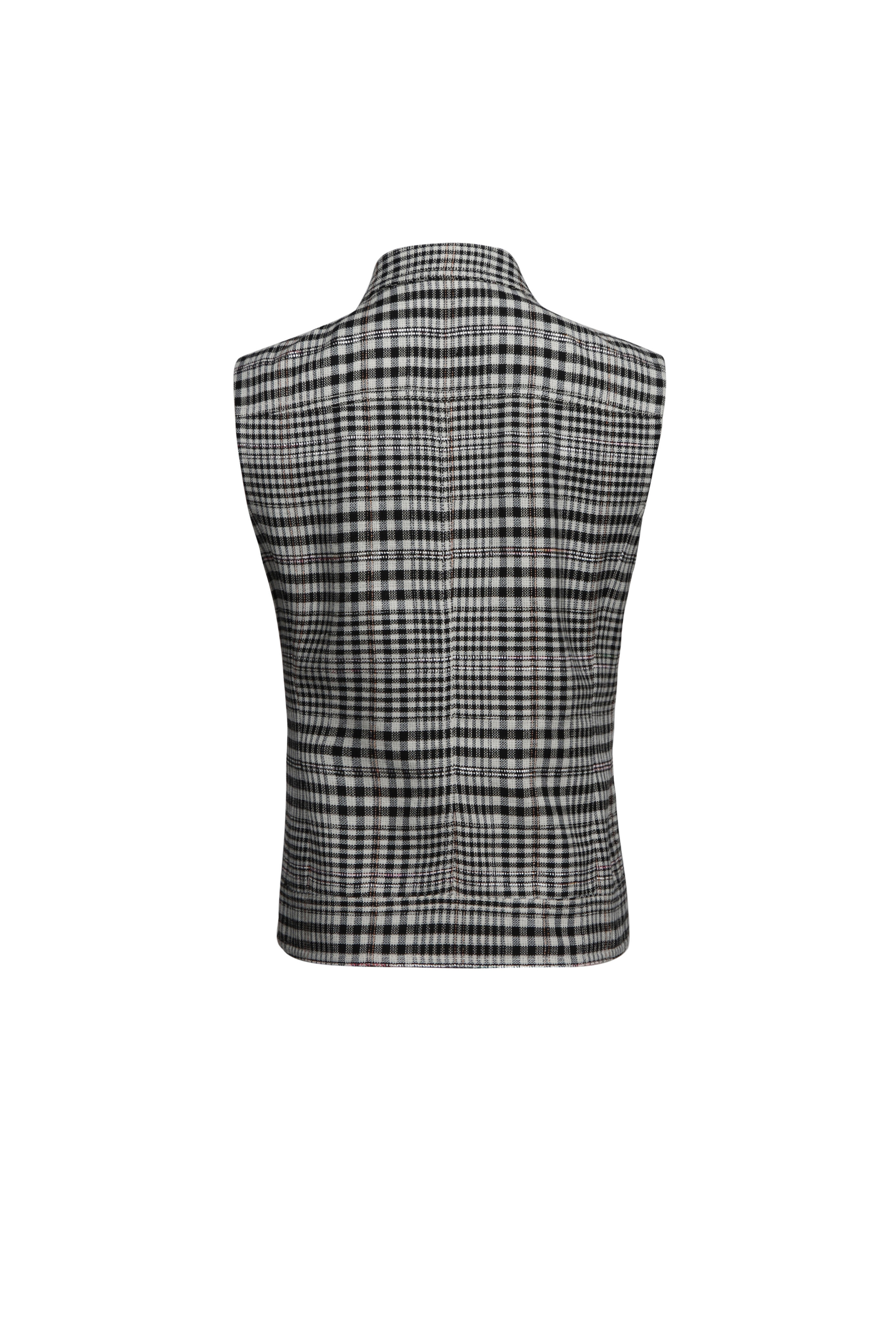Kent collar. Sleeveless. Button down front closure. Side slip pockets. Imported. Bust 33.5”-34” (US 4). Hip 25”-26” (US 4). 30% acrylic, 25% cotton, 17% viscose, 15% jute, 12% polyester, 1% nylon outer, 100% cupro lining. Dry clean.
