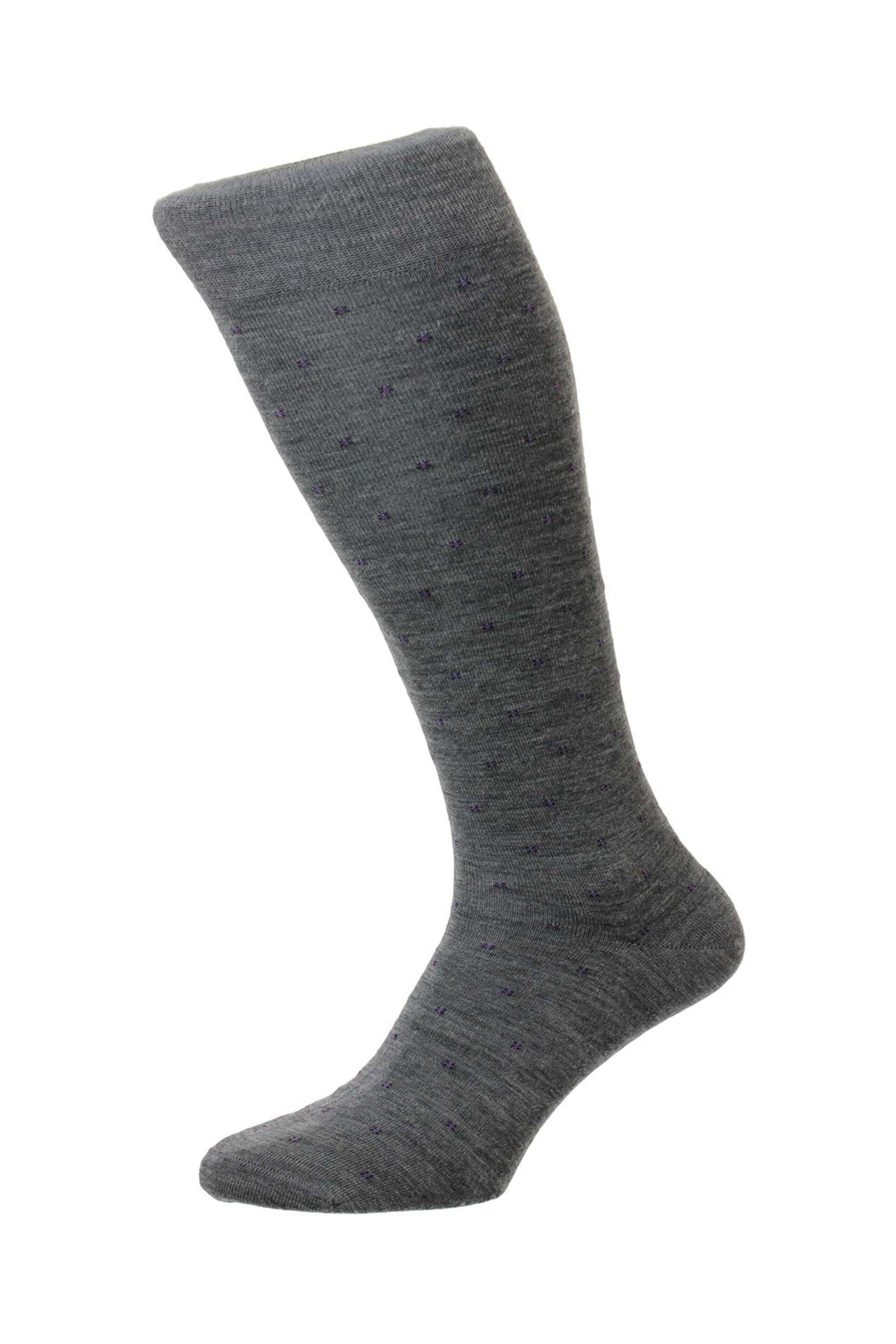 - Pantherella Mid-Grey Banim Over-the-Calf Wool Sock Mini box motif Seamless toe Over the calf 71% merino wool~ 29% nylon
