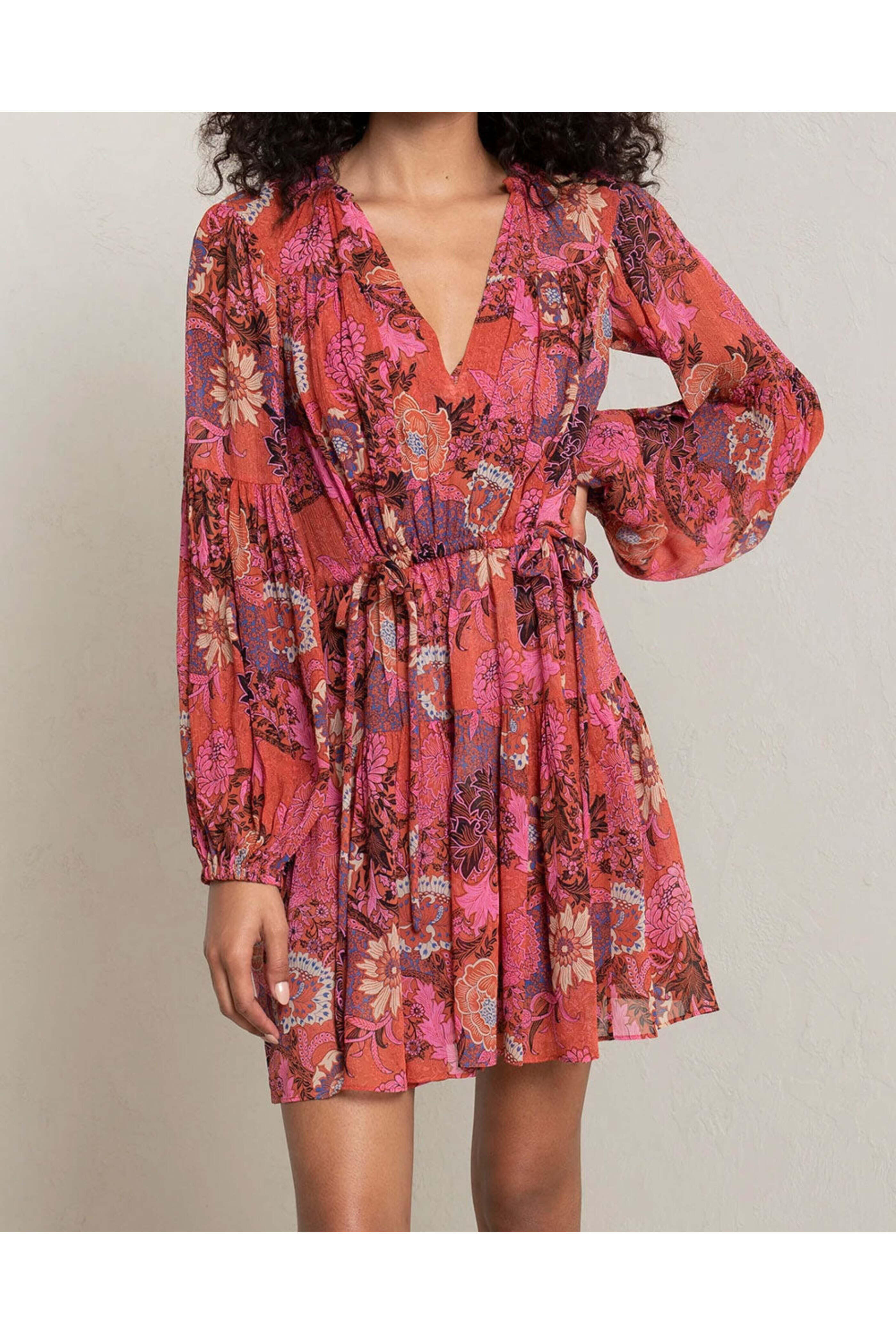 Pink and Russet Floral Elises Mini Dress