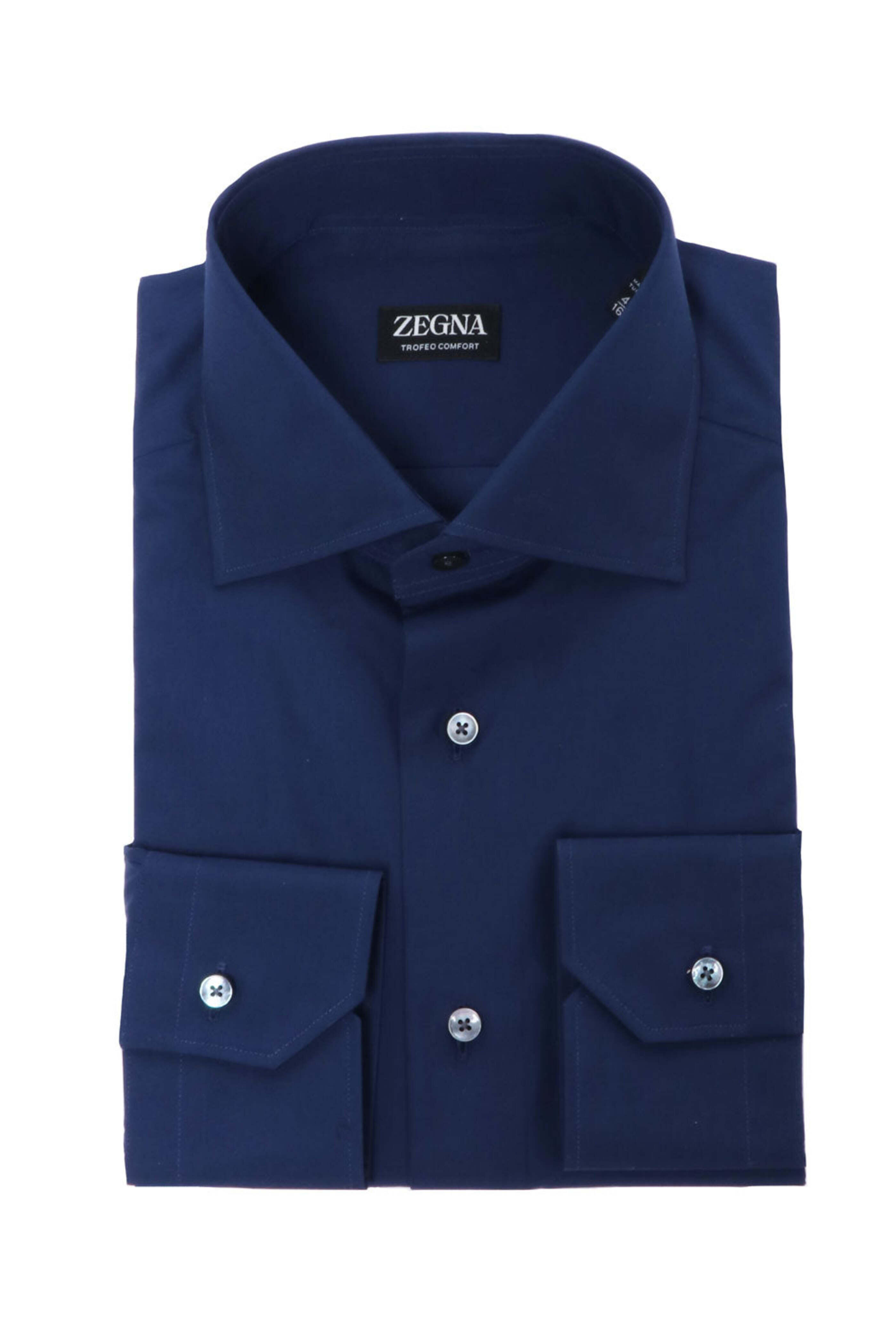 - Zegna Solid Navy Dress Shirt