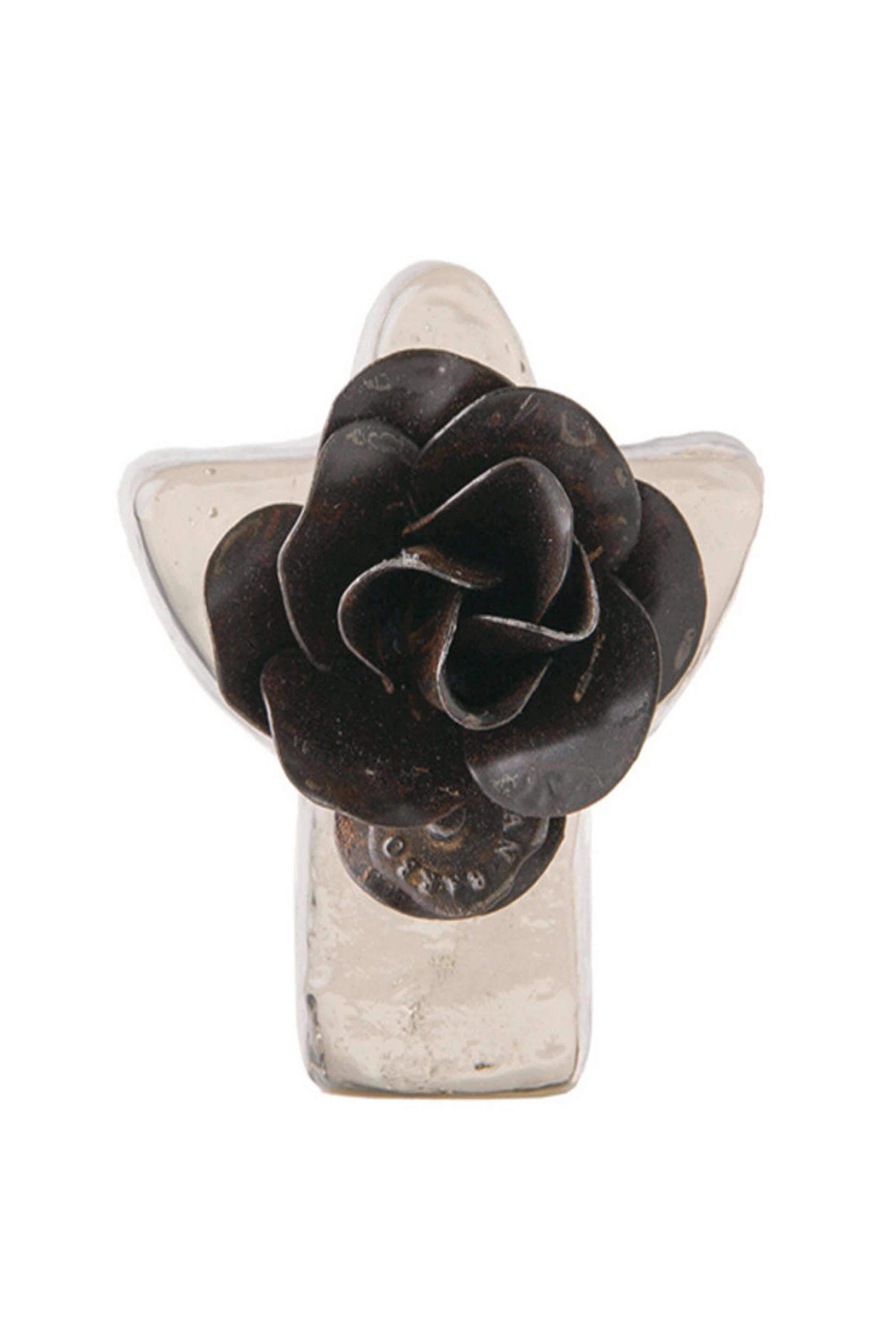 Jan Barboglio Rosa Angel Hand Cast. Glass angel blessing with rose. Glass and iron finish. 3W x 3D x 3H.