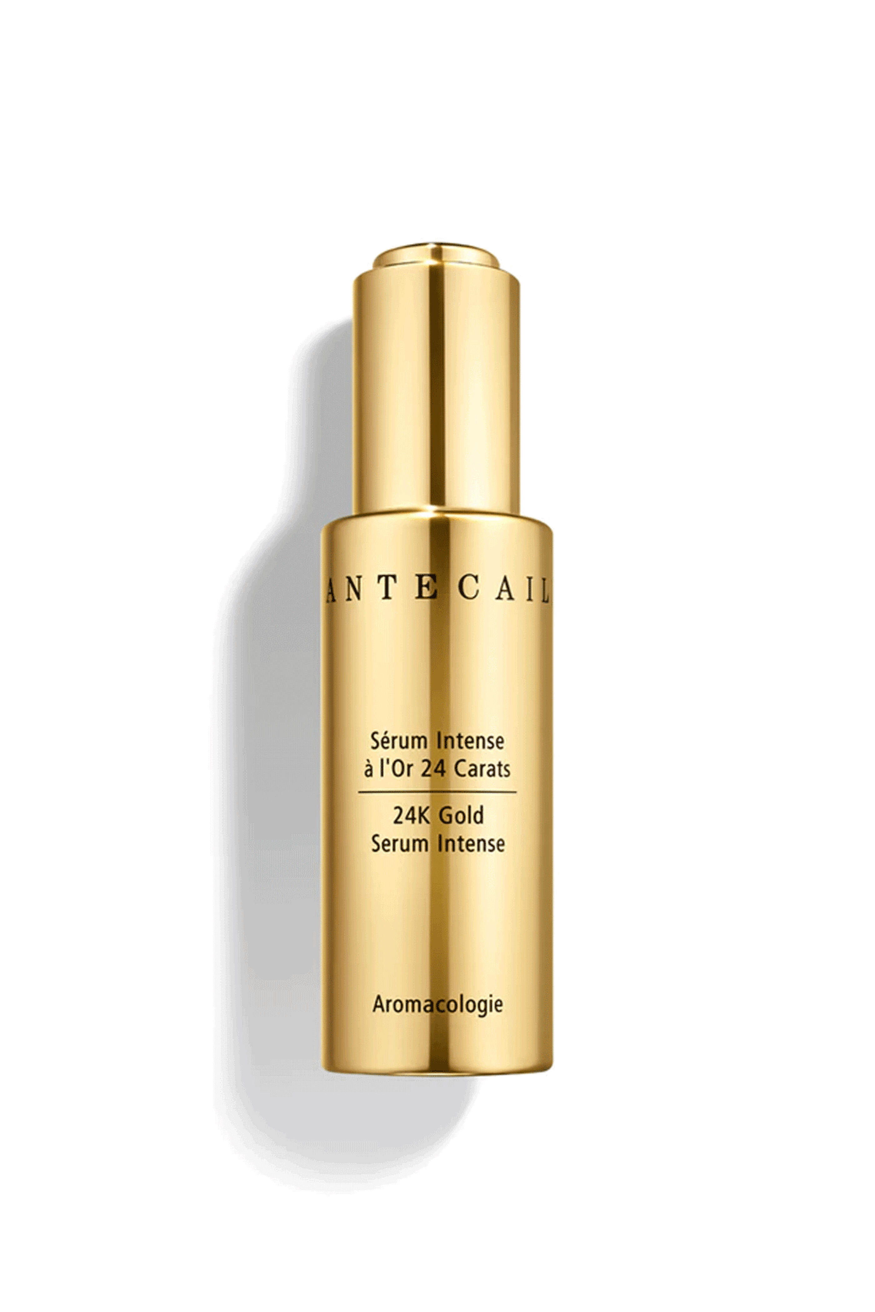 Chantecaille 24K Gold Face Serum. A potent formula with a 360-degree approach to radiance featuring an innovative cocktail of pure gold and Vitamin C plus peptides, botanicals, and hyaluronic acid. No Animal Testing. Gluten Free. Vegan.. Made in Switzerland. 30 ml.