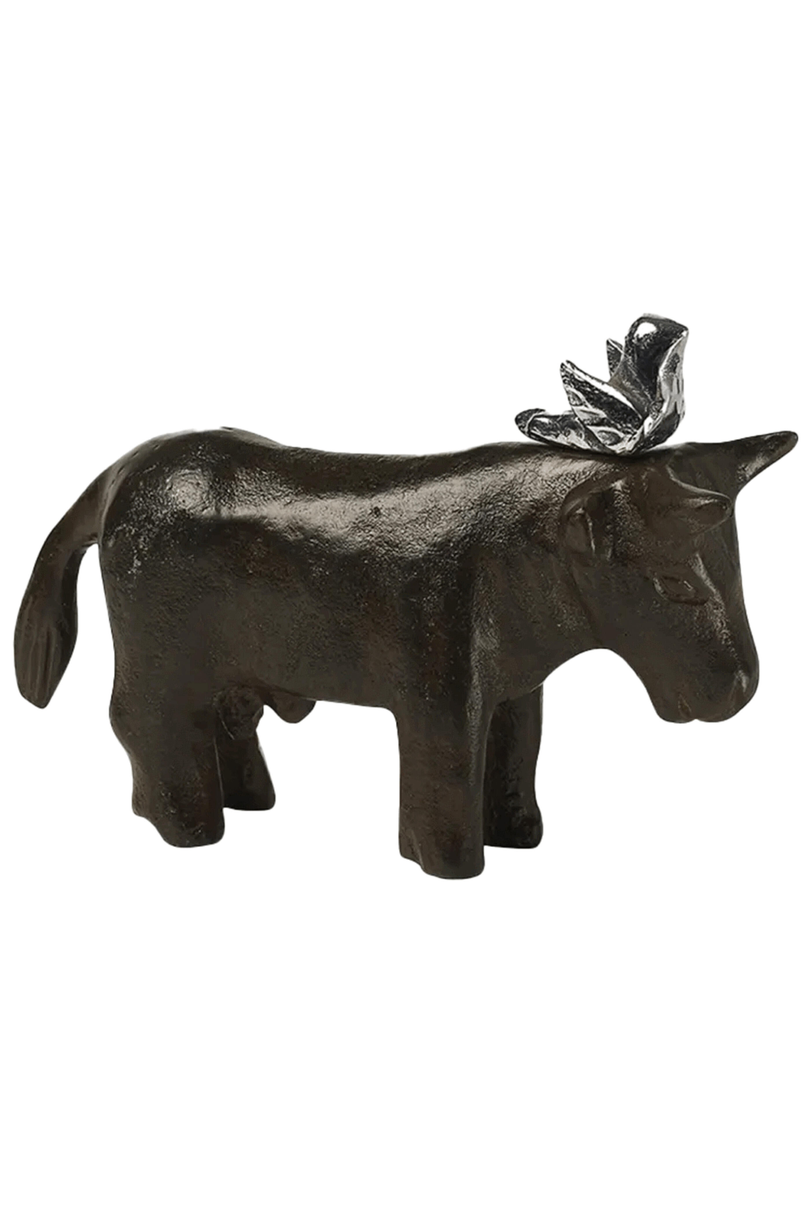 - Bull sculpture made of wax cast iron with nickelplated dove