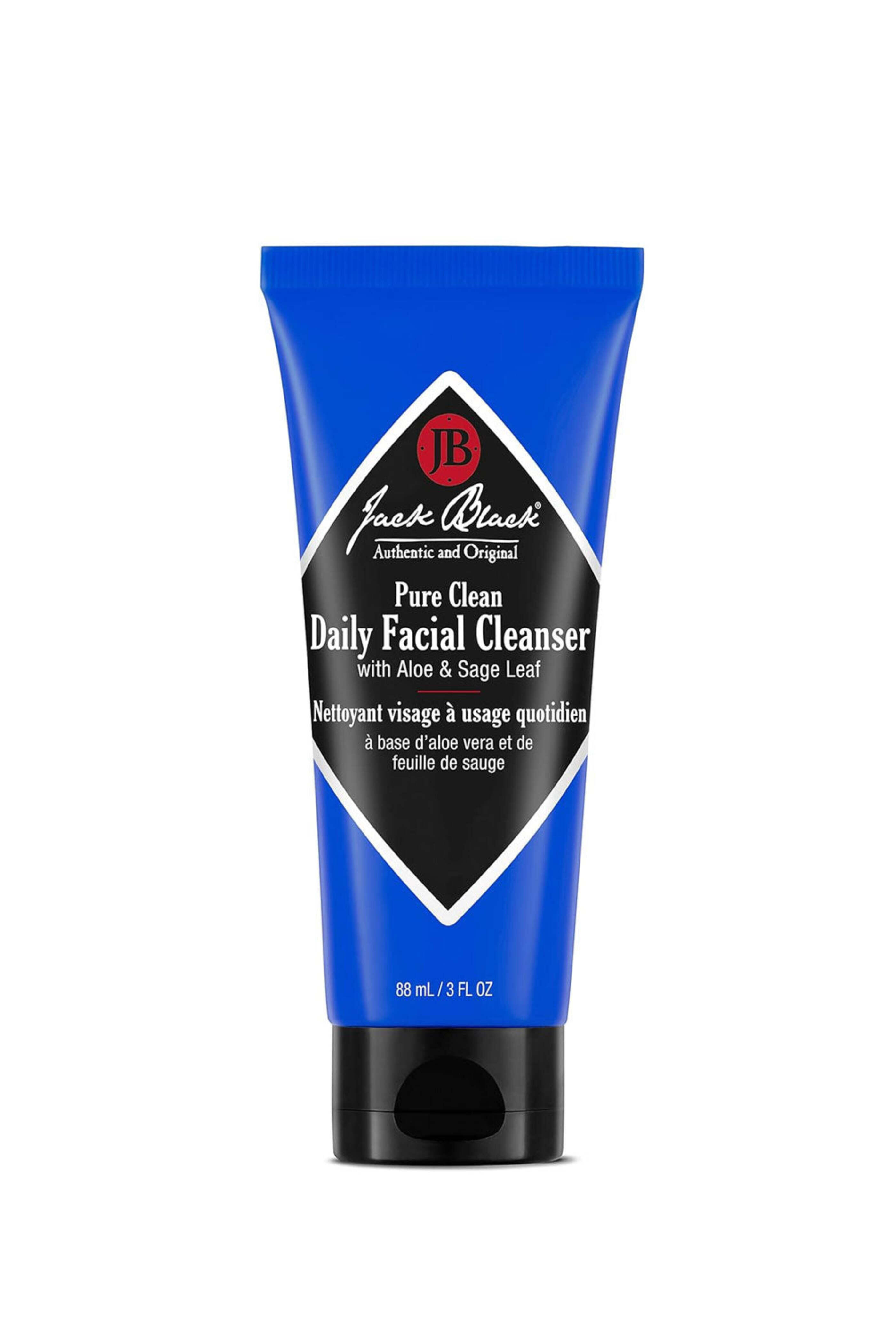 Jack Black Pure Clean Daily Facial Cleanser. Oat and Coconut: Natural, sulfate-free surfactants dissolve pore-clogging residue, dirt, and oil. Organic sage leaf extract. Chamomile extract. Rosemary extract. Witch hazel. Organic aloe leaf extract. 3 oz.. A 2-in-1 liquid cleanser and toner that removes deep-down dirt and oil for clear, smooth, shave-ready skin. Works gently, without overdrying, to leave your complexion clean, hydrated, and fresh.