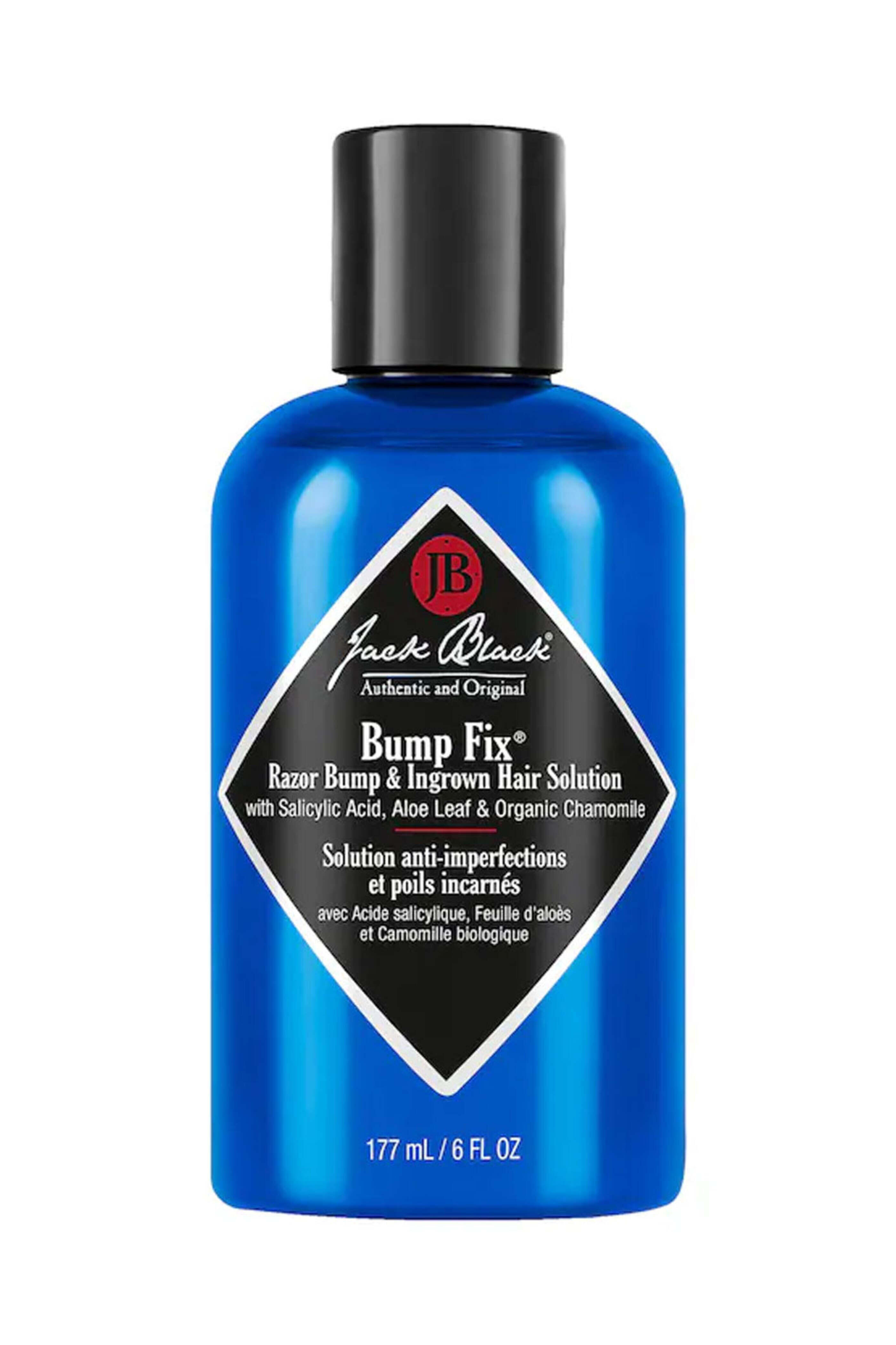 Jack Black Razor Bump Solution. Bump fix acne, razor bump & ingrown hair solution. Formula exfoliates dead skin cells and dissolves pore-clogging facial oils that lead to acne blemishes, razor bumps, and ingrown hairs. Salicylic acid, Aloe leaf, and Organic chamomile. Apply to clean skin. Moisten a cotton pad and cover the entire affected area (face, neck, back) with a thin layer, one to three times daily. Do not rinse. Until skin acclimates to the treatment, begin with one application daily, at night; gradually increase usage to two or three times daily. To minimize the chance of irritation or stinging, wait 30 minutes after shaving to use this product. Apply before your post shave gel, moisturizer, or sun protection. 177 mL / 6 Fl Oz. Powerful multi-acid solution helps heal and prevent razor bumps, ingrown hairs, blackheads, and acne blemishes while hydrating ingredients help minimize dryness.