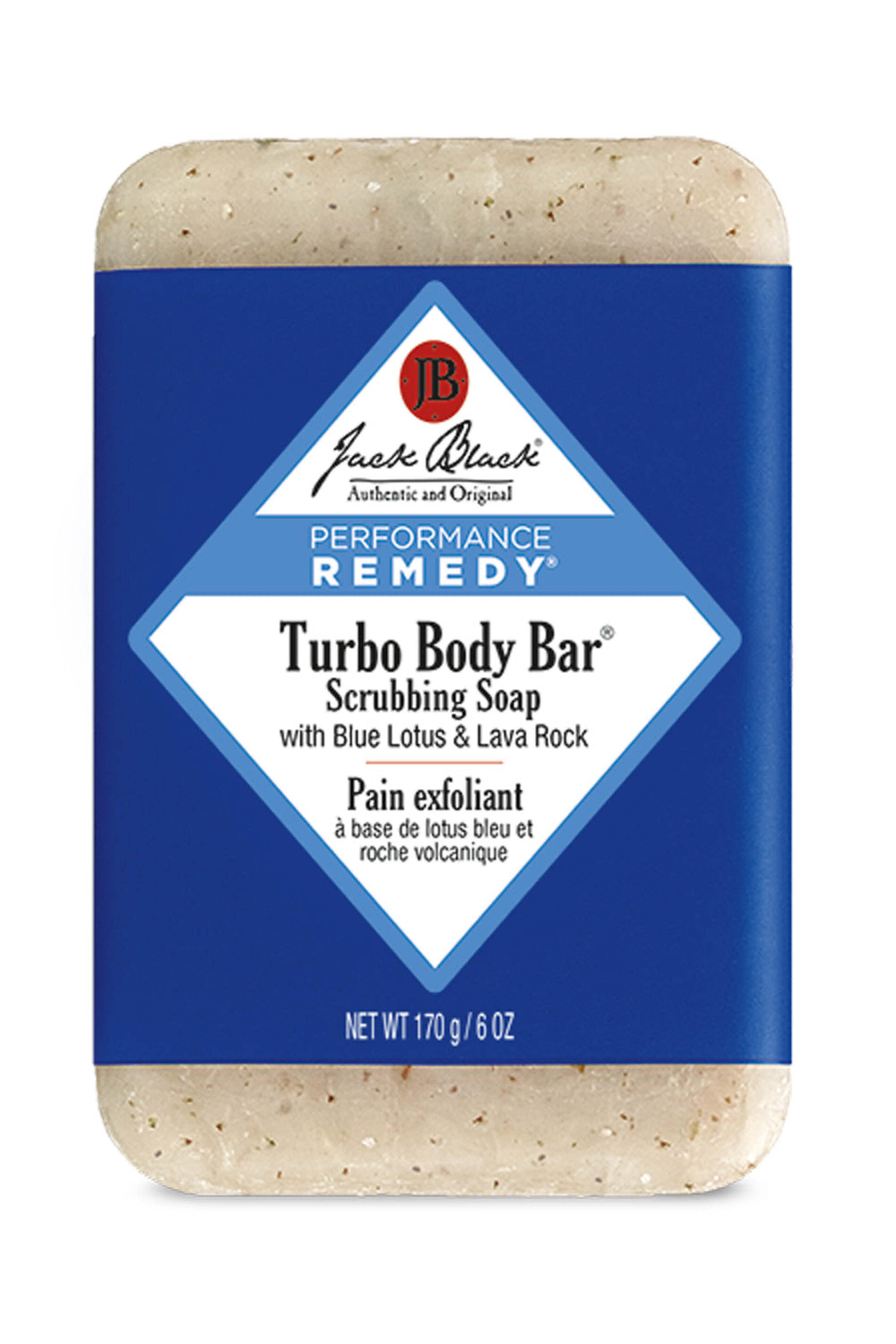 - Jack Black Turbo Body Bar Scrubbing Soap Exfoliates the body for clean and smooth skin With blue lotus and lava rock 6 oz