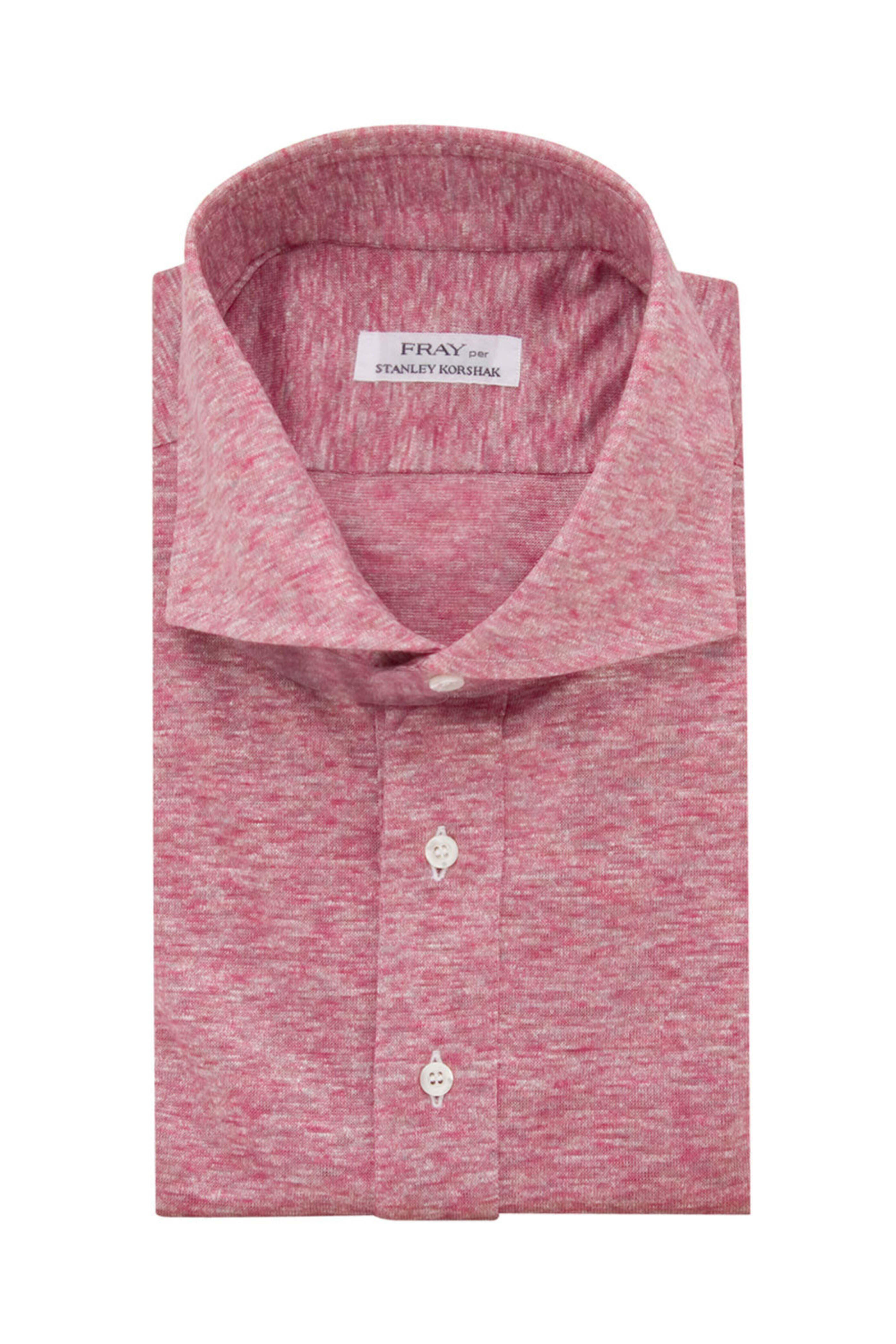 Fray Pink Linen Melange Polo. Spread collar. 3 button polo. Short sleeves. Stanley Korshak Exclusive. Made in Italy. 100% linen.