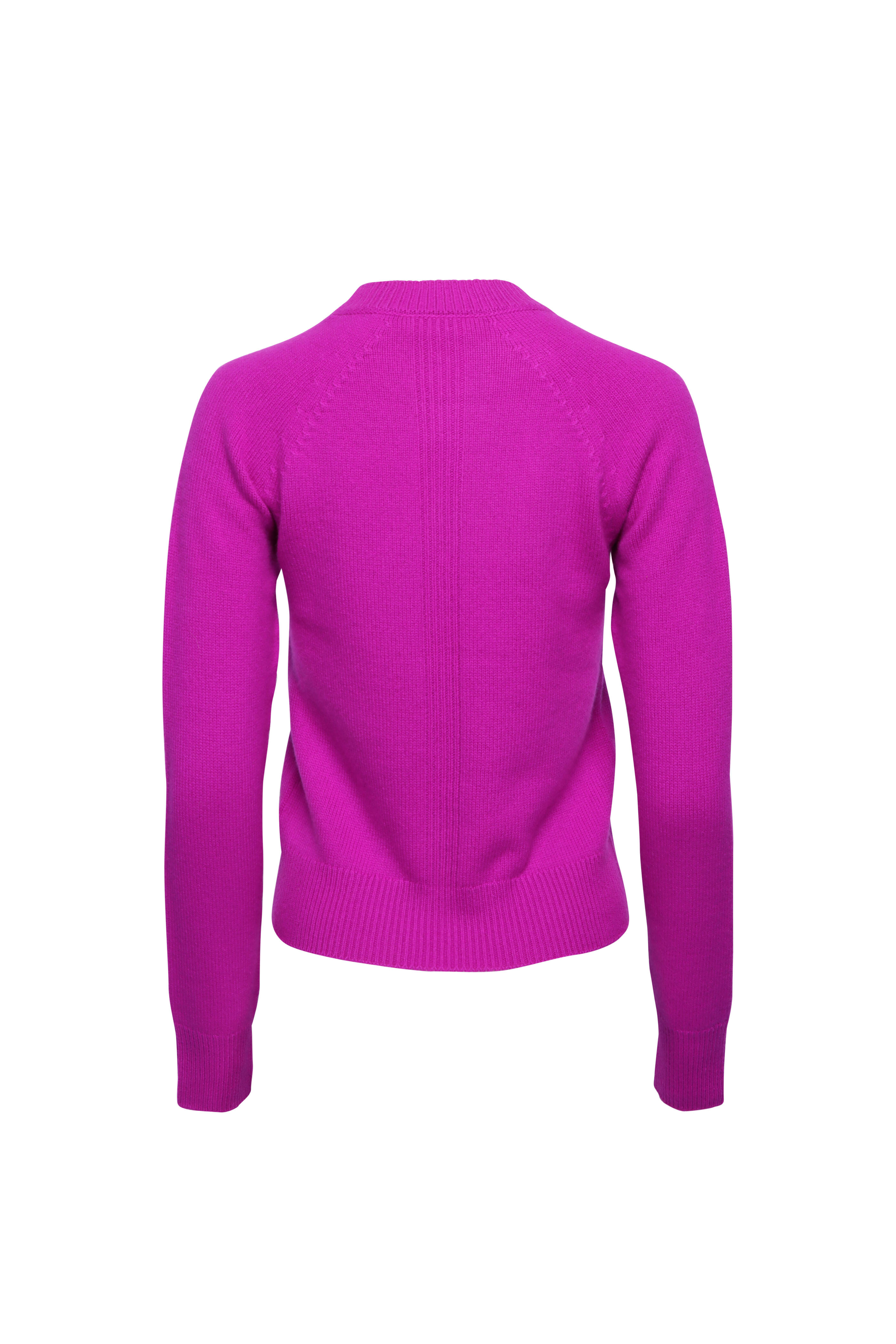 Crewneck. Long raglan sleeves. Relaxed fit. Straight hem. Ribbed neck, cuffs, and hem. Imported. Bust 30.5” (Size S). Waist 23” (Size S). Length 22.25” (Size S). 100% cashmere. Dry clean.