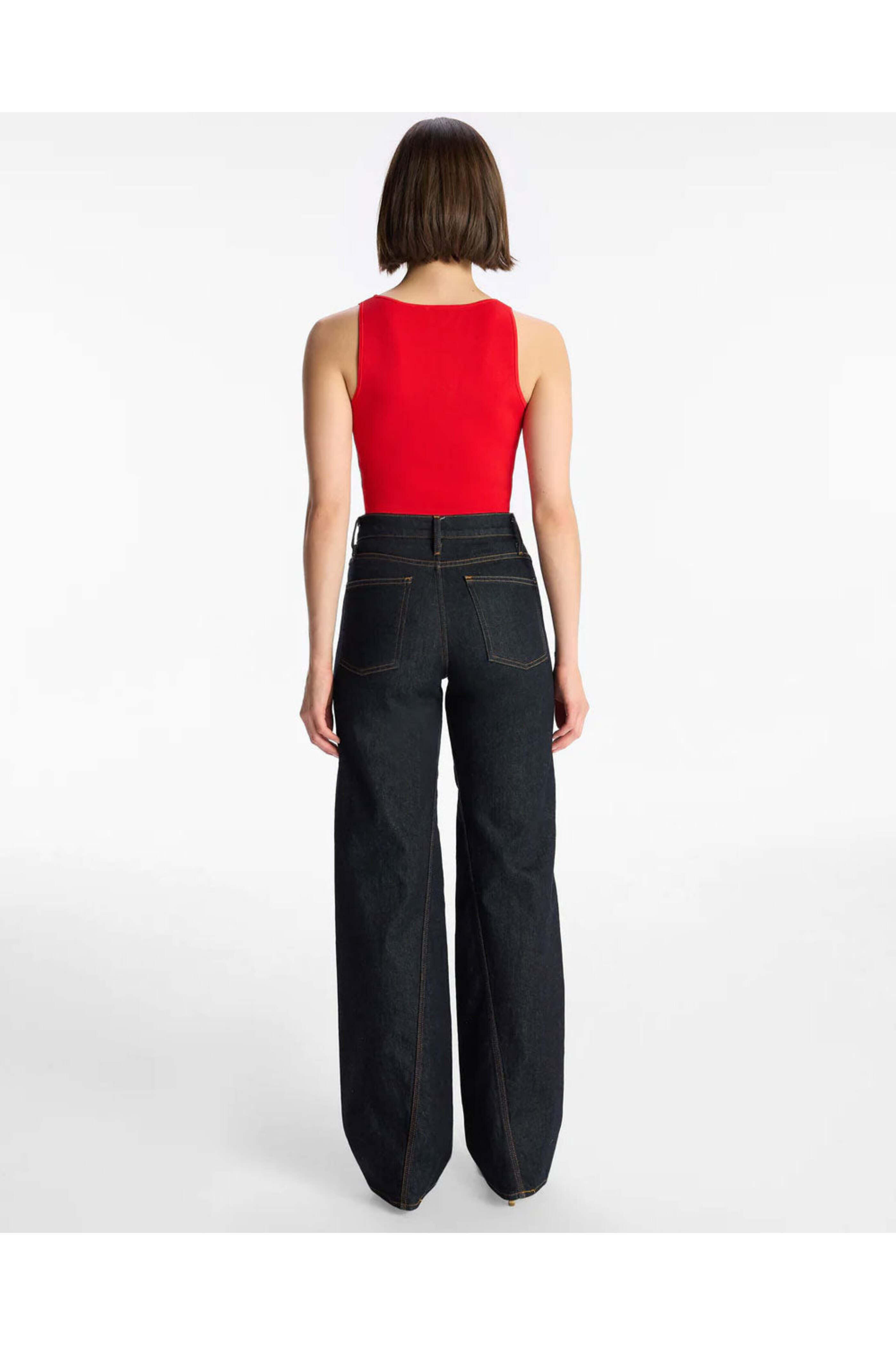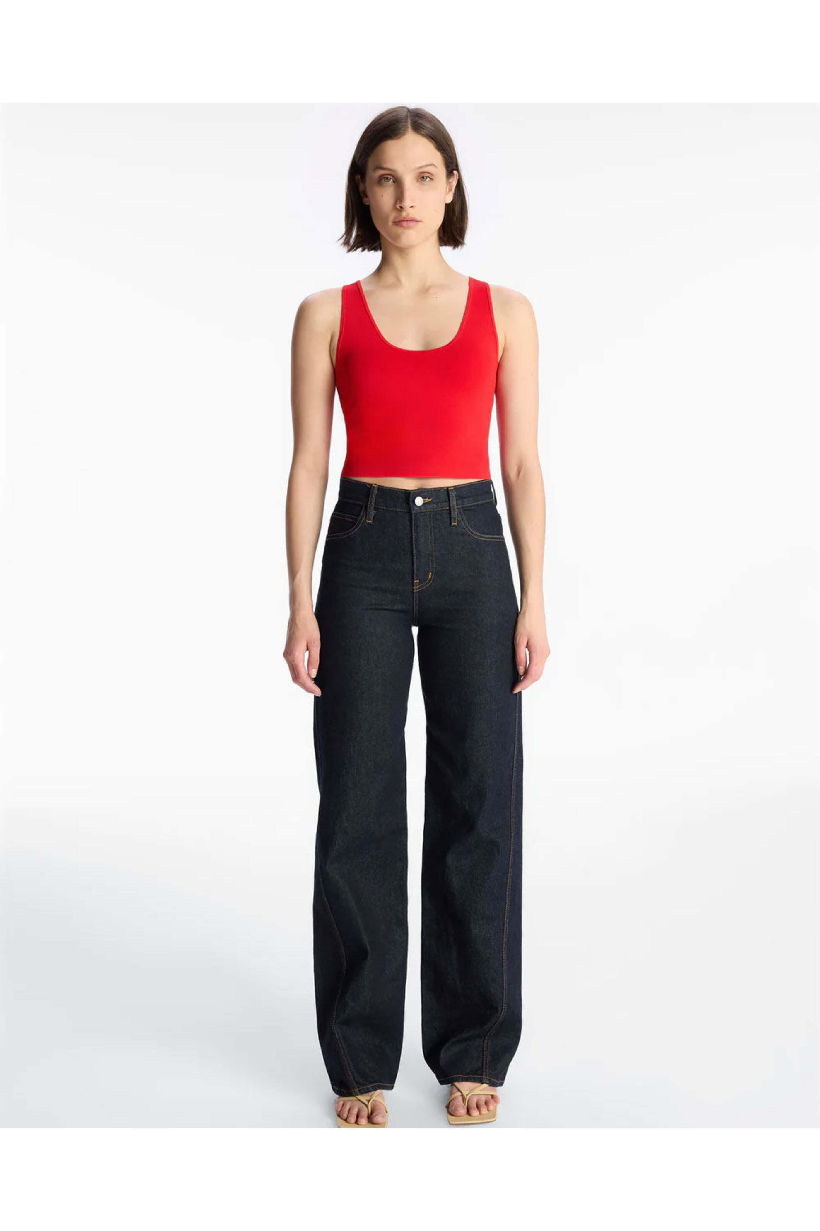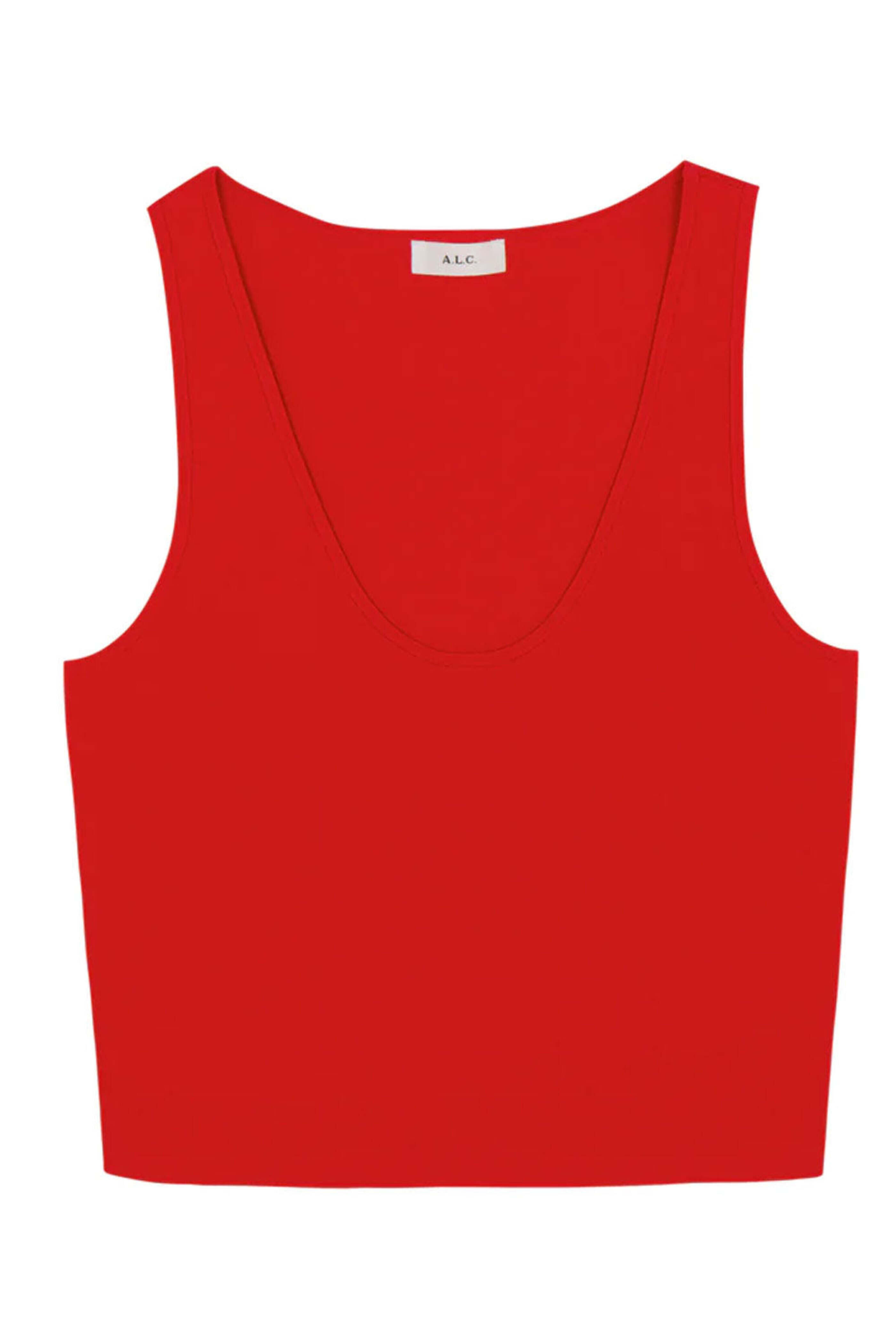 A.L.C. Vibrant Red Cleo Top. Scoop neckline. Thick straps. Fitted and cropped silhouette. Not lined. Imported. 77% Rayon 21% Nylon 2% Elastane .