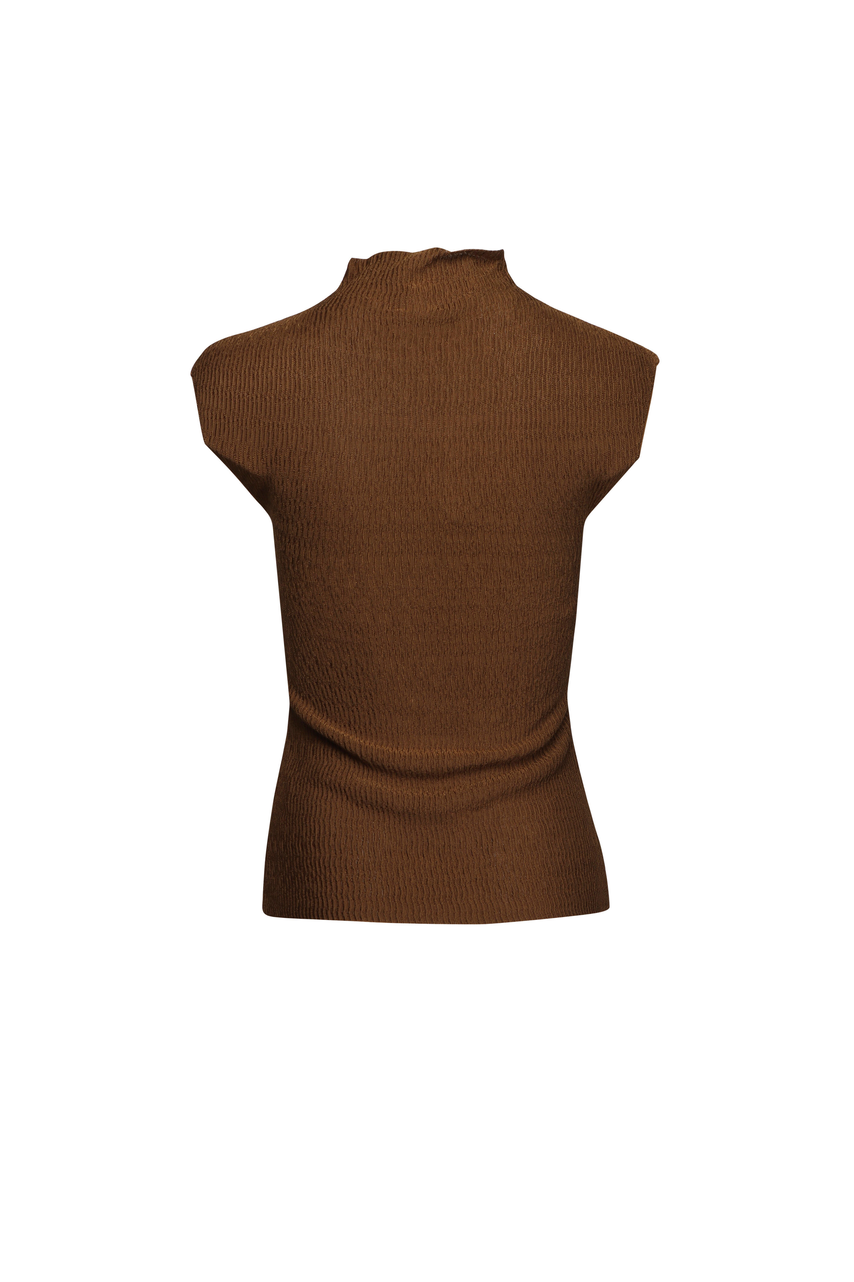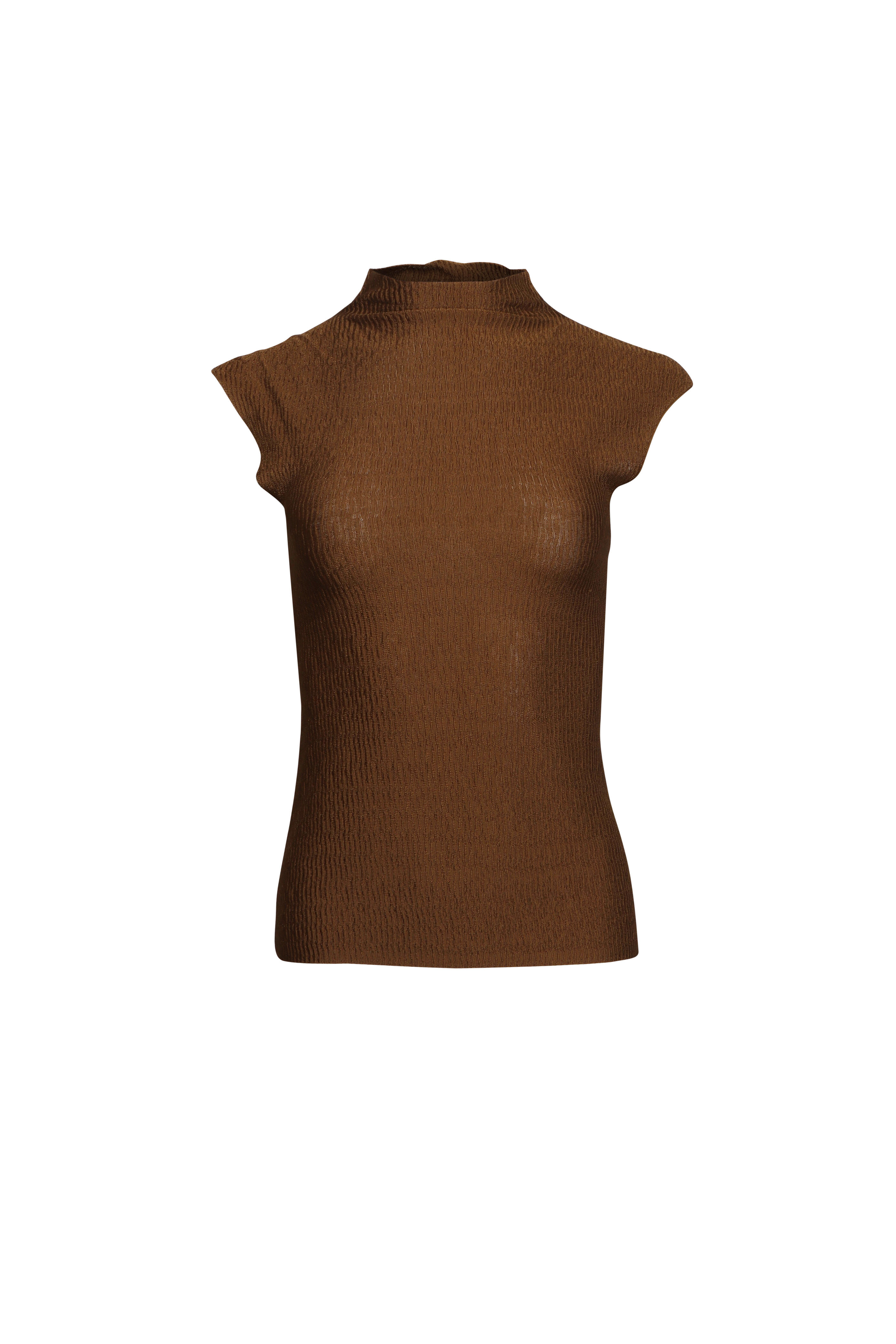 High neck. Sleeveless. Slim silhouette. Straight hem. Imported. Bust 26” (Size S). Waist 25” (Size S). Length 22.75” (Size S). 100% viscose; unlined. Dry clean.
