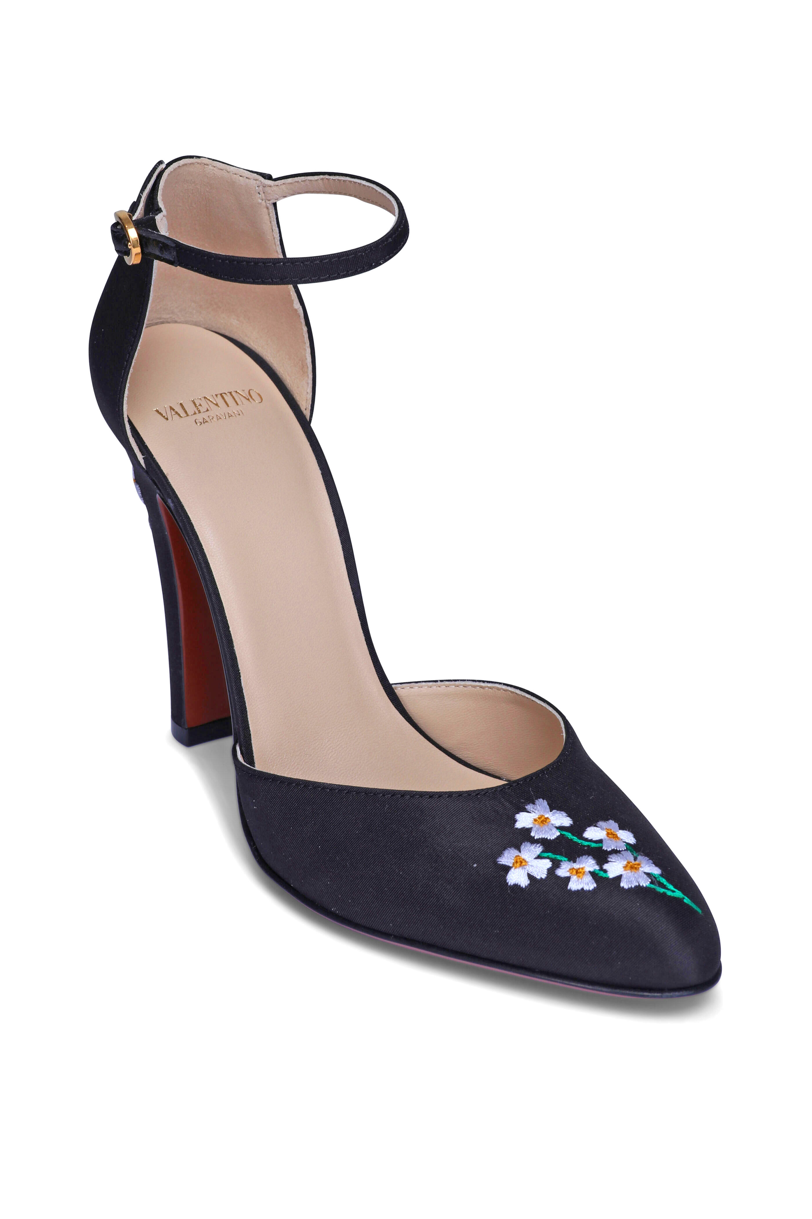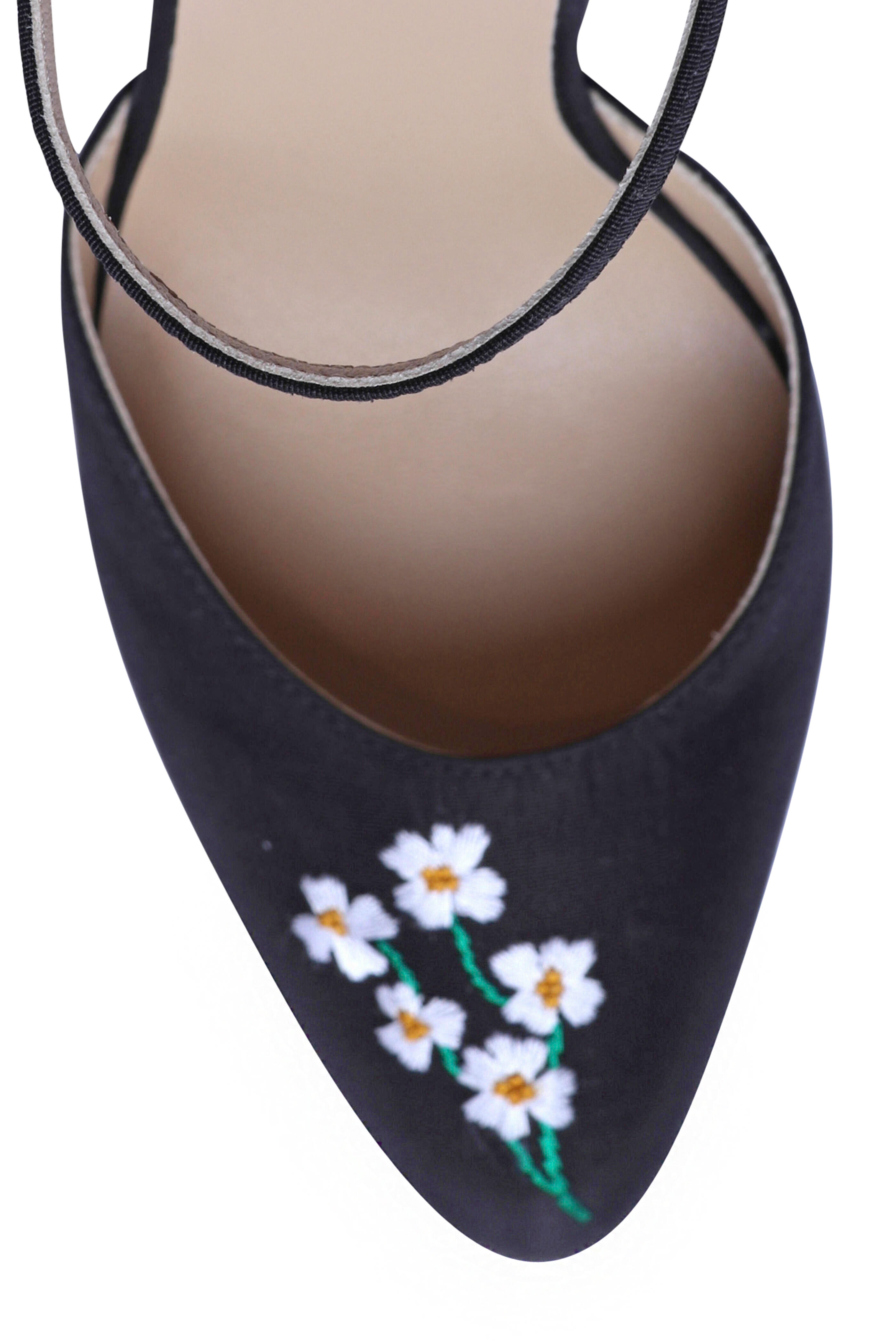 Hi Dolly Daisy Nero Embroidered Satin Pump