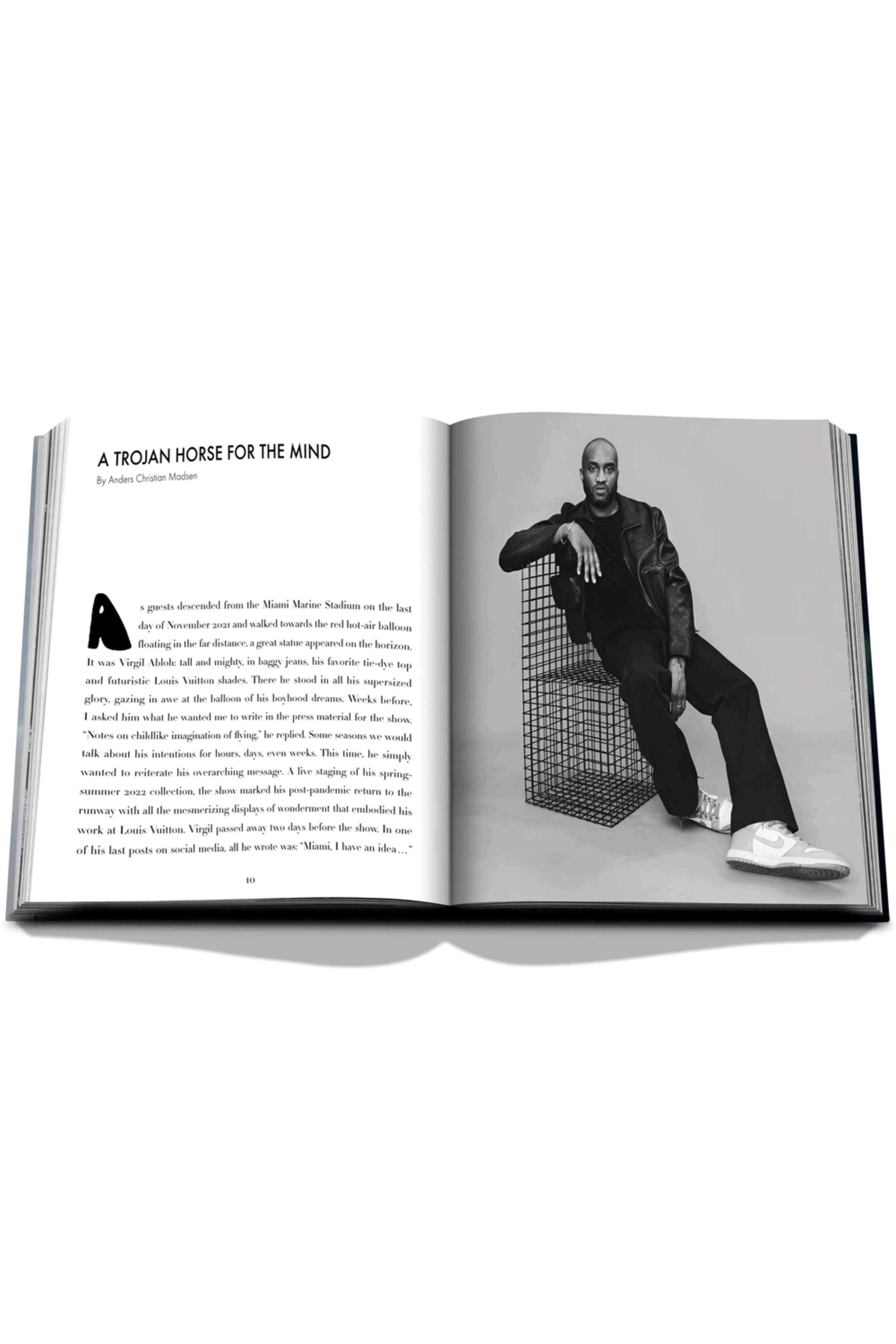 Assouline Louis Vuitton: Virgil Abloh Book with Balloon Cover. The newest addition to the Classics Collection, Louis Vuitton: Virgil Abloh honors the designerâs boundary-breaking creativity on and off the runway. With over 250 stunningly iconic images and personal reflections from Ablohâs inner circle, including Nigo, Naomi Campbell, Luka Sabbat, Kendall Jenner and Kid Cudi, the book is the definitive chronicle of a partnership that redefined not only dress codes but their very vocabulary. Silk hardcover. 6.3 lb. 359 pages. Released in September 2022. 10â W x 13â L x 1.7â H.