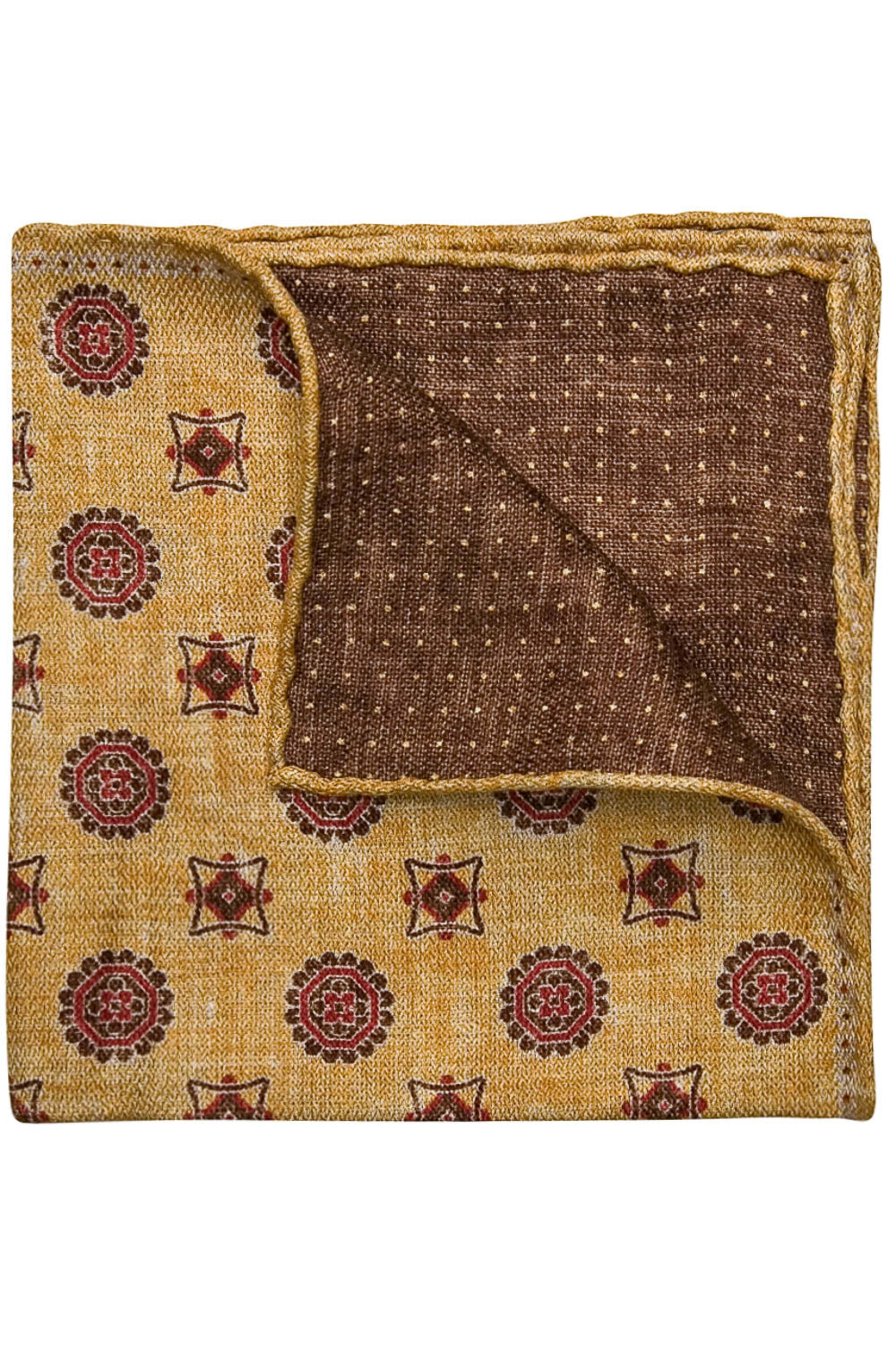 Mustard with Red and Brown Medallion Pocket Square
