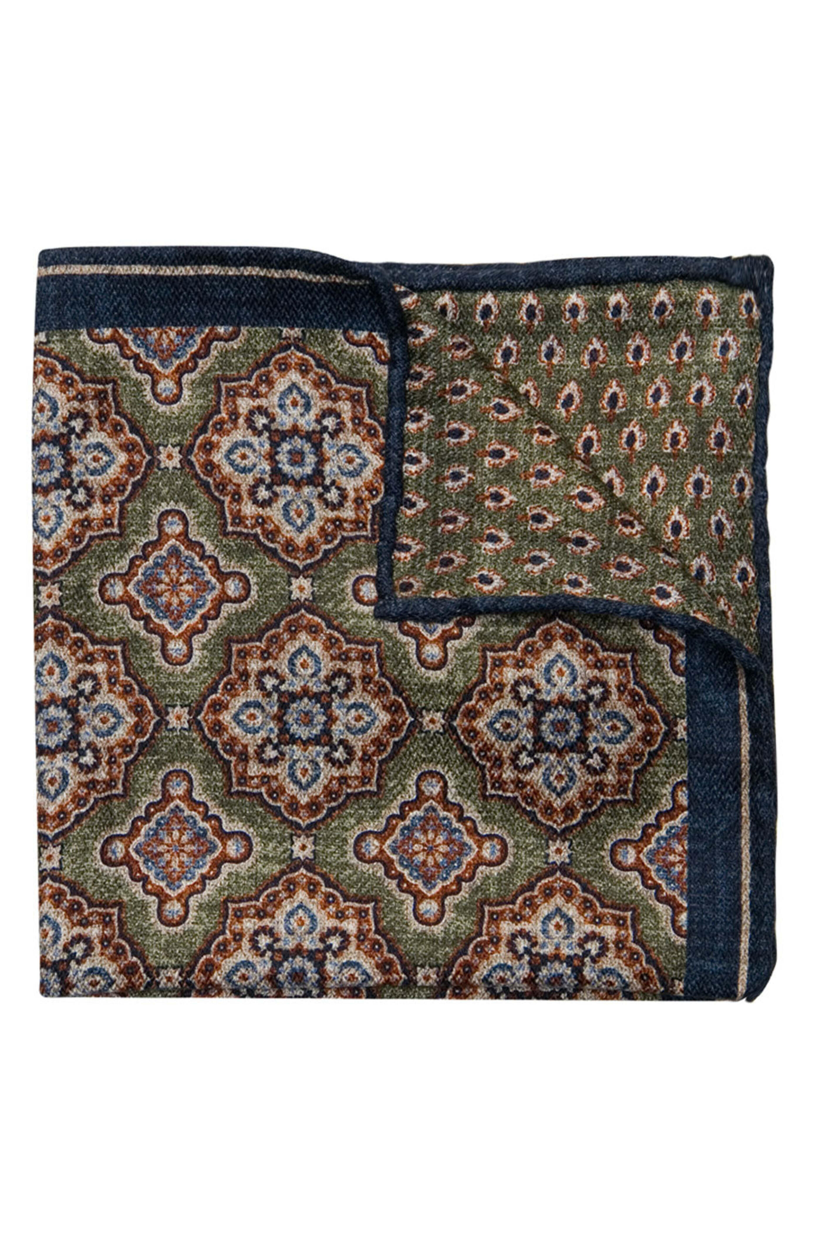 - Edward Armah Olive Reversible Neat Medallion Pocket Square