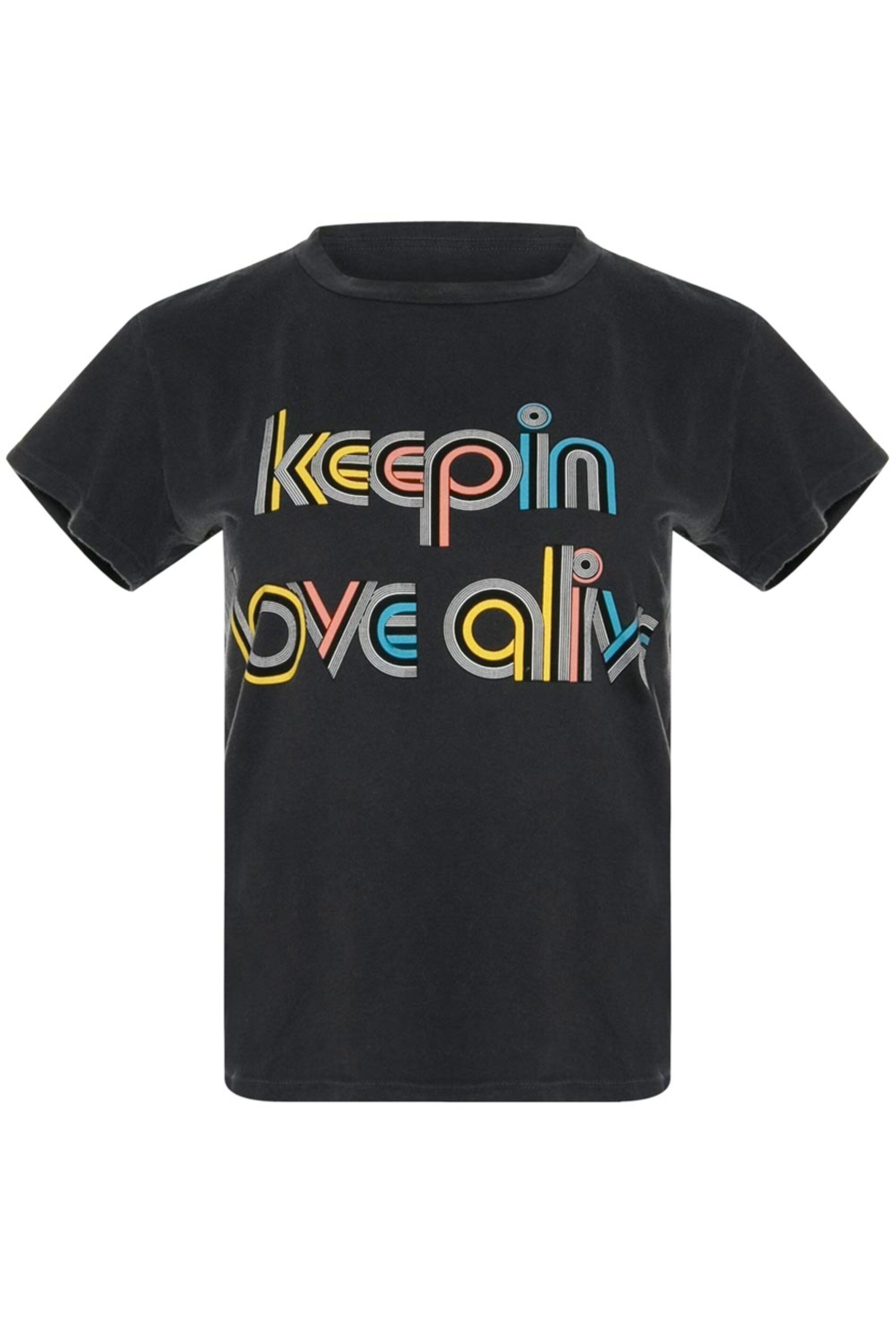 - Mother Denim Faded Black Keepin Love Alive Goodie Goodie Tee Crew neck Short sleeves Keepin Love Alive graphic Boxy fit Unlined 100% cotton