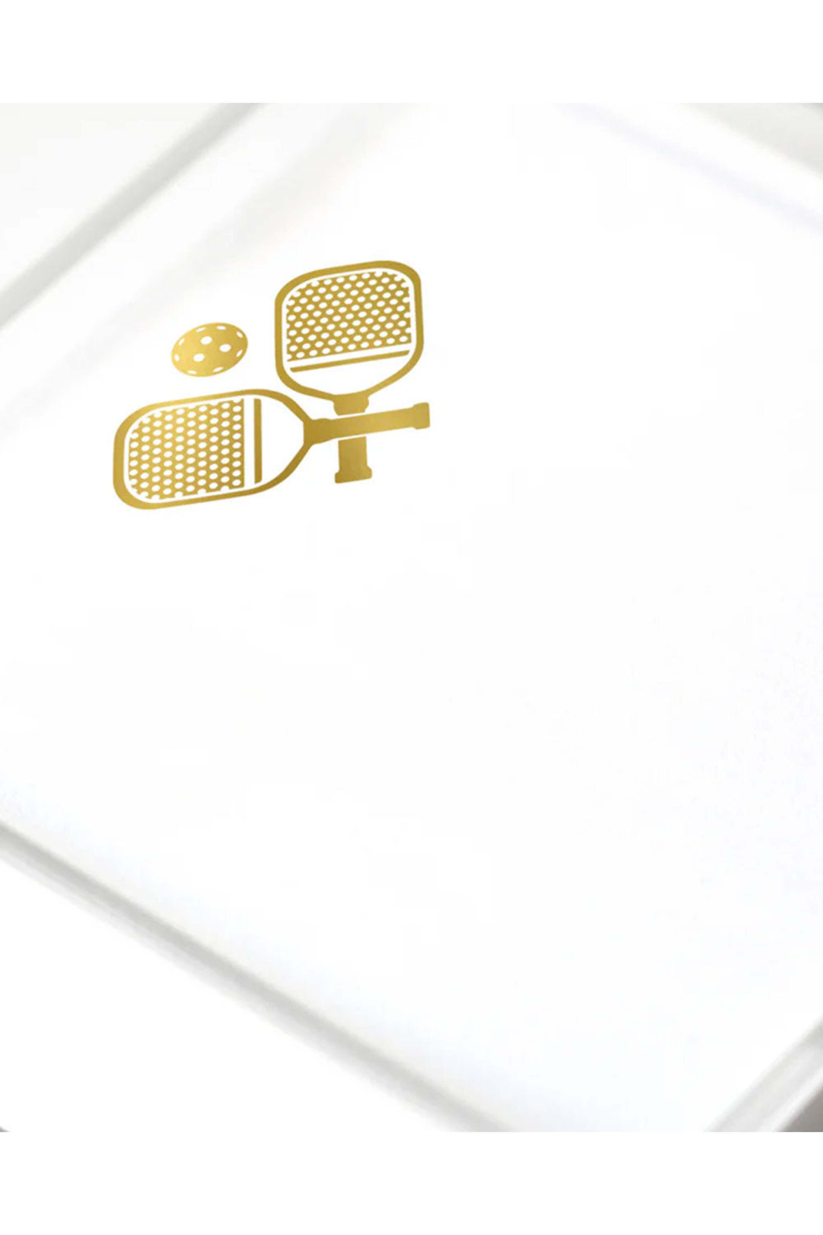 White paper . Gold foil detail. 275 sheets. 5.5" x 5.5".