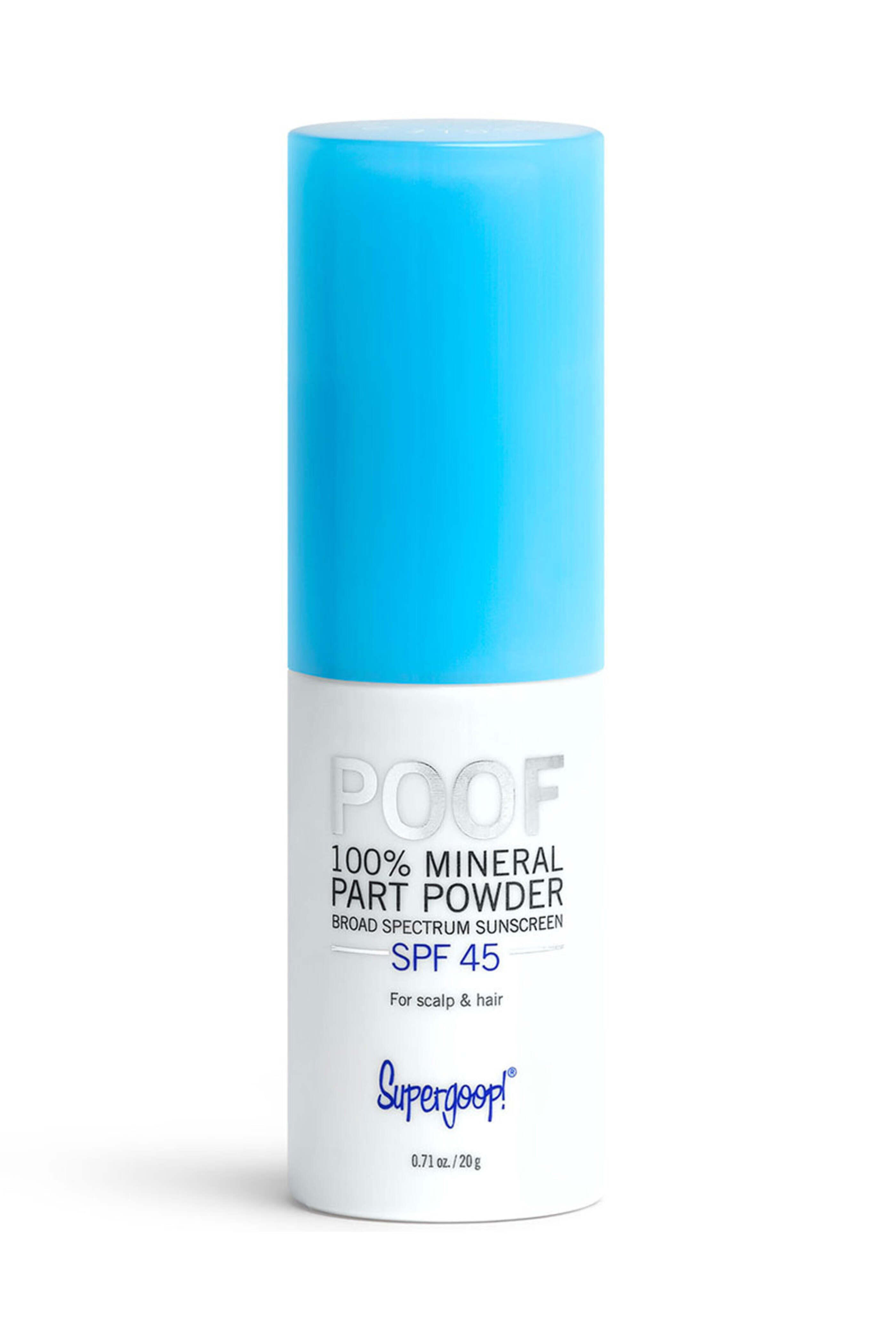 - Supergoop! Poof 100% Mineral Part Powder SPF 45 Hair powder and SPF 45 all in one Helps prevent sunburn on scalp Translucent powder .71 oz