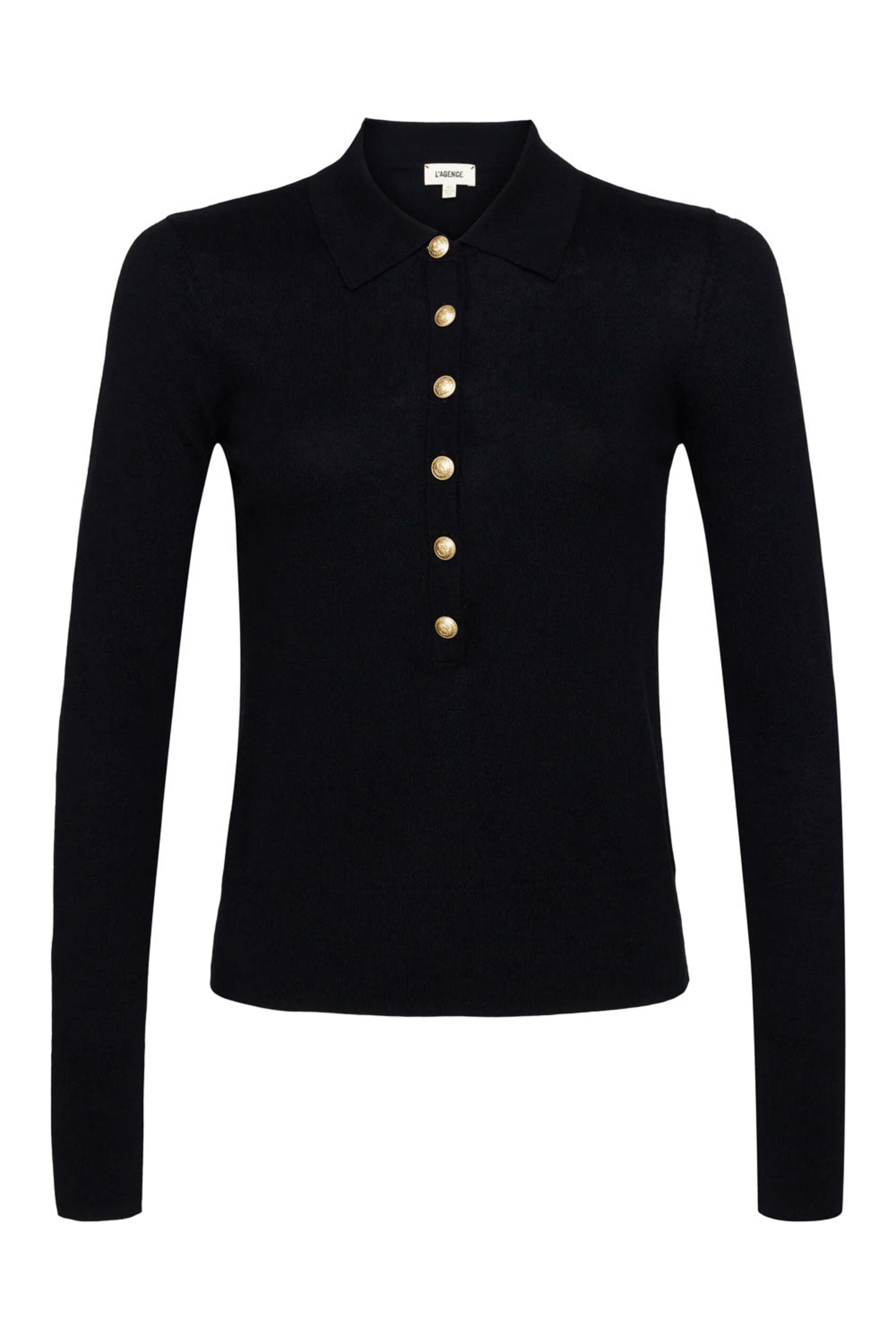 - LAgence Black and Gold Sterling Collared Sweater