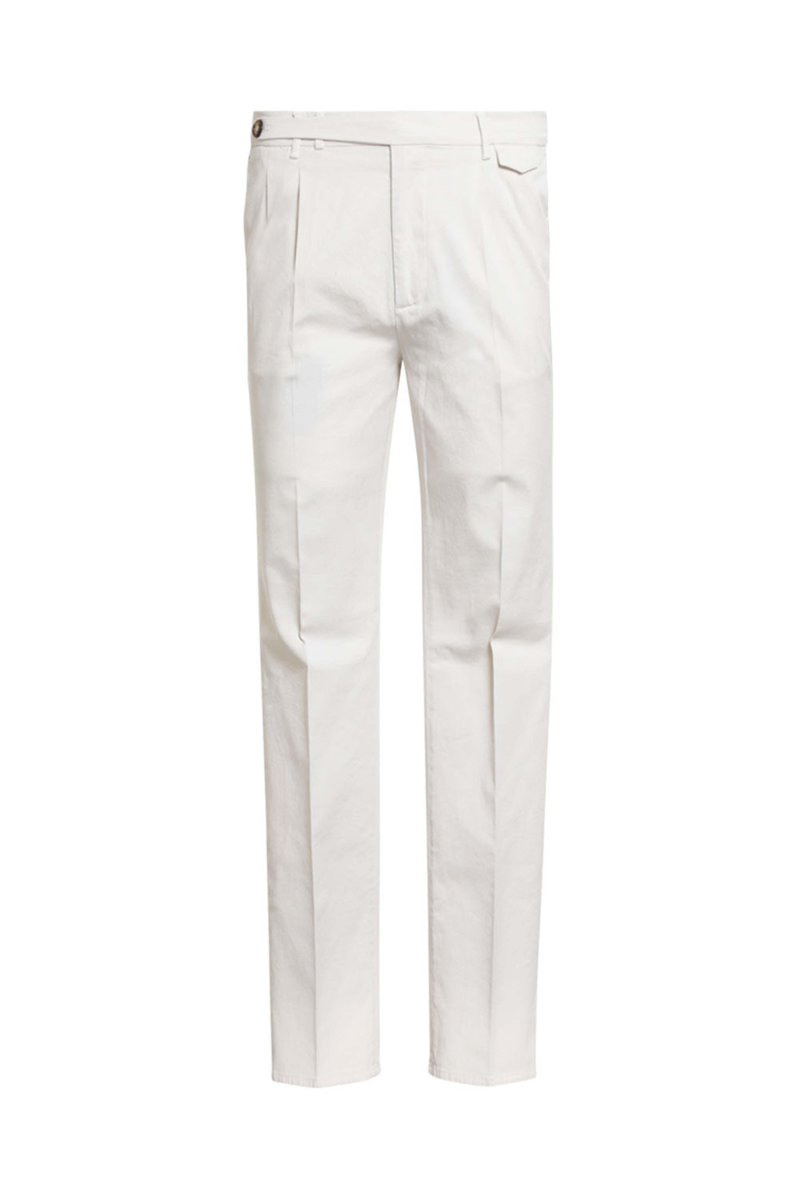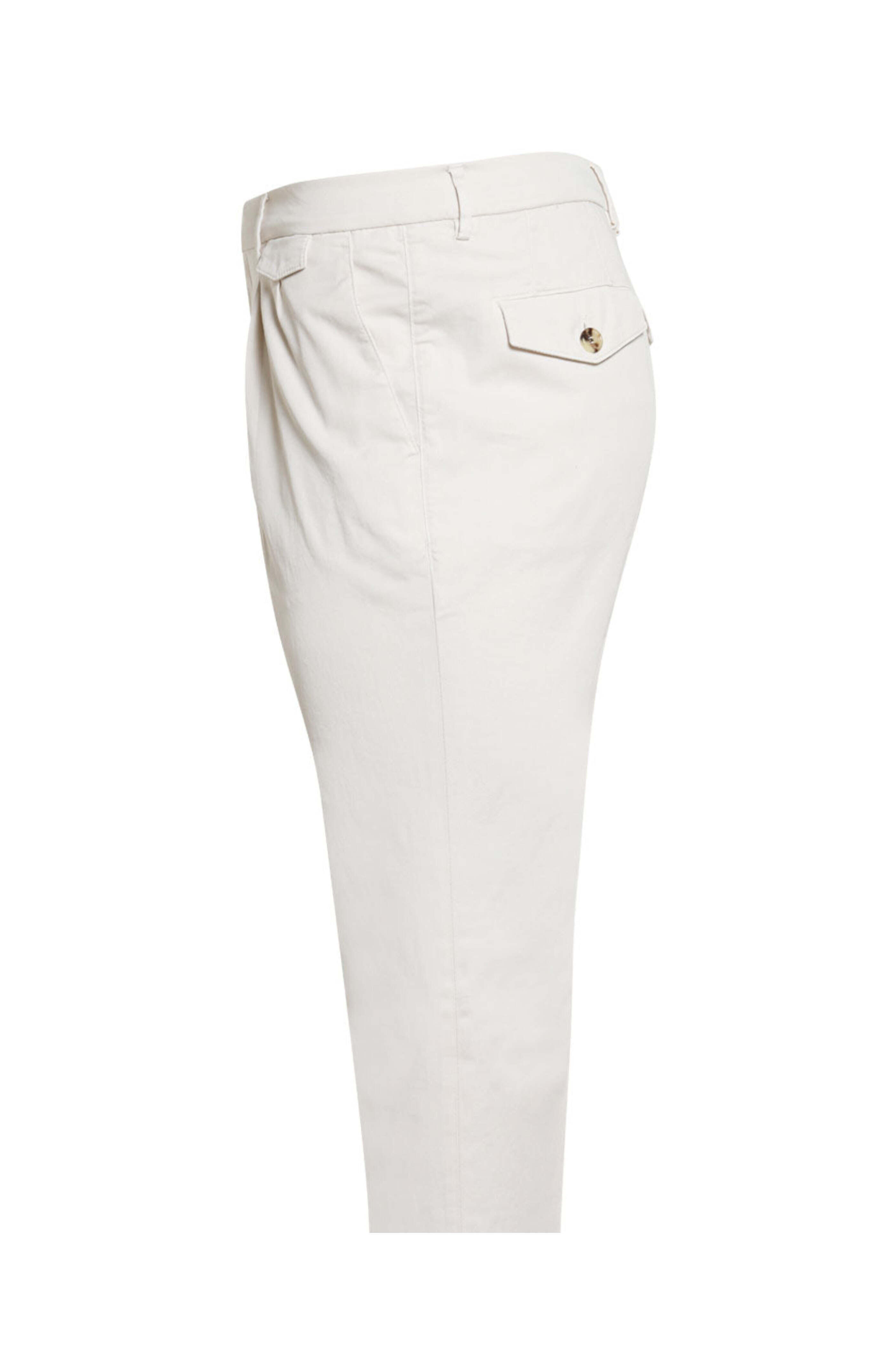 - Brunello Cucinelli Off White Stretch Cotton Blend Pleated Pant