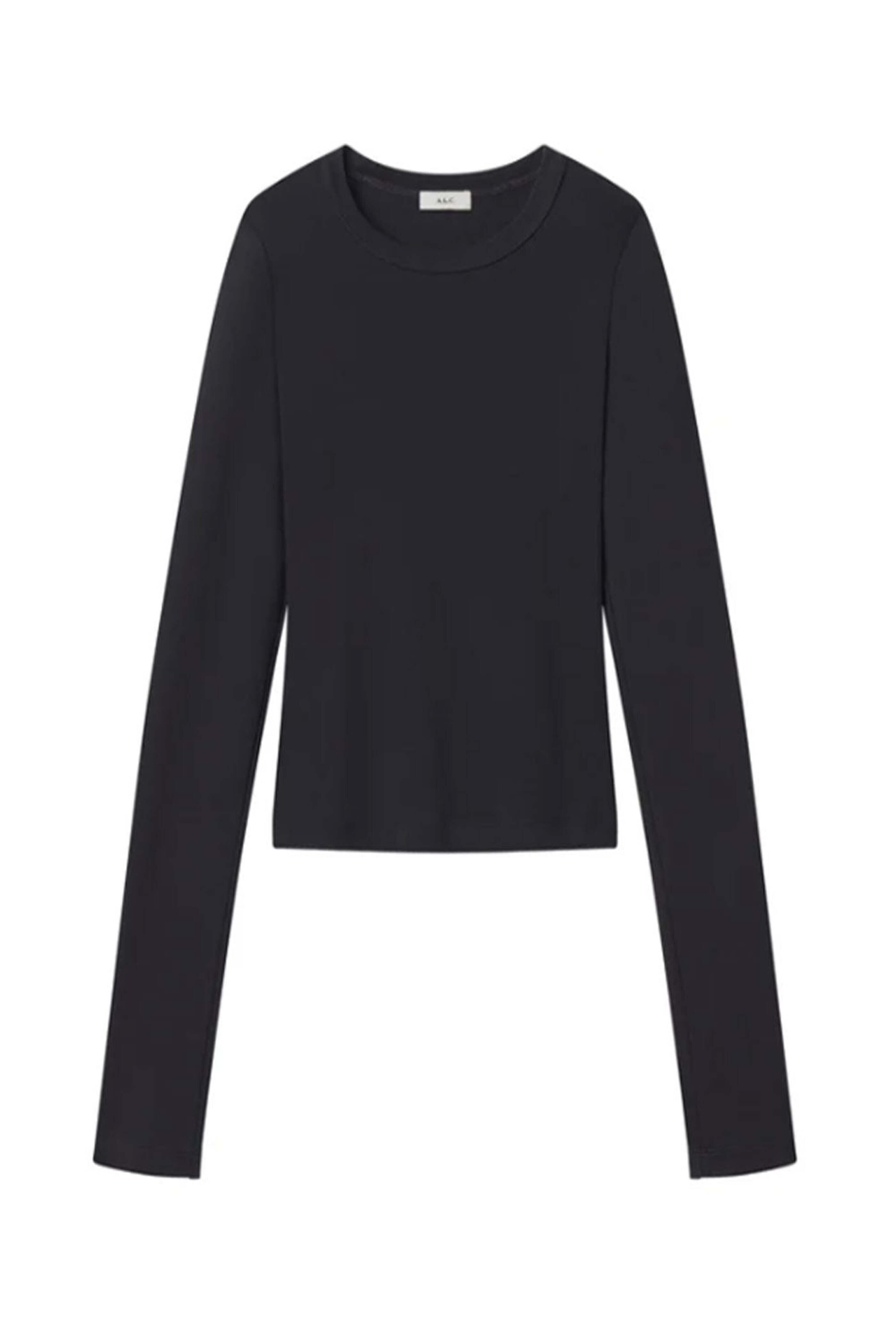A.L.C. Black Ari Cotton Rib Long Sleeve Tee . Crew neck . Long sleeve . Fitted silhouette . Straight hem . 100% cotton .