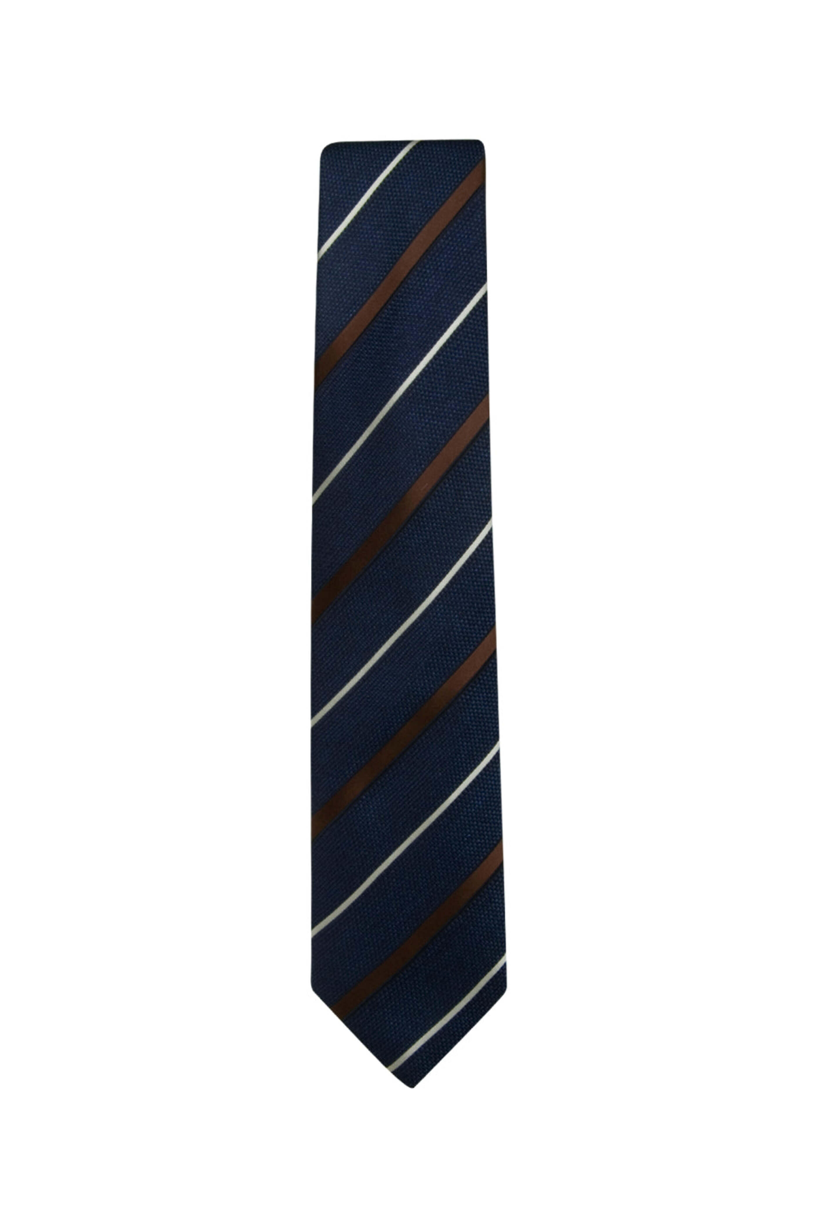 - Geoff Nicholson Navy, Brown, and White Stripe Tie