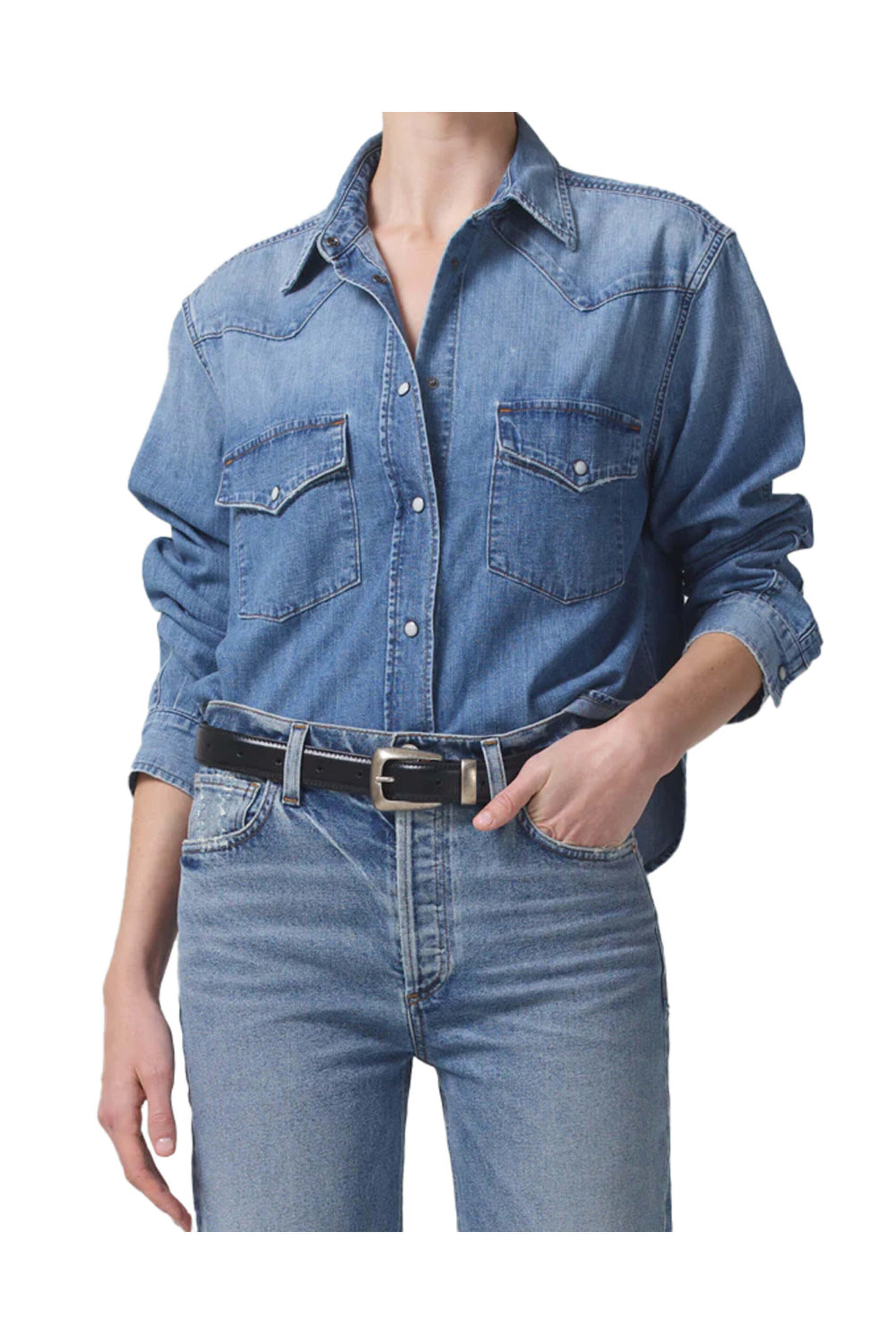 - Citizens of Humanity Carolina Blue Denim Crop Western Shirt
