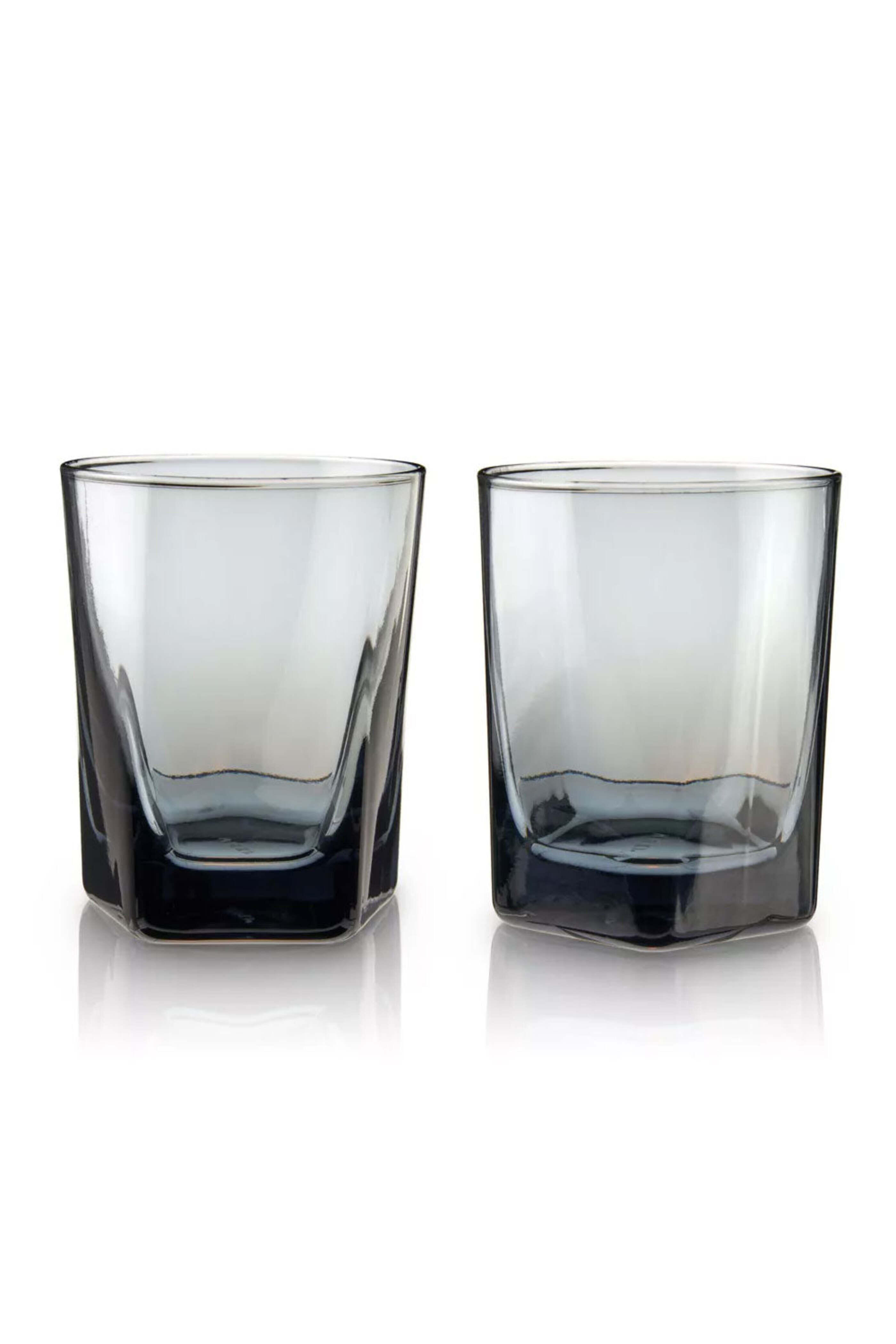 Set of 2. Geometric shape. Solid transparent black lead-free crystal. 10oz. Dishwasher safe.