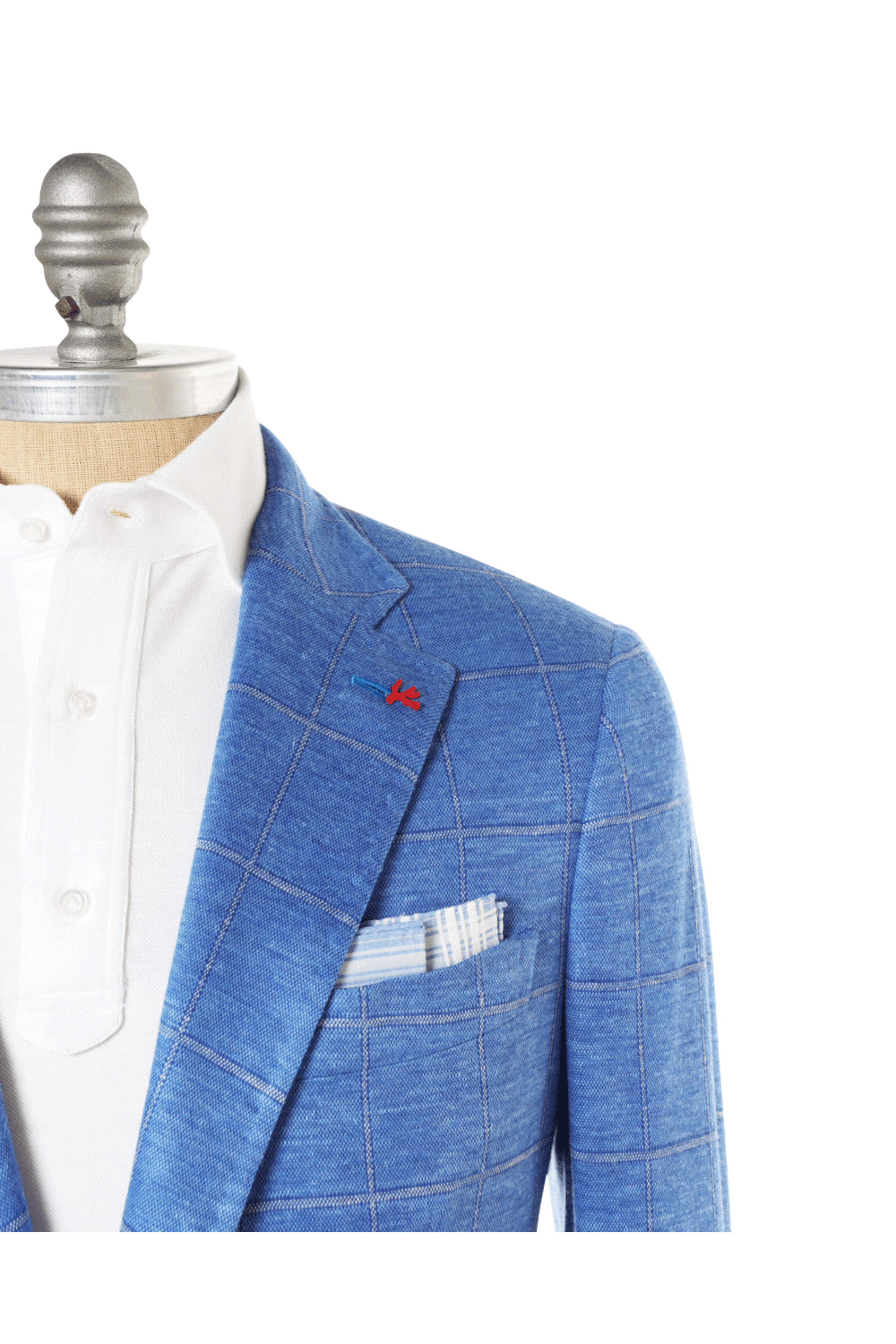 - Isaia Cobalt and Light Blue Windowpane Stretch Sportcoat