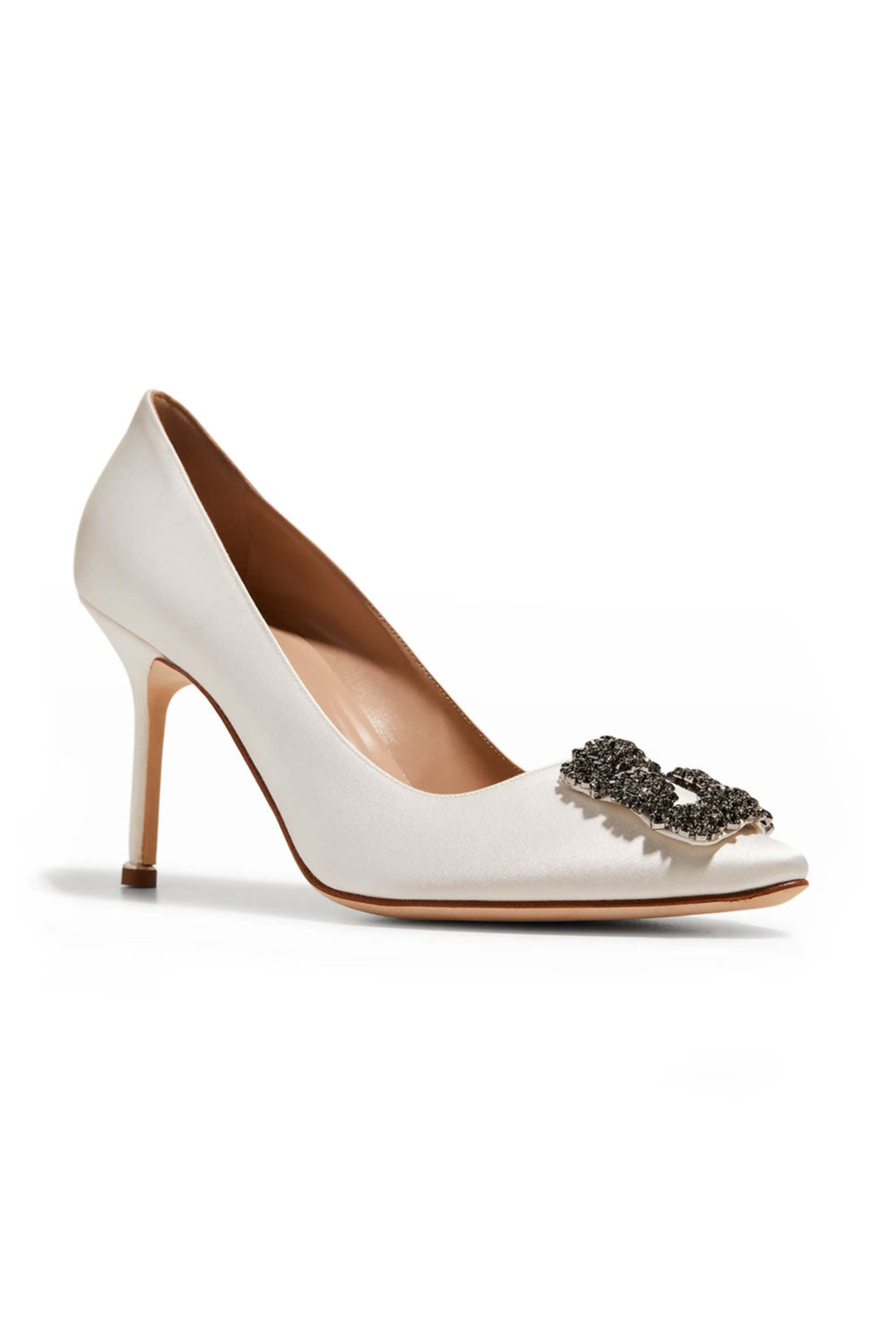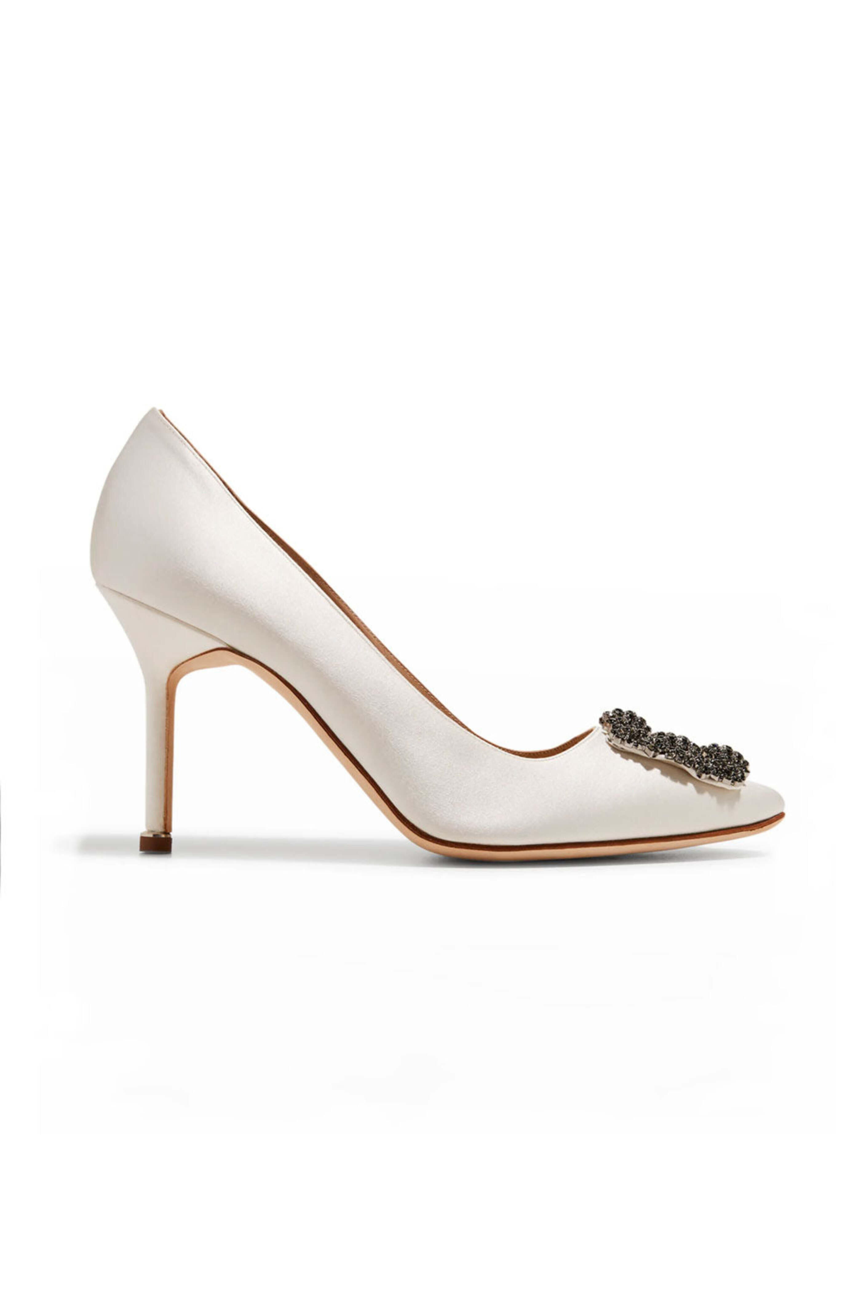 - Manolo Blahnik Hangisi 90 Satin Pump in Light Cream