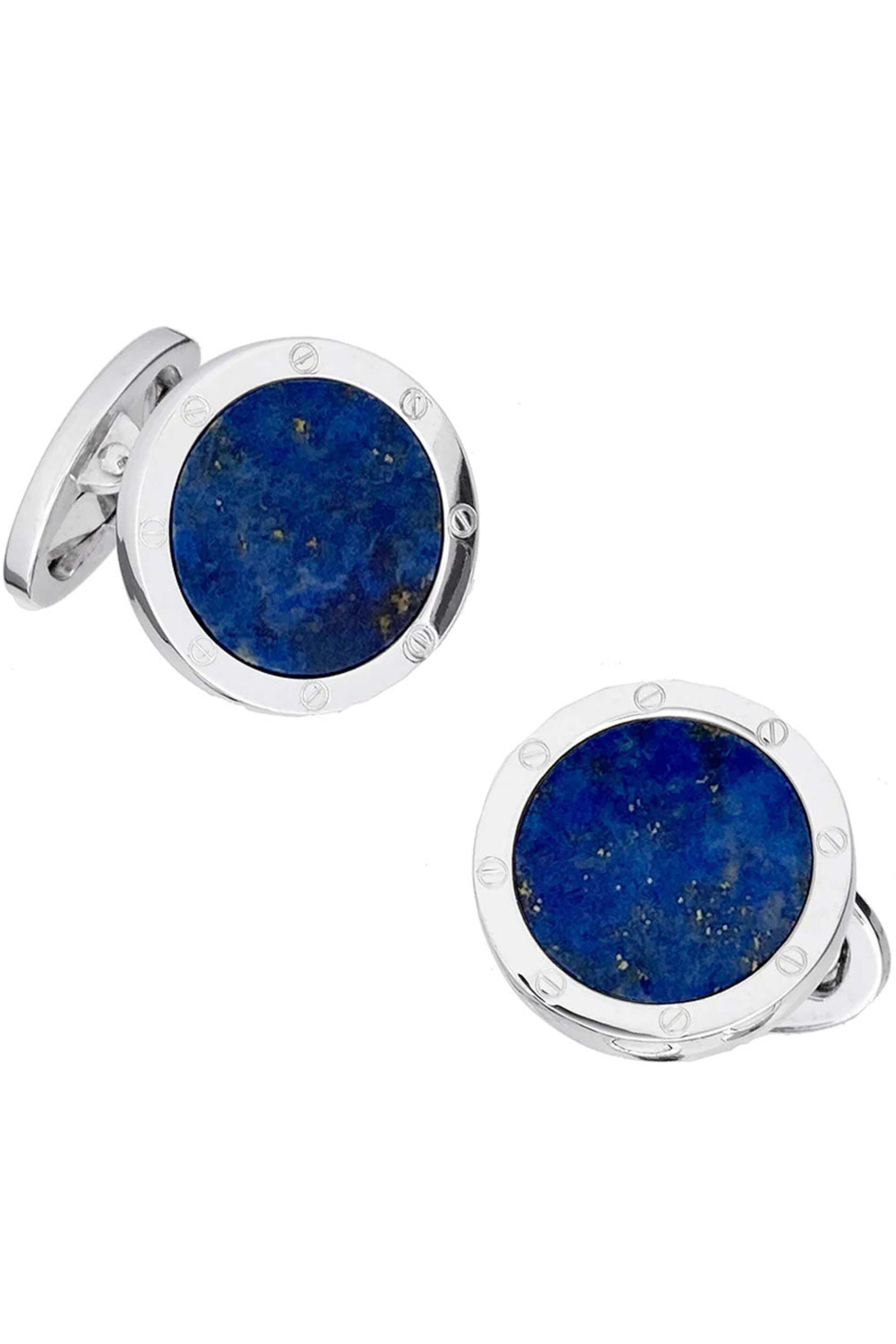 Jan Leslie Lapis Rivet Etch Detail Cufflinks. 925 sterling silver. Lapis. Feature a screw-detail setting. Features an anti-tarnish rhodium finish that makes for lasting wear.