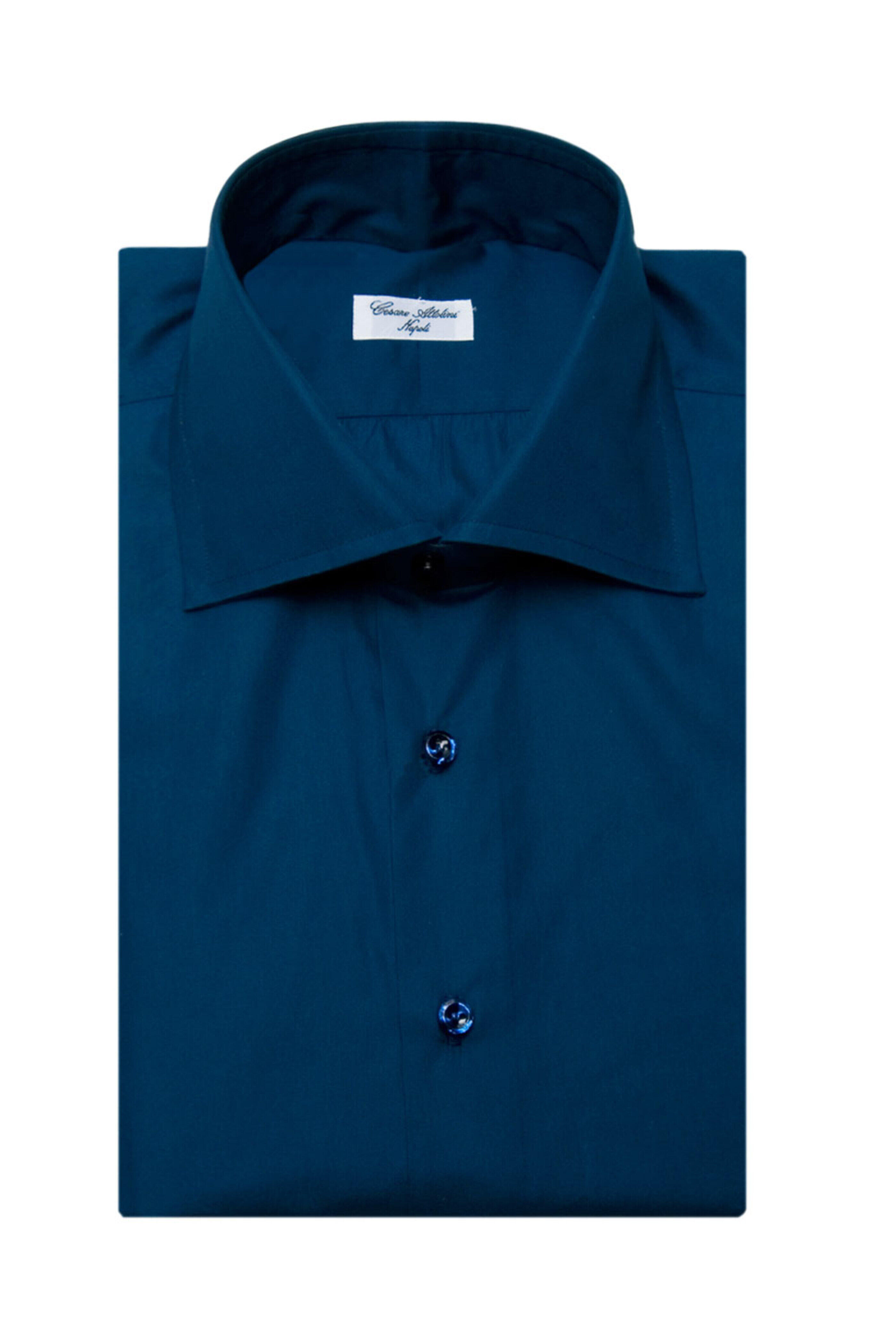 Cesare Attolini Royal Blue Dress Shirt. Spread collar. Long sleeve. Button down. Rounded barrel cuff. Made in Italy. 100% cotton.