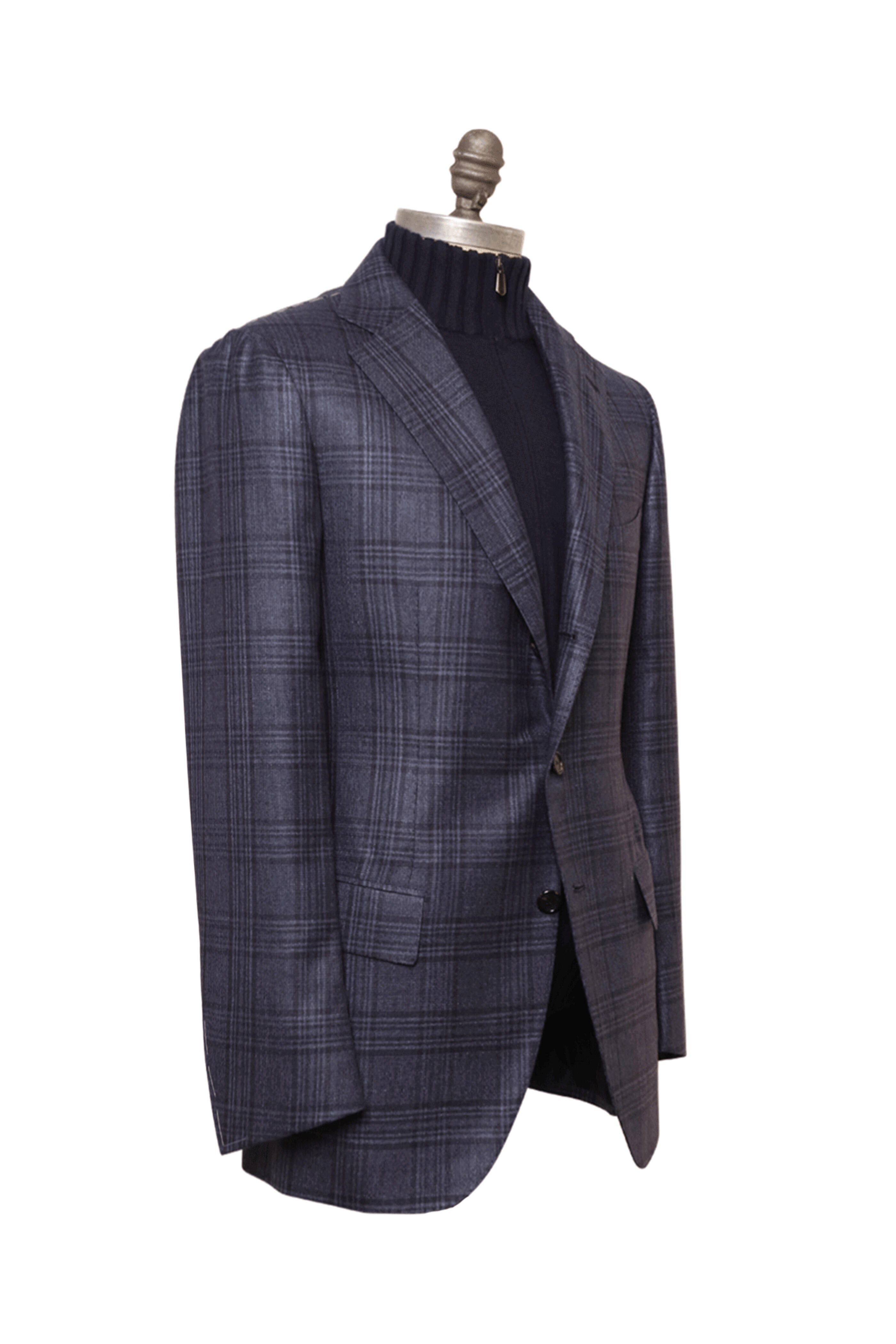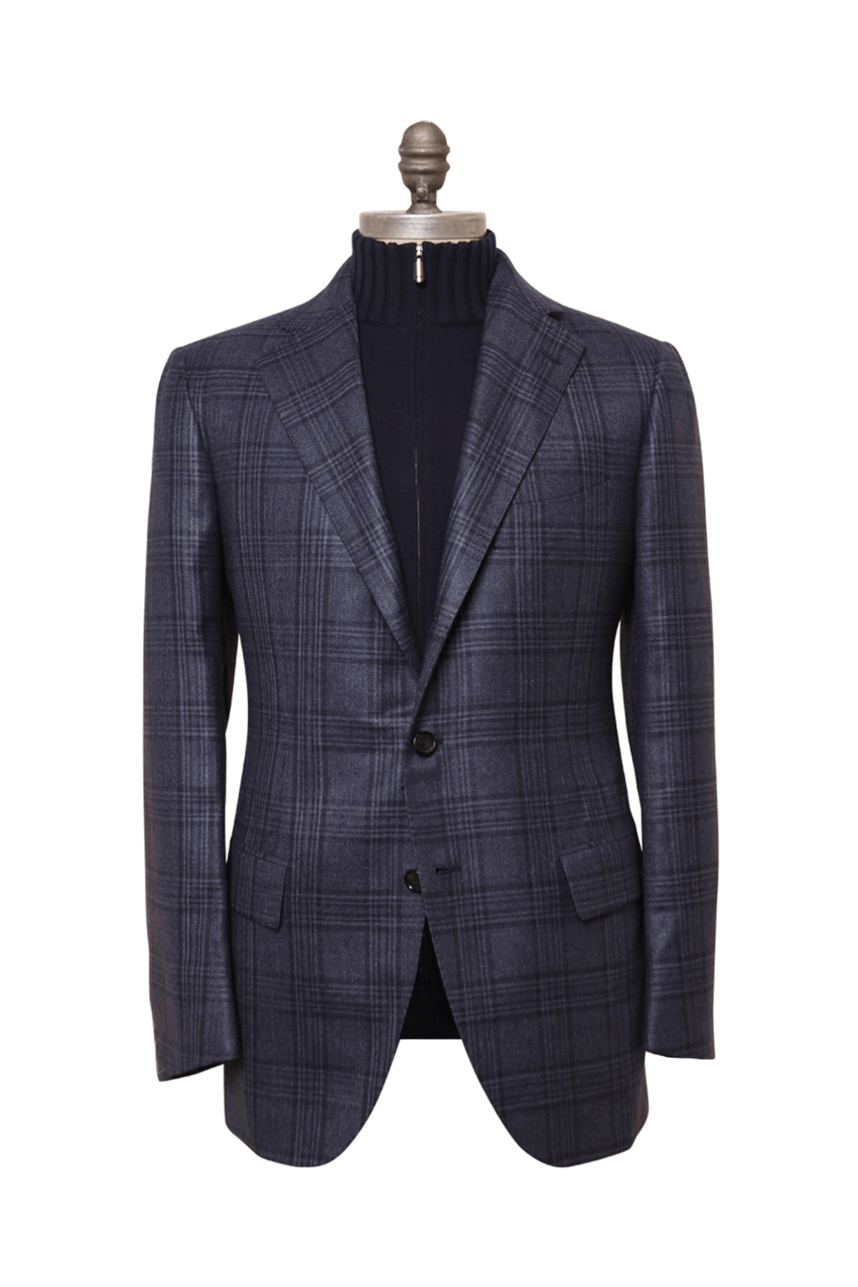 Blue & Navy Plaid Silk & Cashmere Sportcoat