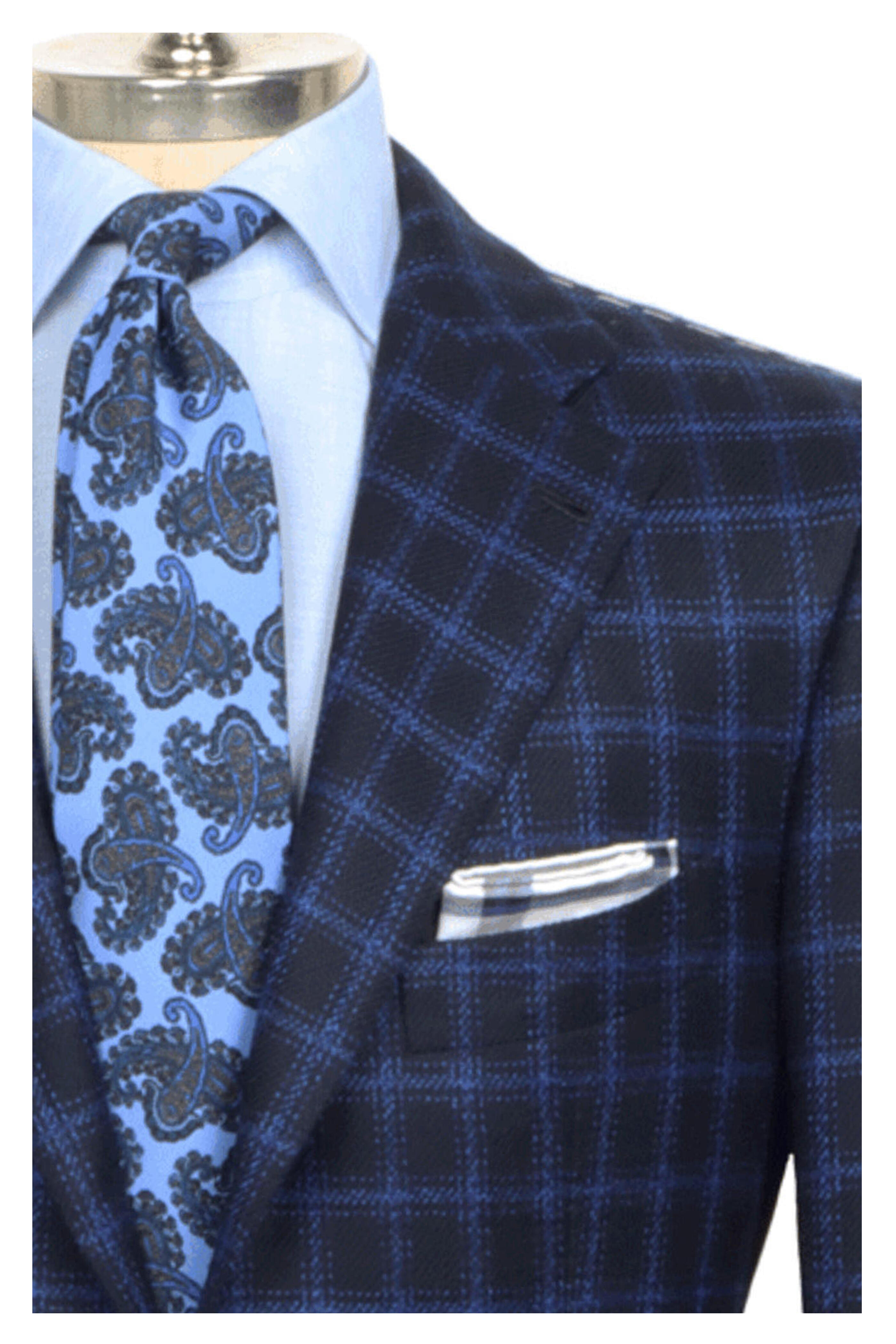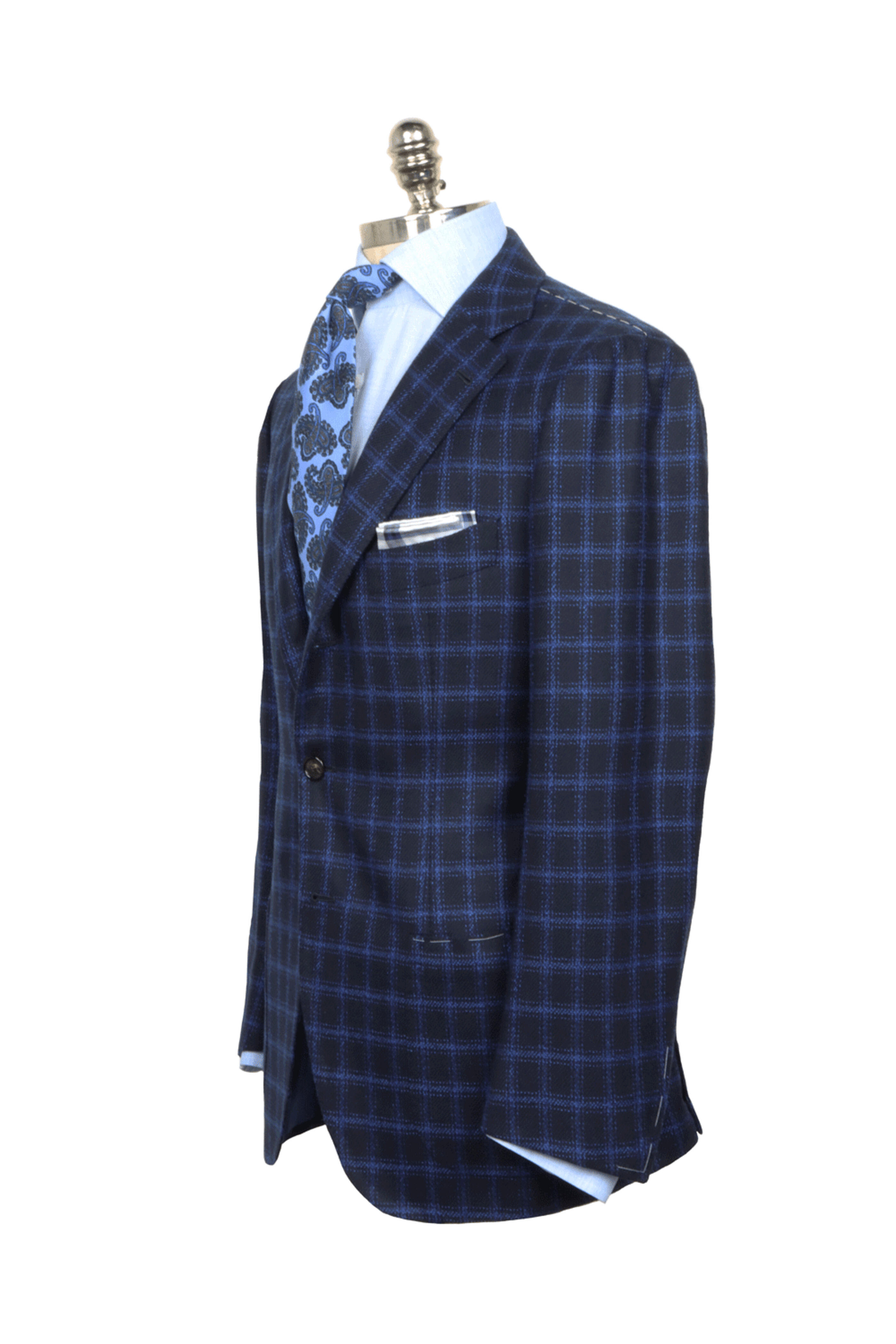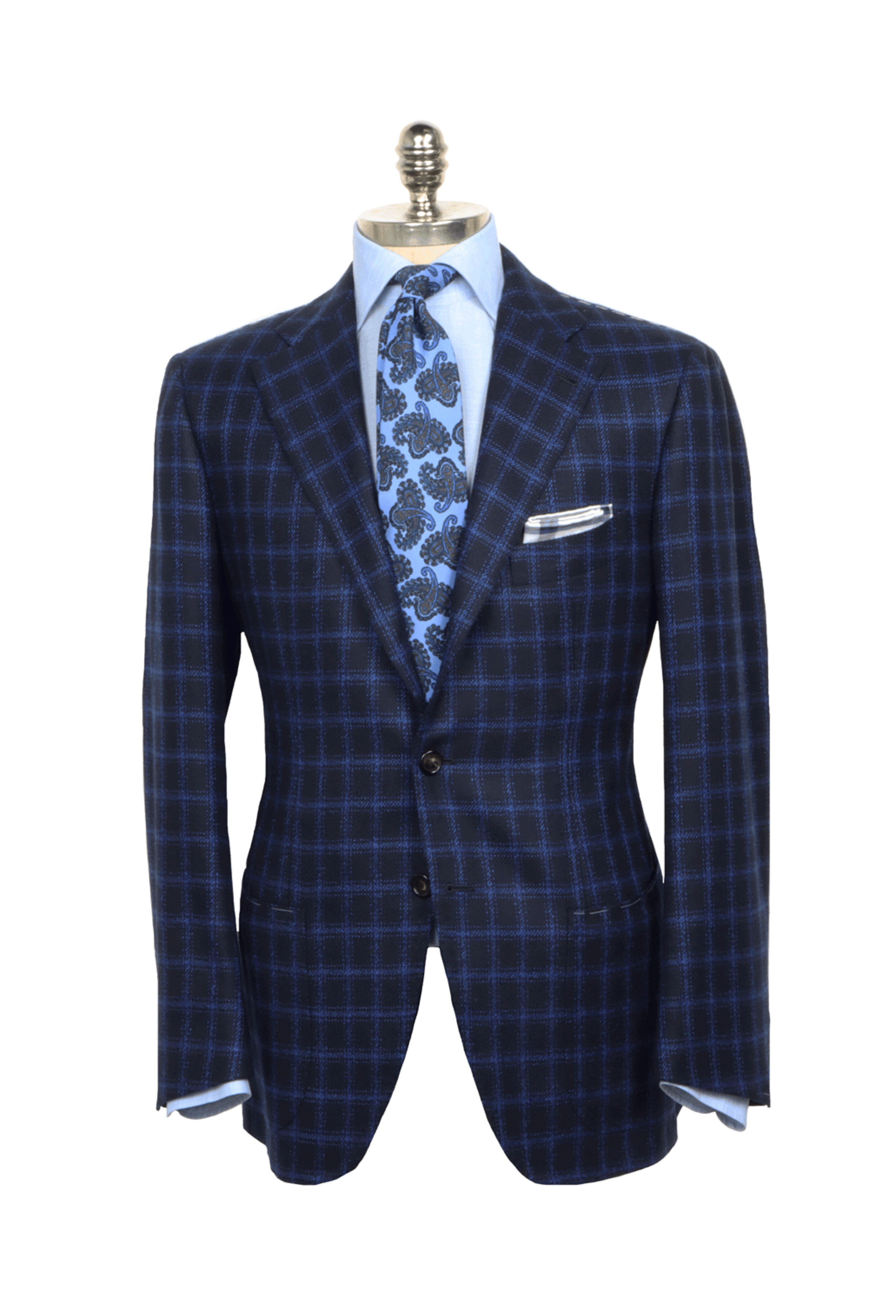 - Cesare Attolini Light Blue and Navy Grid Sportcoat