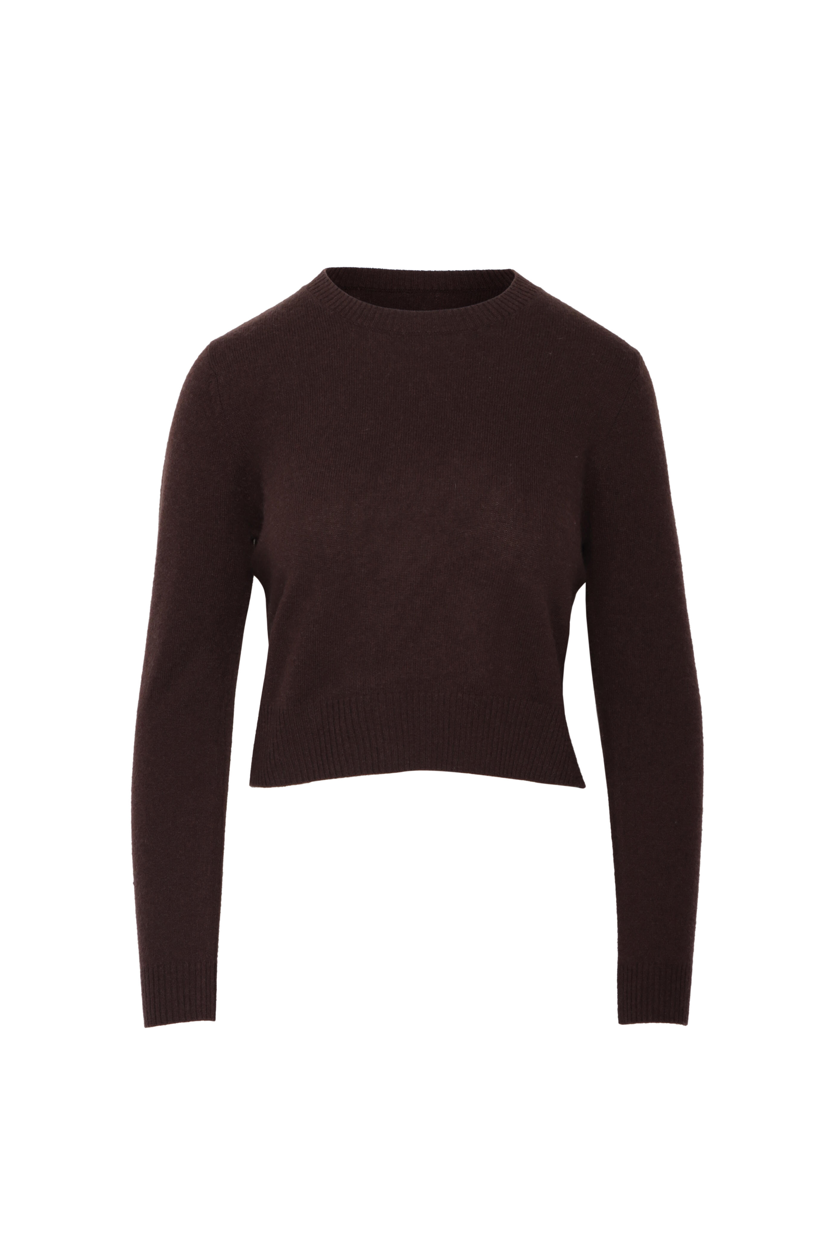 Crewneck. Long sleeves. Relaxed fit. Ribbed neck, cuffs, and hem. Imported. Cropped length. 100% cashmere. Handwash.