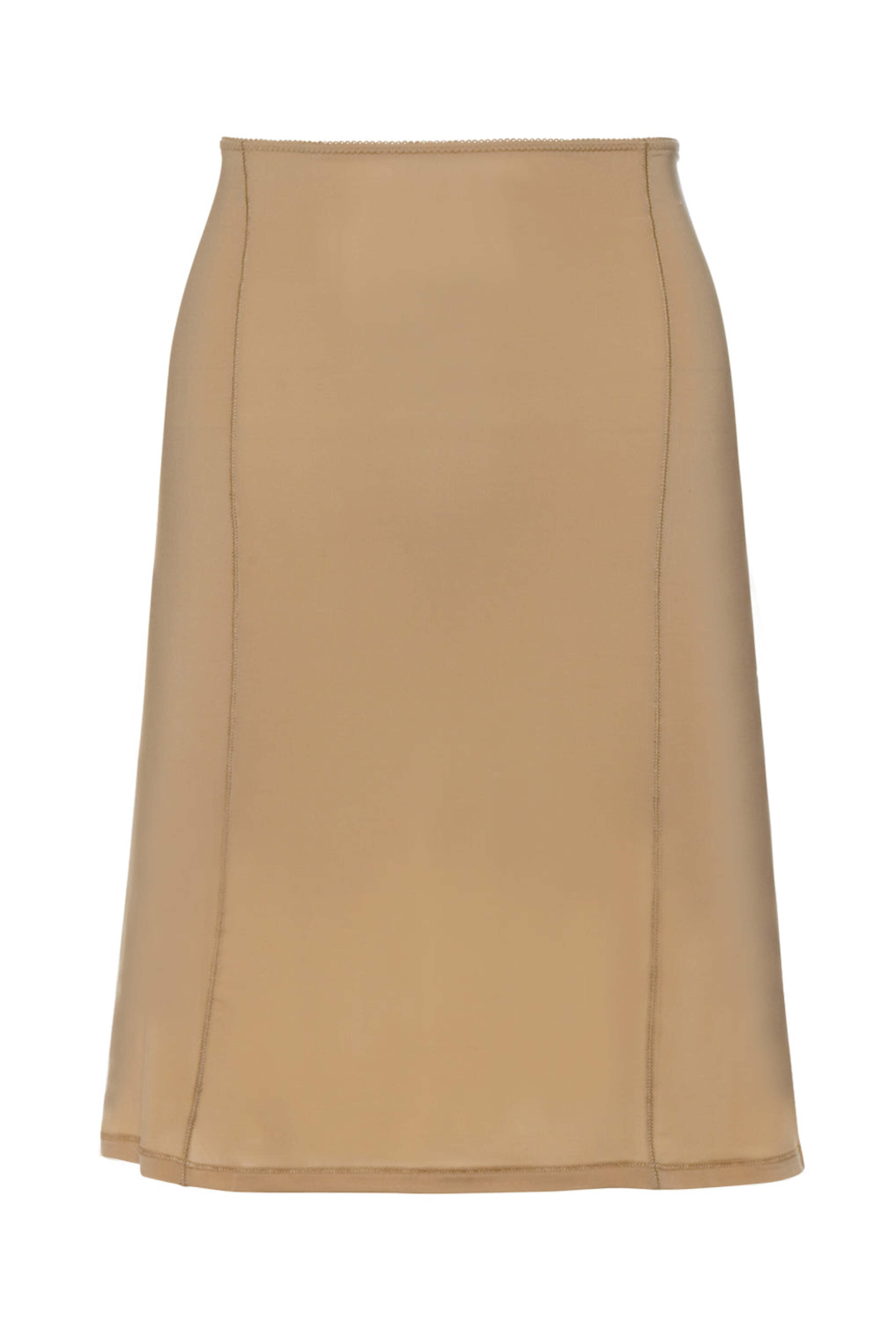 Ganni Nude Underwear Slip Skirt. Elastic waist. High-waisted. Wear under light or sheer dresses or skirts for a smooth, seamless look and clean silhouette. Form-fitting throughout. Stretch mesh rayon. Lightweight, mesh rayon jersey fabric with stretch. 90% rayon, 10% elastane.