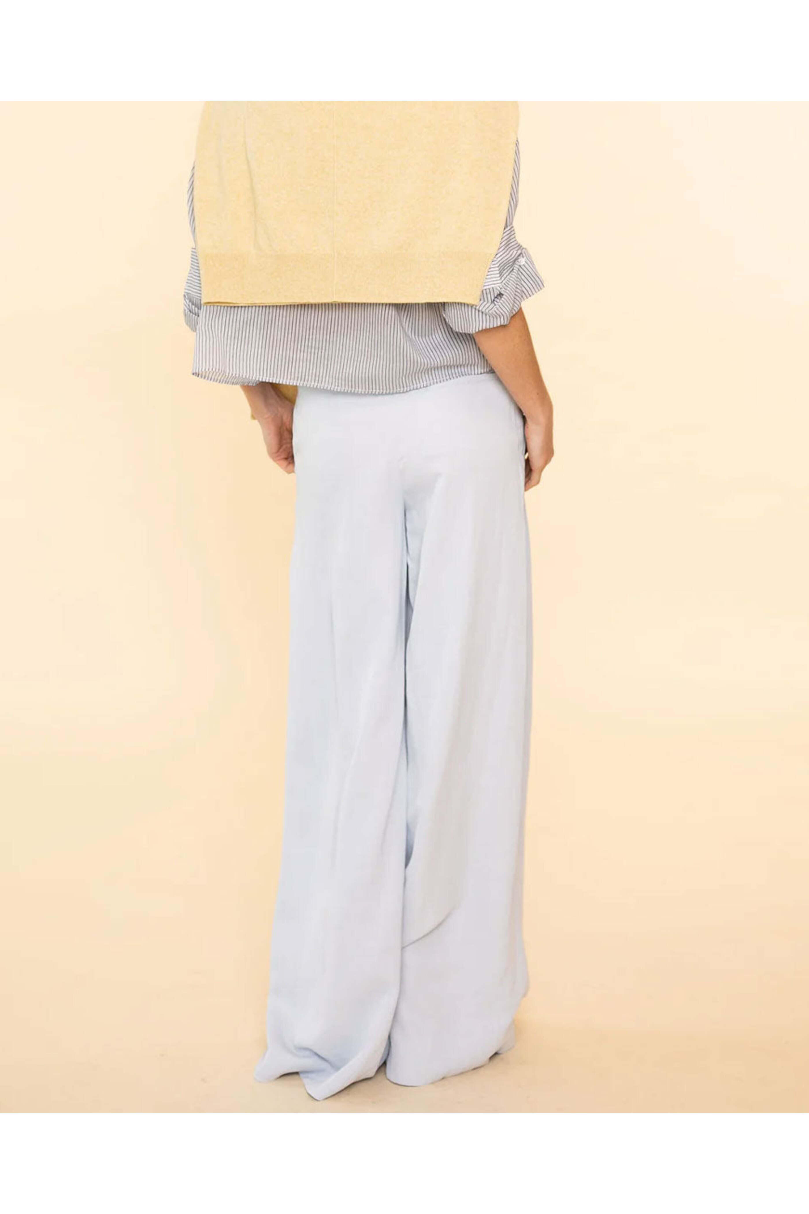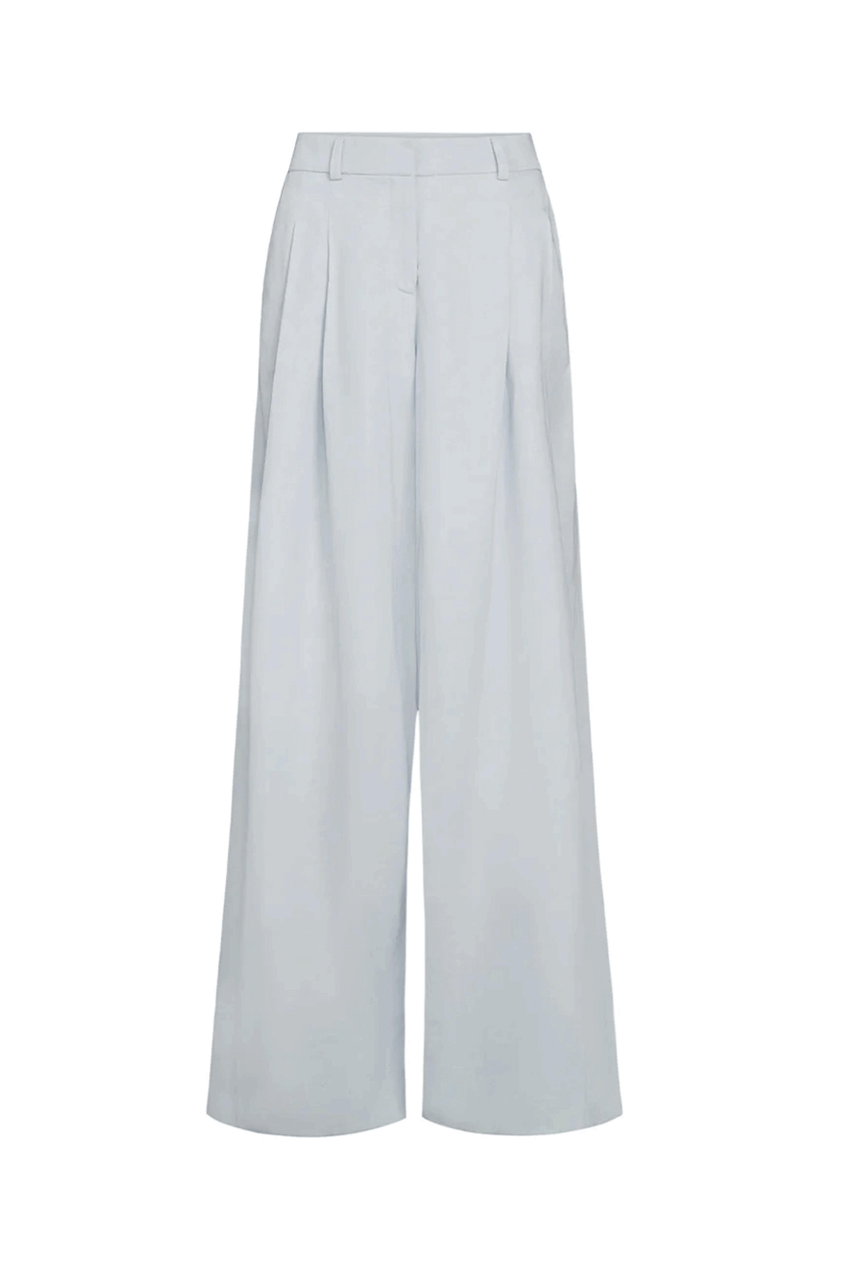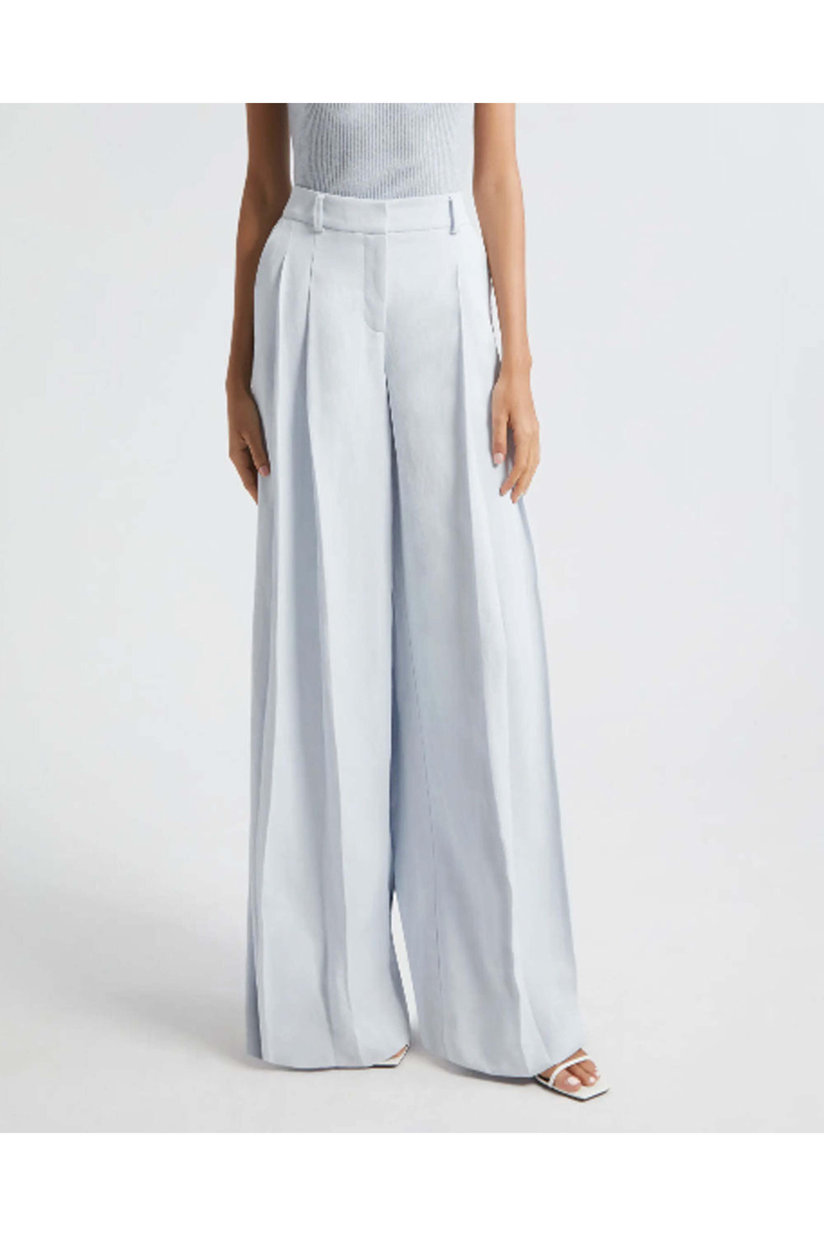 TWP Ancient Water Linen Didi Pant . Mid rise . Wide leg silhouette . Pressed pleats . Zip fly; hook and bar closure . Full length . 77% viscose, 23% linen .
