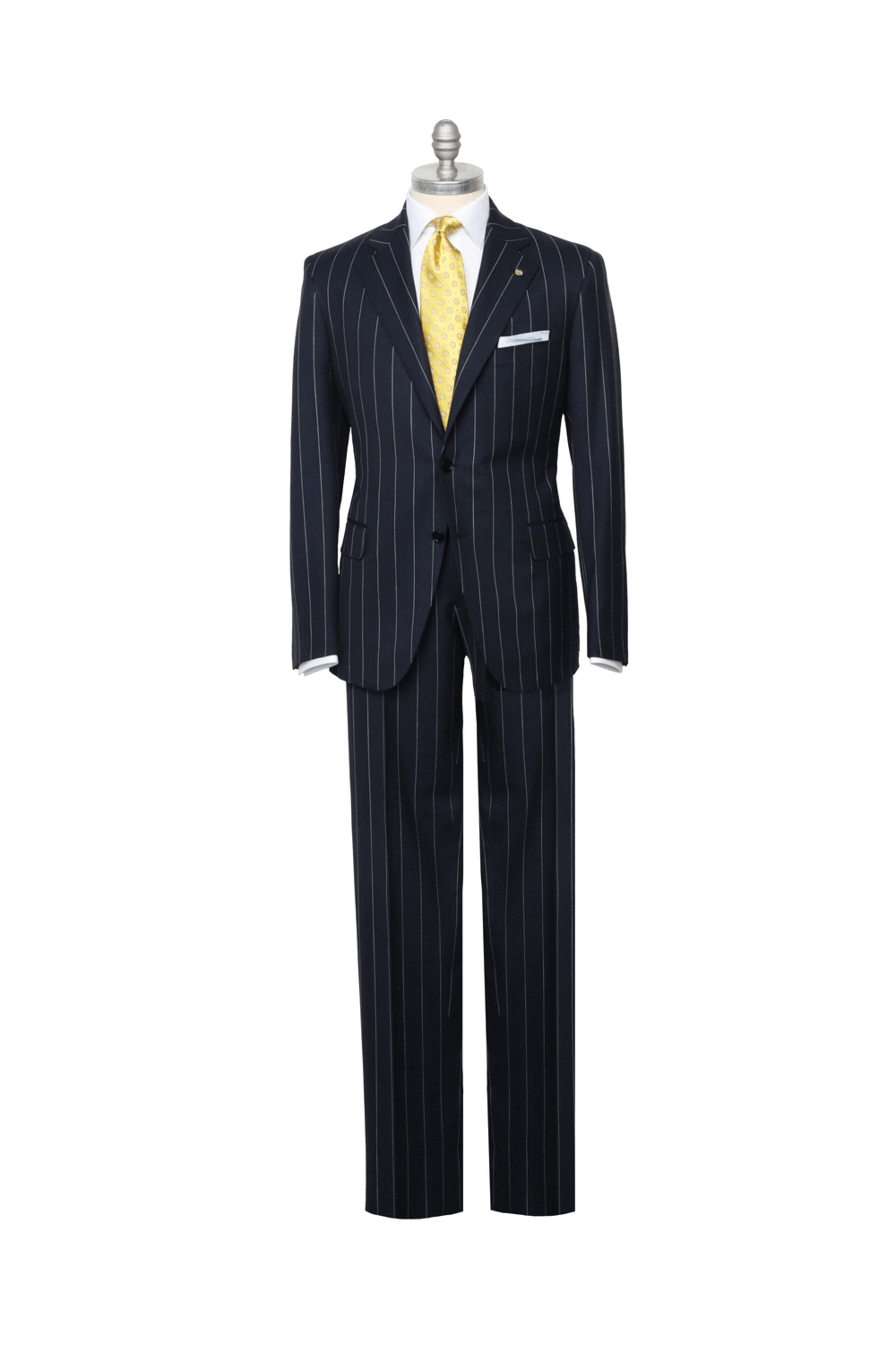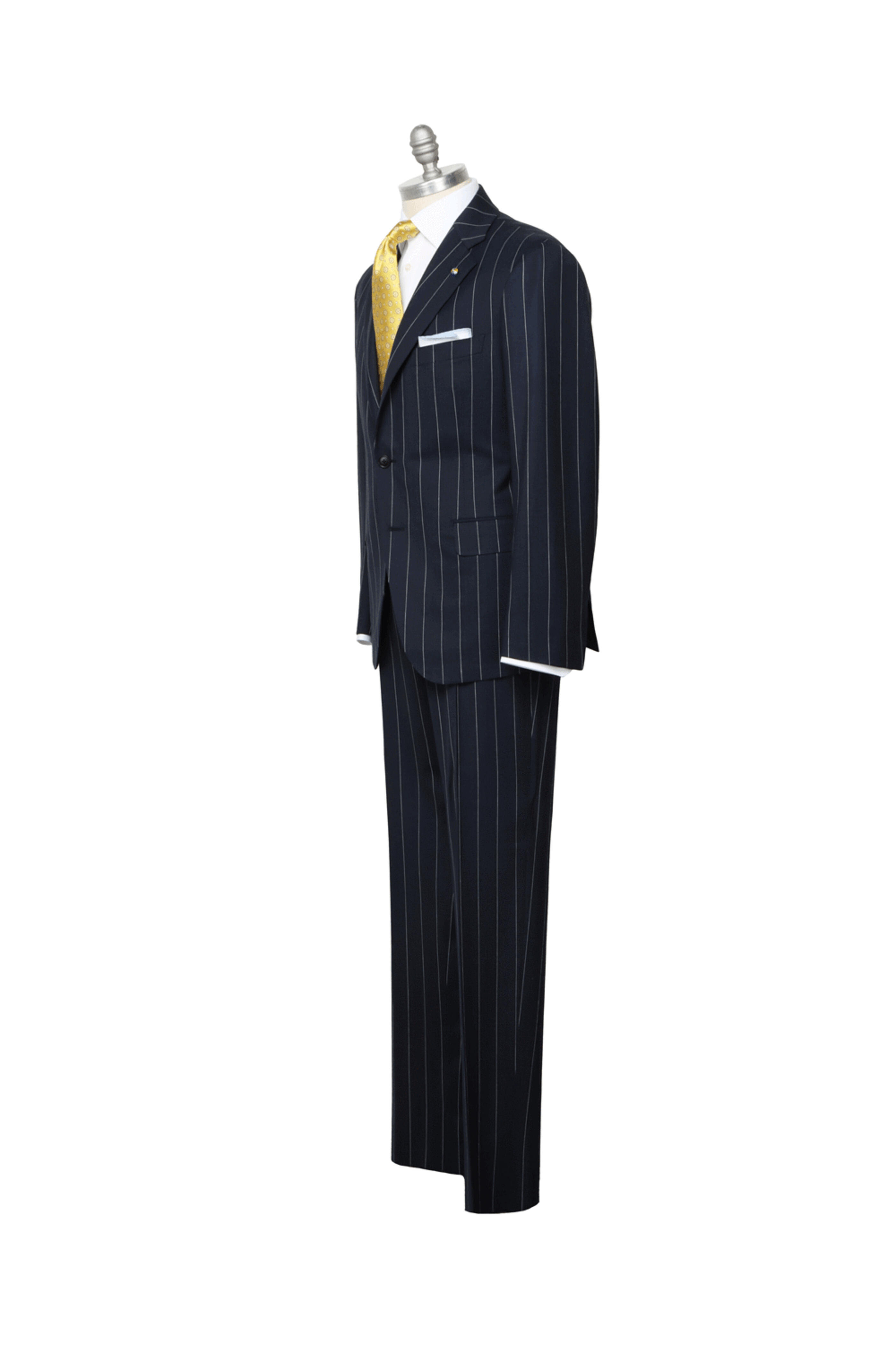 Notch lapels. Front button closure. Front left chest welt pocket. Waist flap pockets. Double back vents. Unfinished buttonholes. Cupro lining. Flat front pant. Zip fly. Single button closure. Belt loops. Side pockets. Single button back welt pockets. Unfinished hem. Made in Italy. 67% wool, 20% silk, 10% linen, 3% elastane; fully lined.