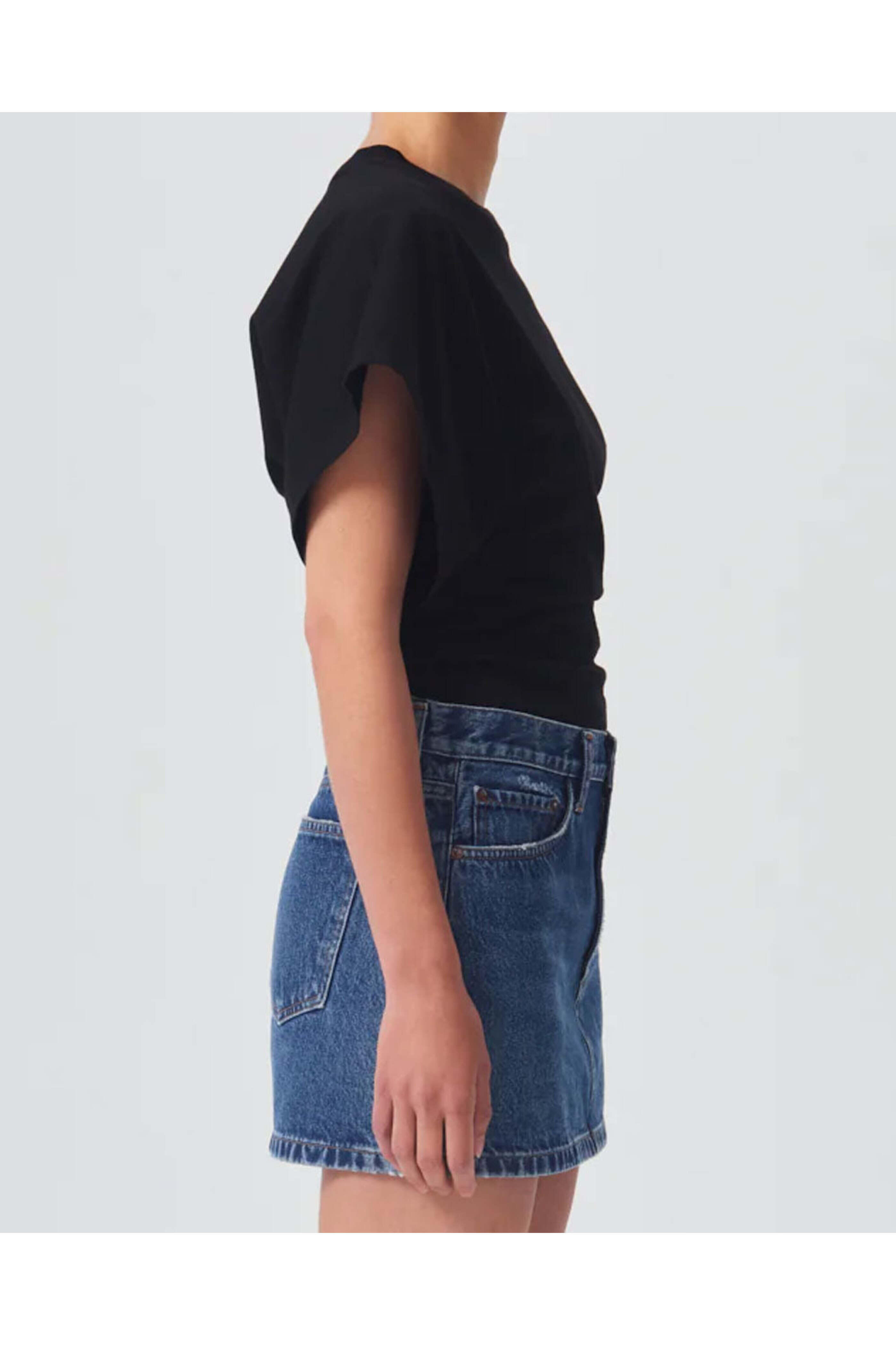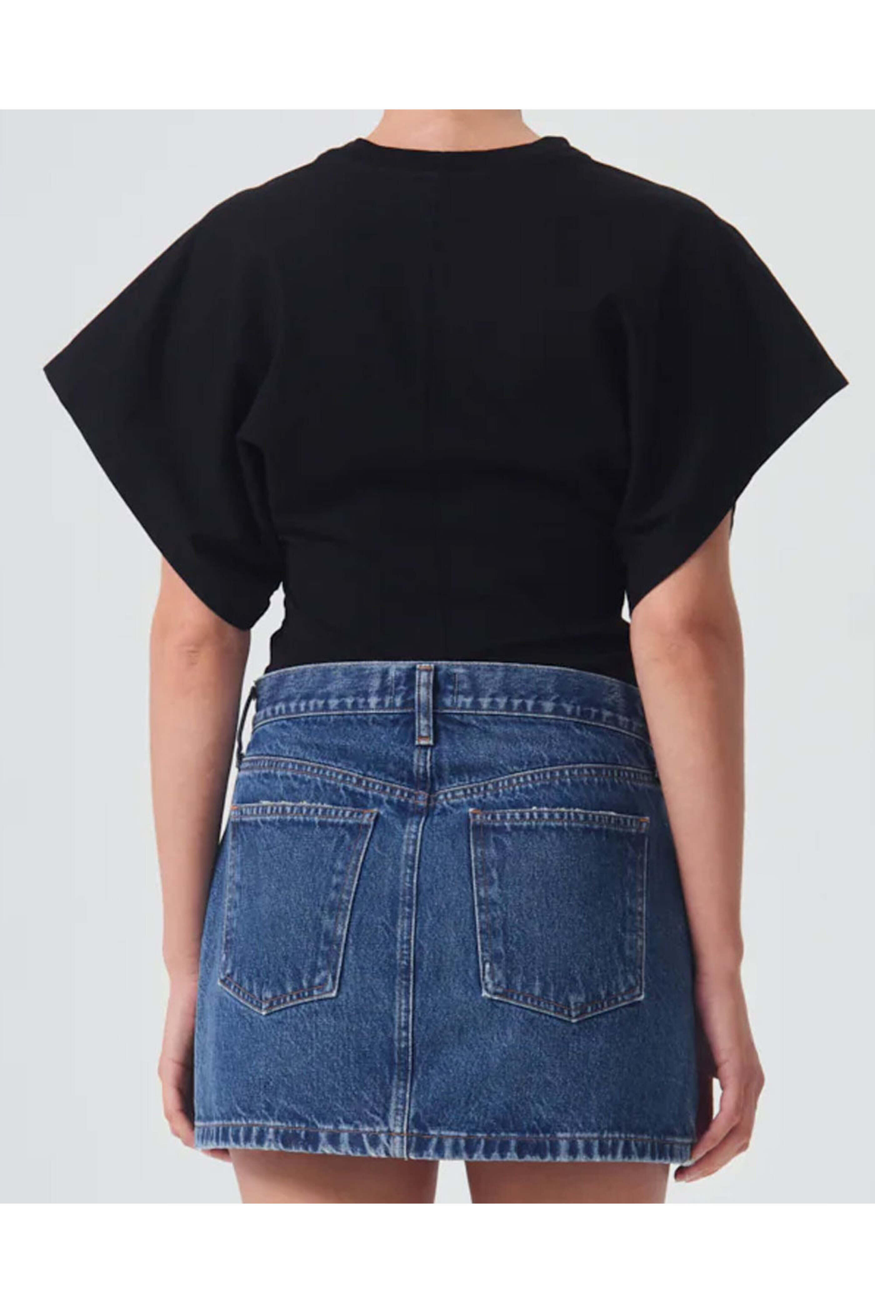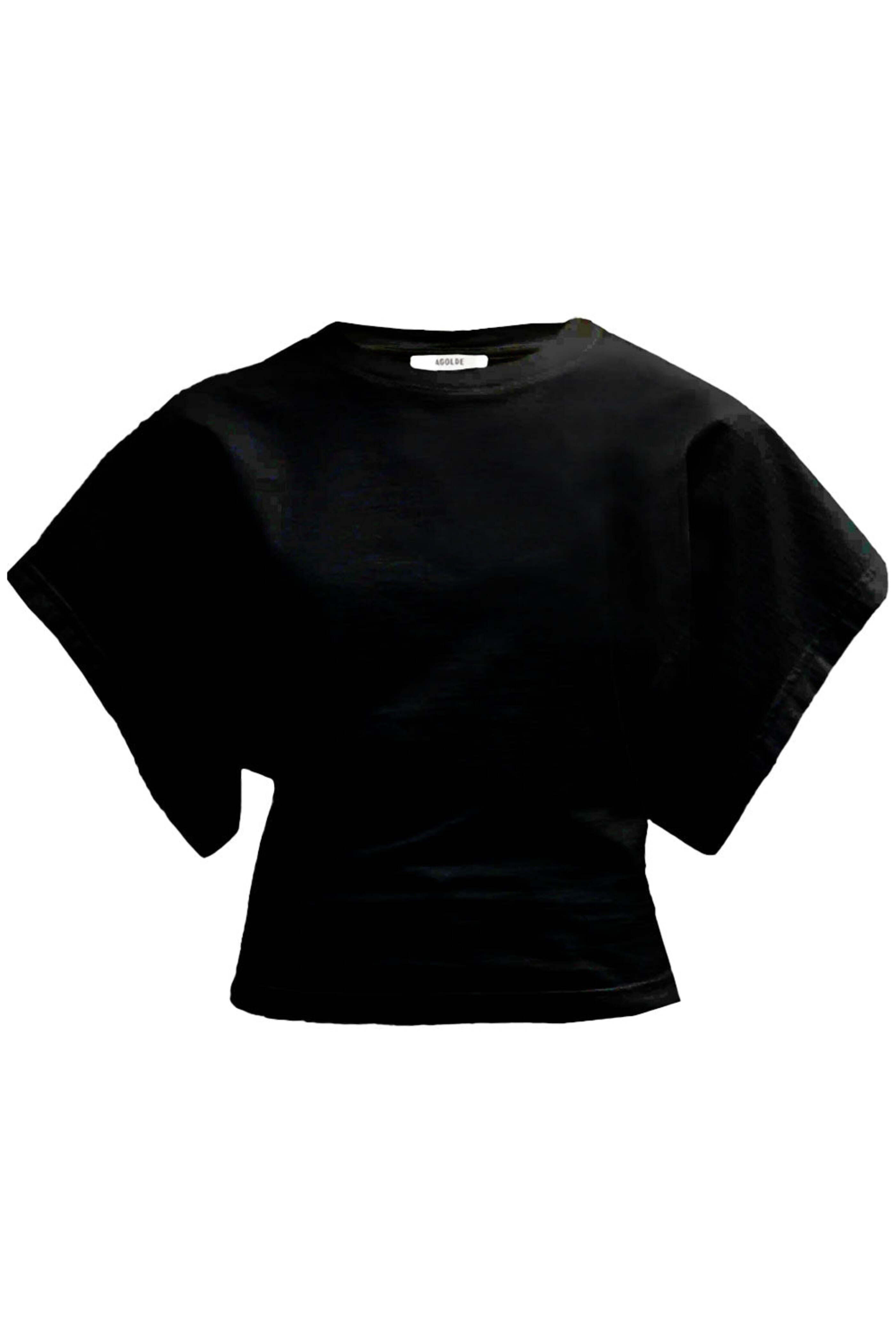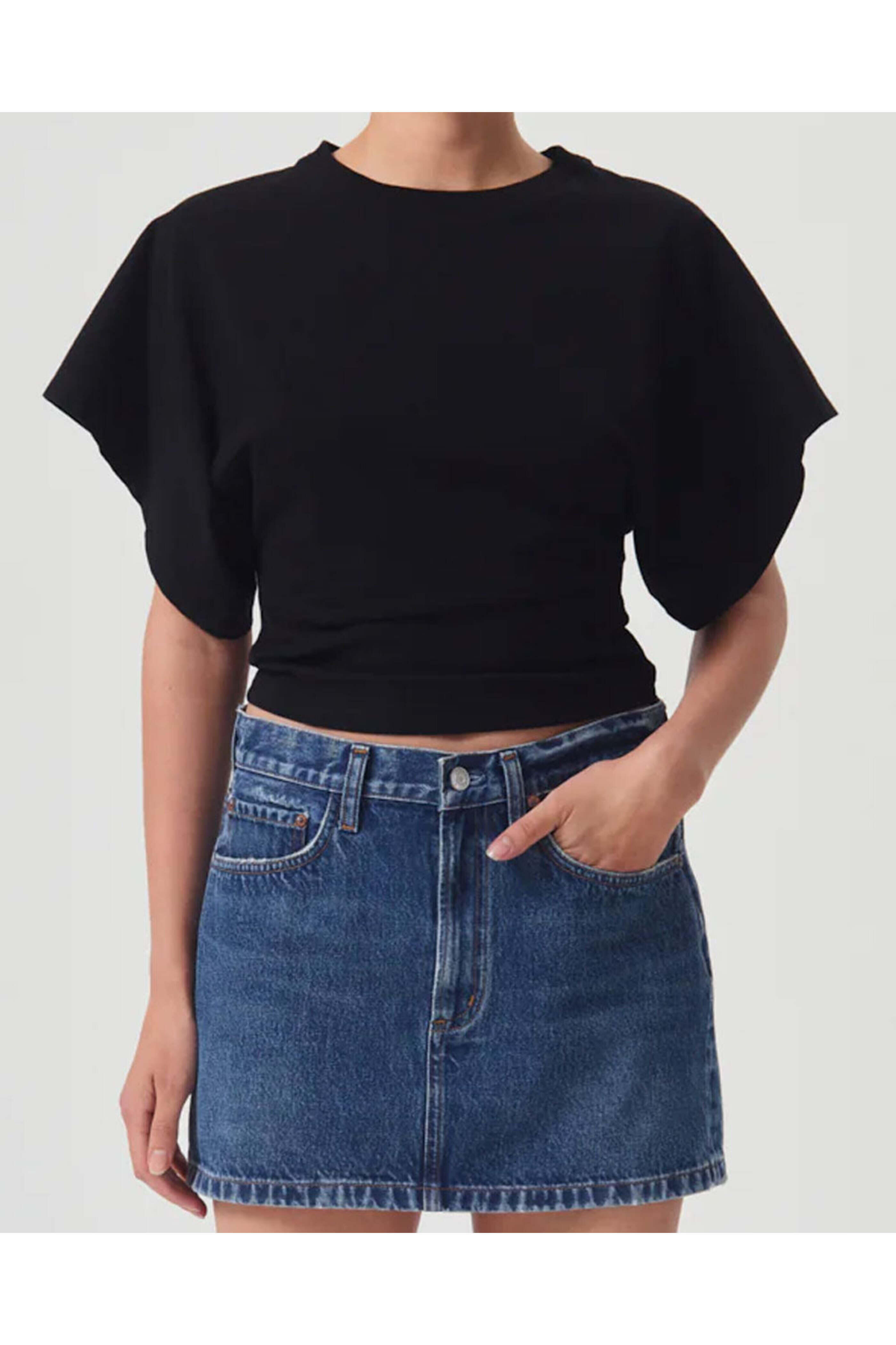 Agolde Black Britt Tee. Crewneck. Flared sleeves. Pullover style. Slim fit. 100% cotton.