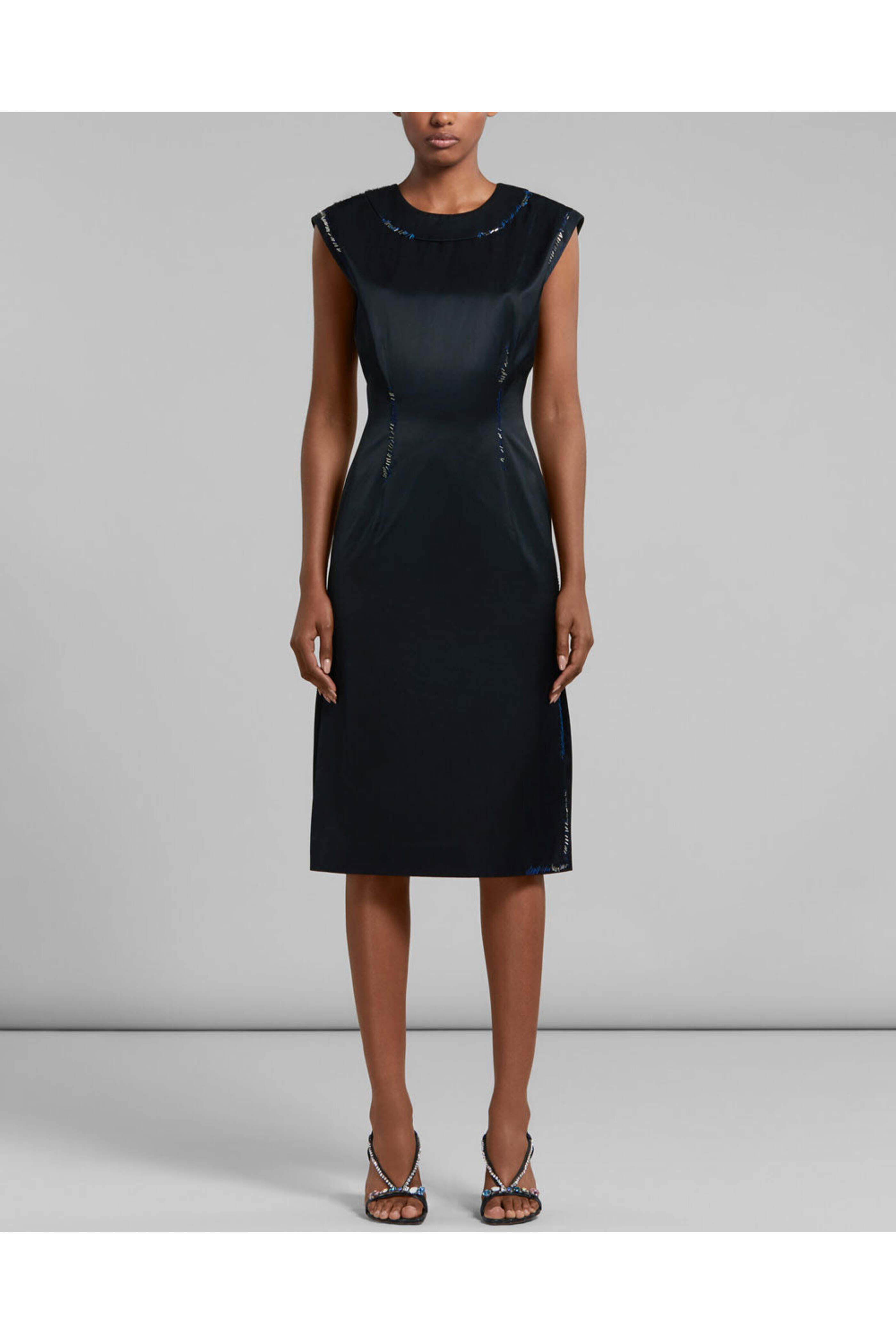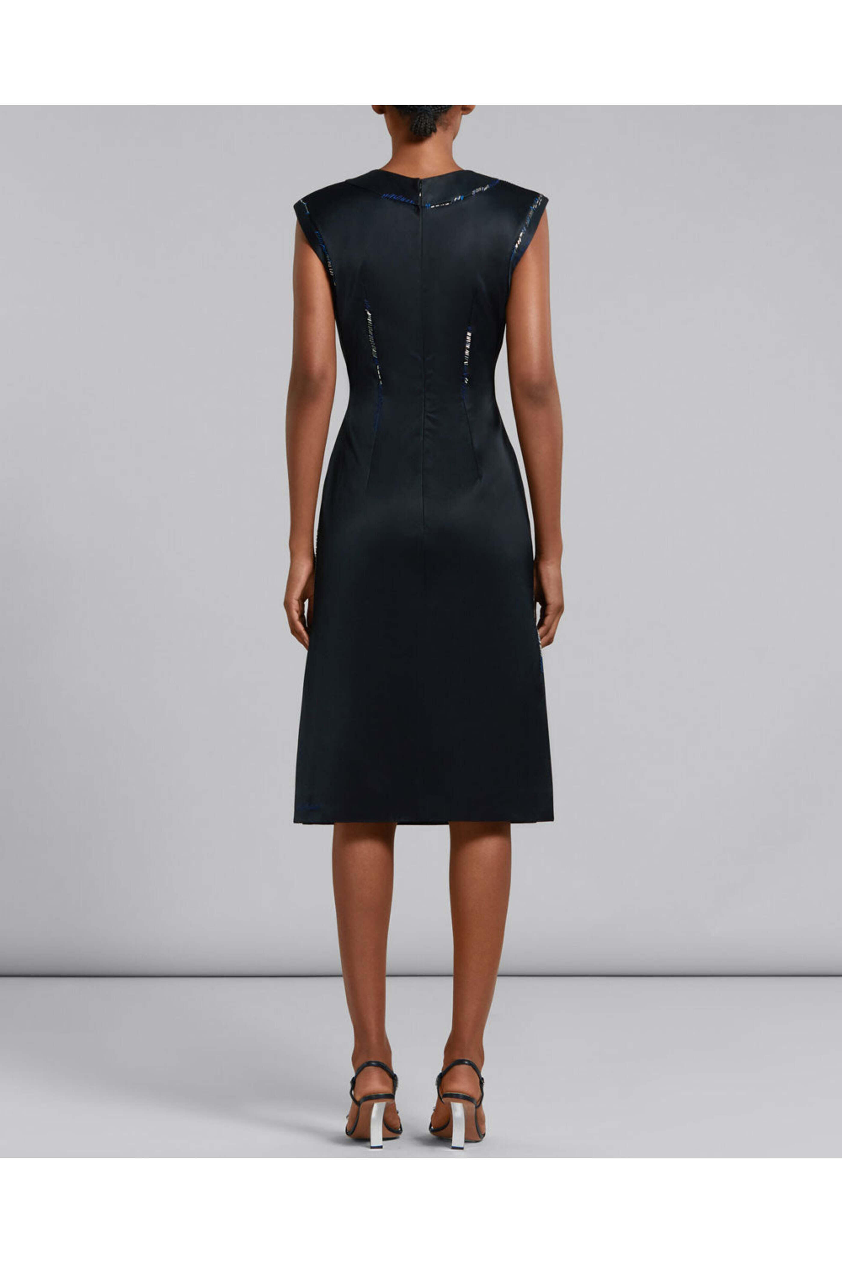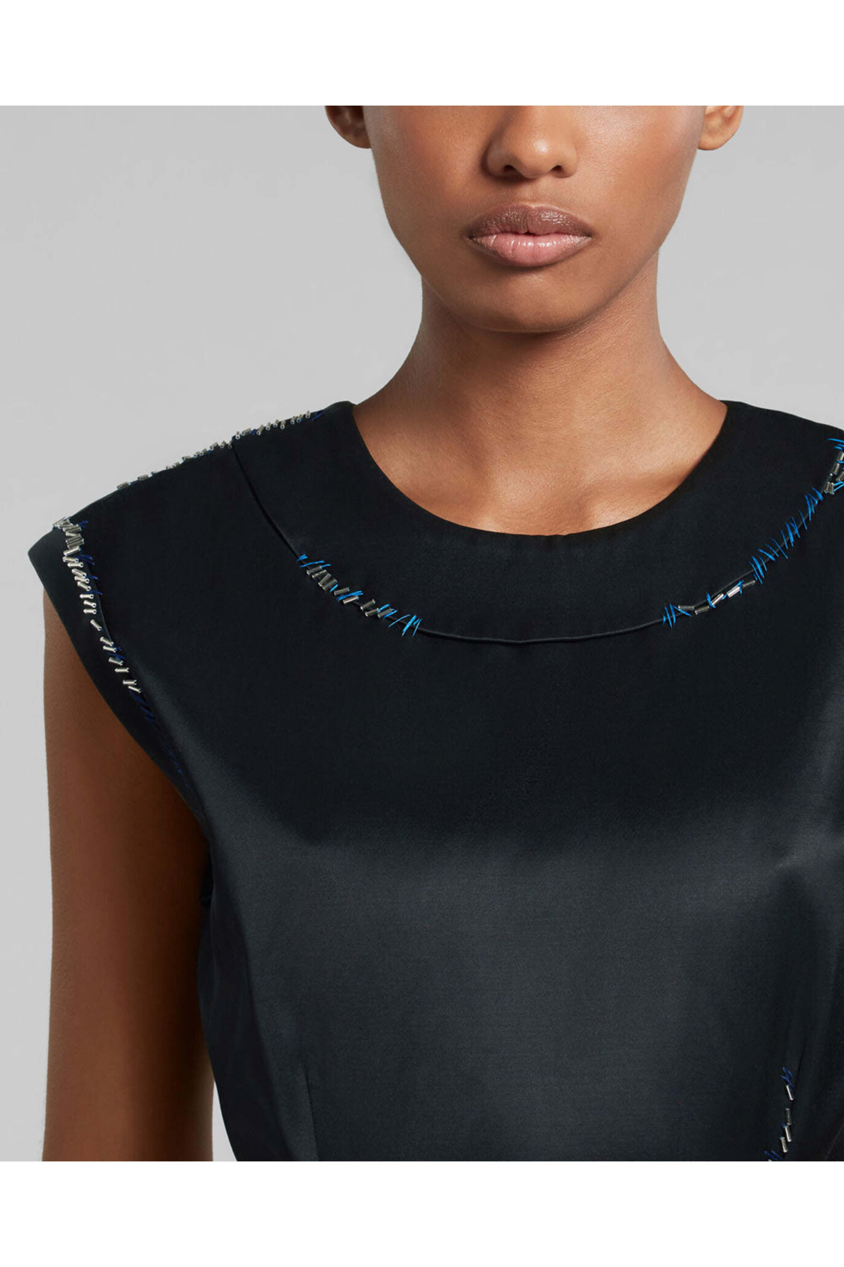- Marni Black Satin Bead Embroidered Sleeveless Midi Dress