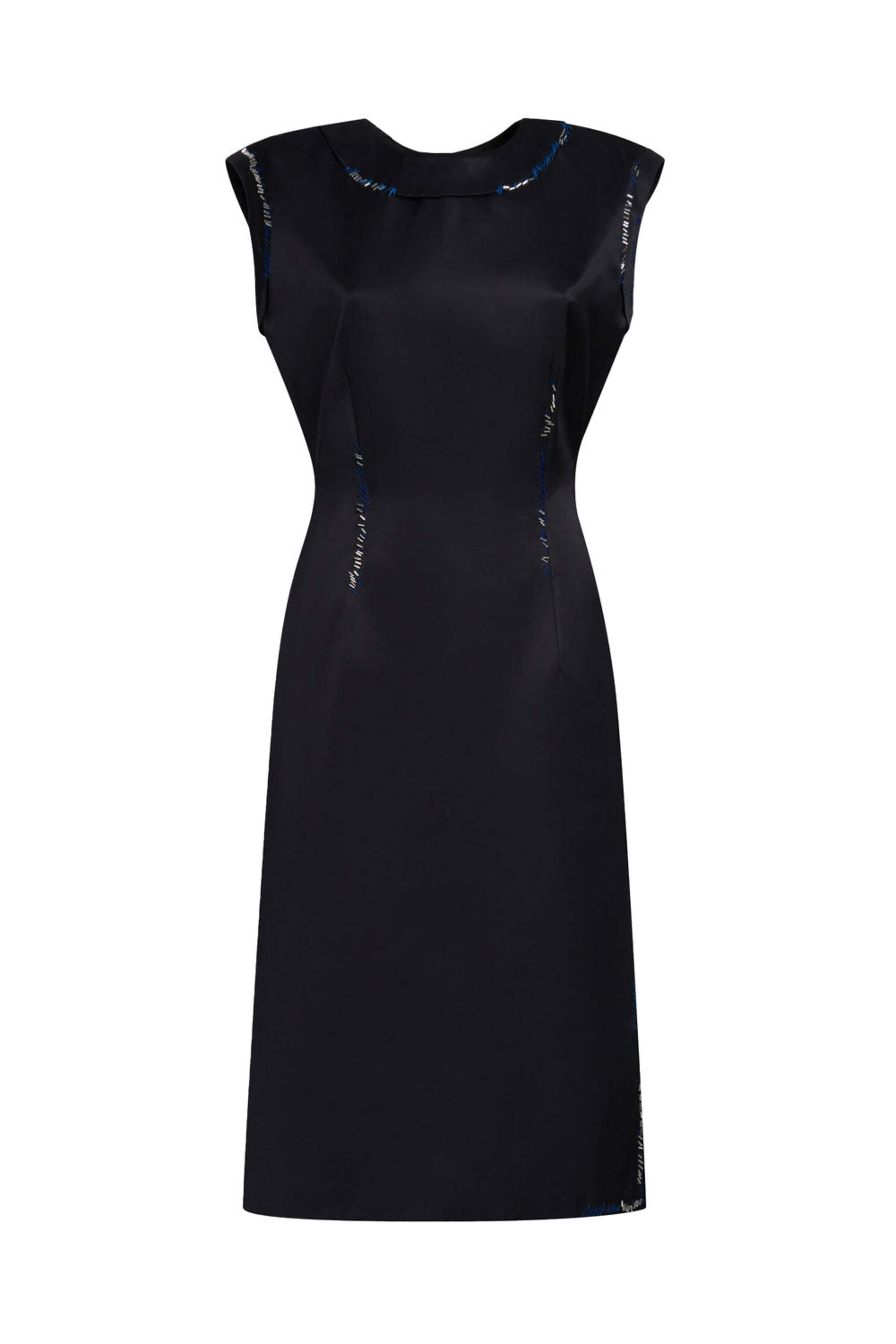 Black Satin Bead Embroidered Sleeveless Midi Dress