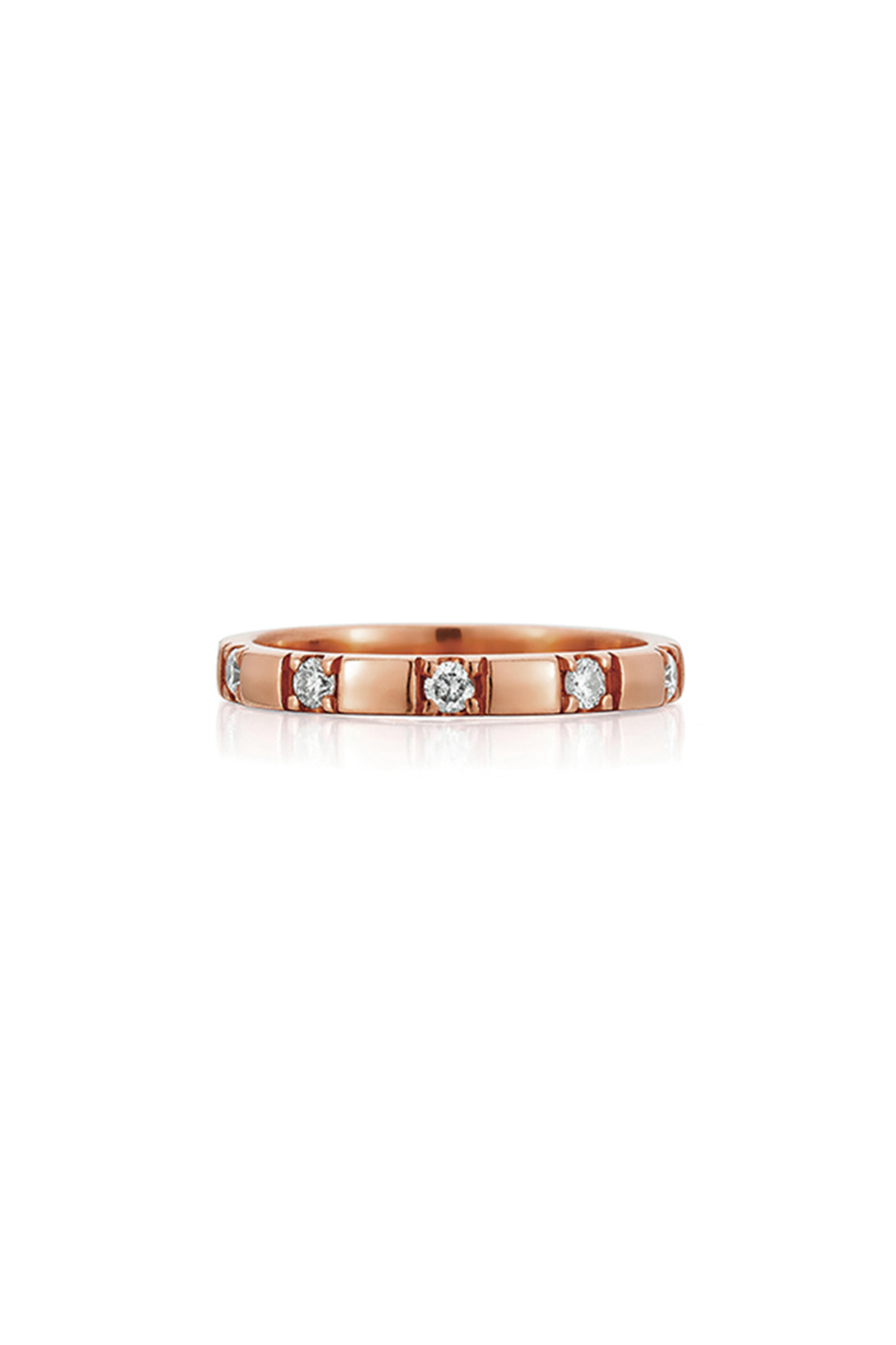 14k rose gold. Diamond 0.50 total carat weight. Eternity style. Prong setting. Band. Handcrafted in L.A.. Ring size 6.75.