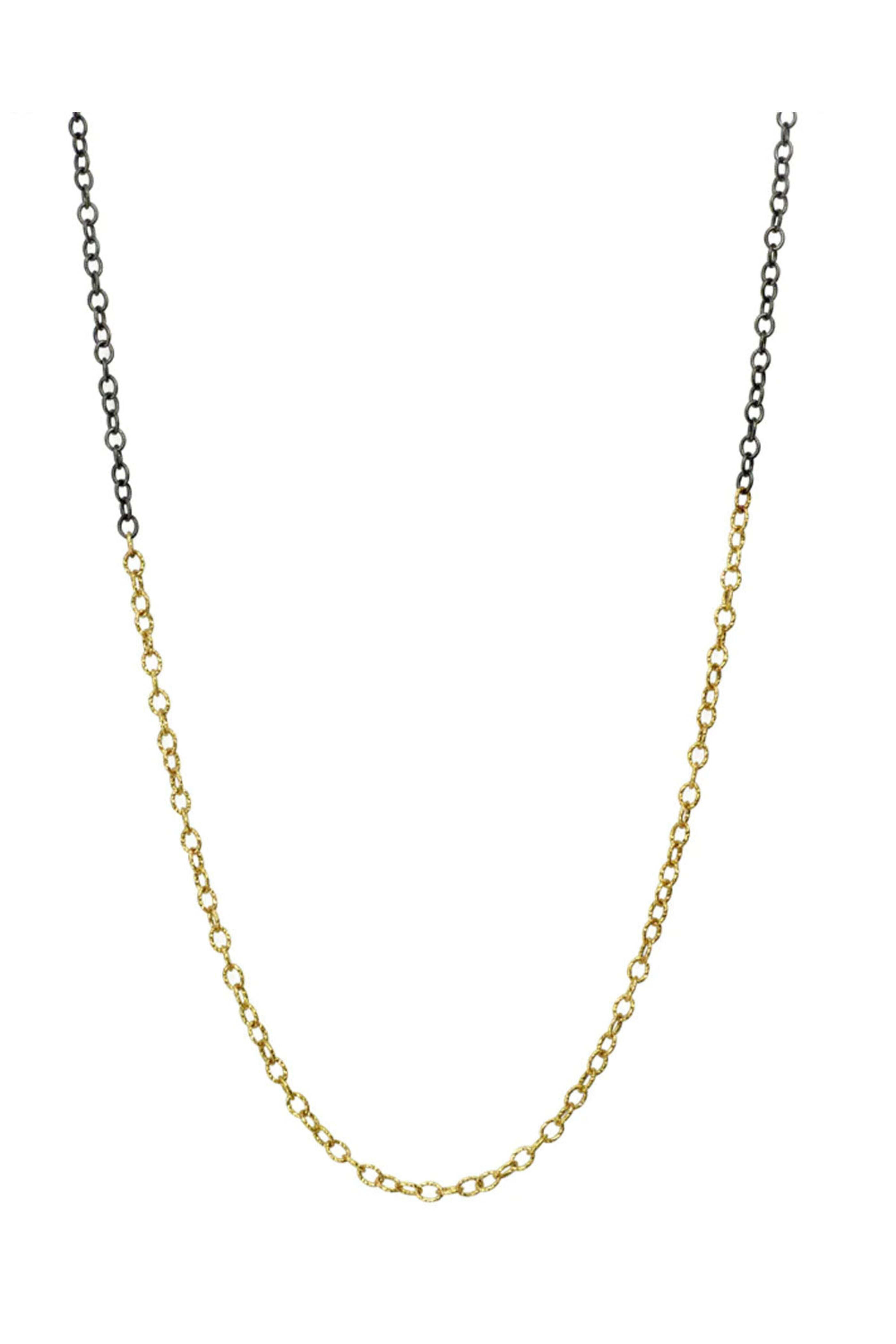 .925Suneera Alex 18" Two Tone Chain. 14k yellow gold. Sterling silver. Black rhodium. Chain link. Two tone chain. 18. Lobster claw clasp. Handcrafted in L.A.