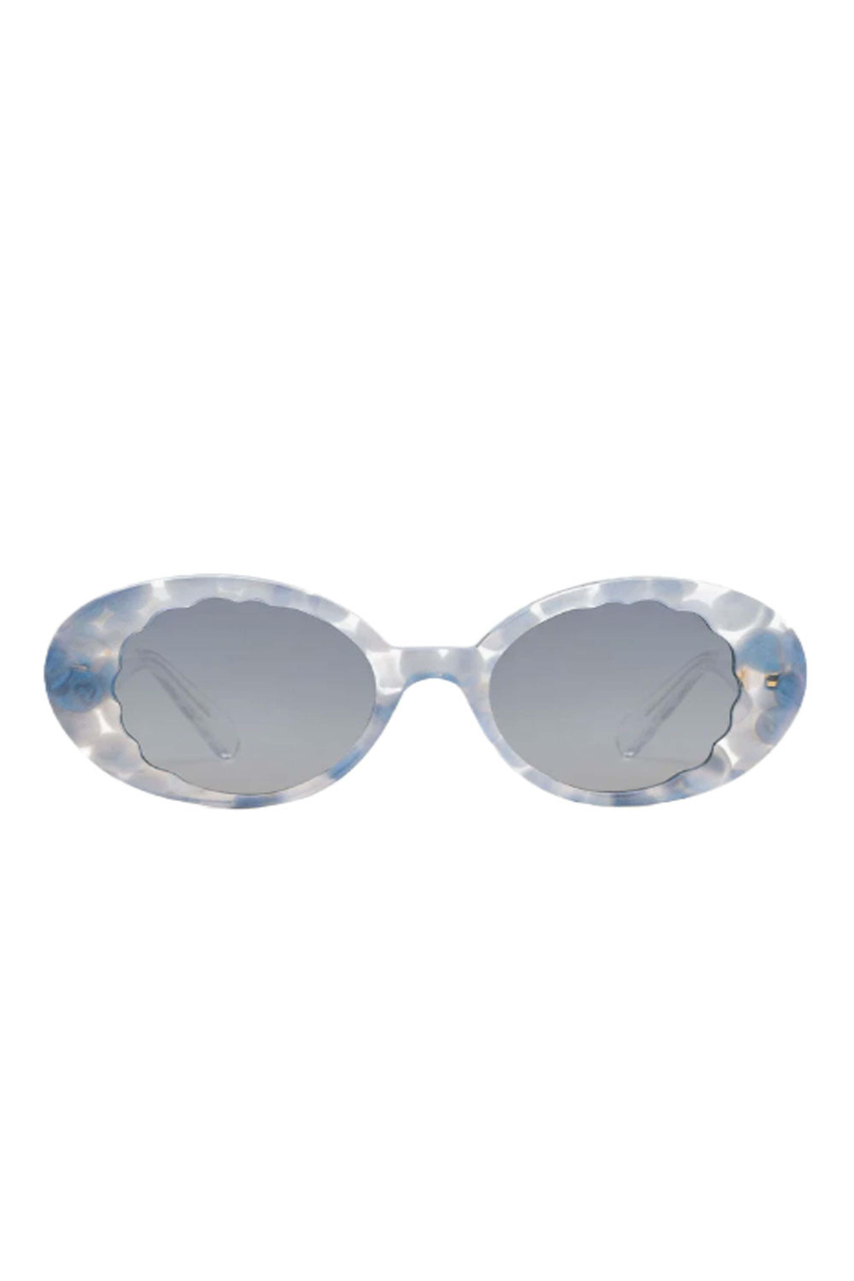 Krewe Alixe Mirrored Sunglasses in Opaline. Custom, silver gradient mirrored lenses. Handcrafted, acetate frames features a glossy finish. Adjustable temple wires. Riveted 5 barrel hinges enhance the frames durability. Anti-reflective and scratch-resistant coatings. Fit: 132mm. Eye: 50mm. Temple: 147mm. Bridge: 21mm. 100% UVA/UVB protection.