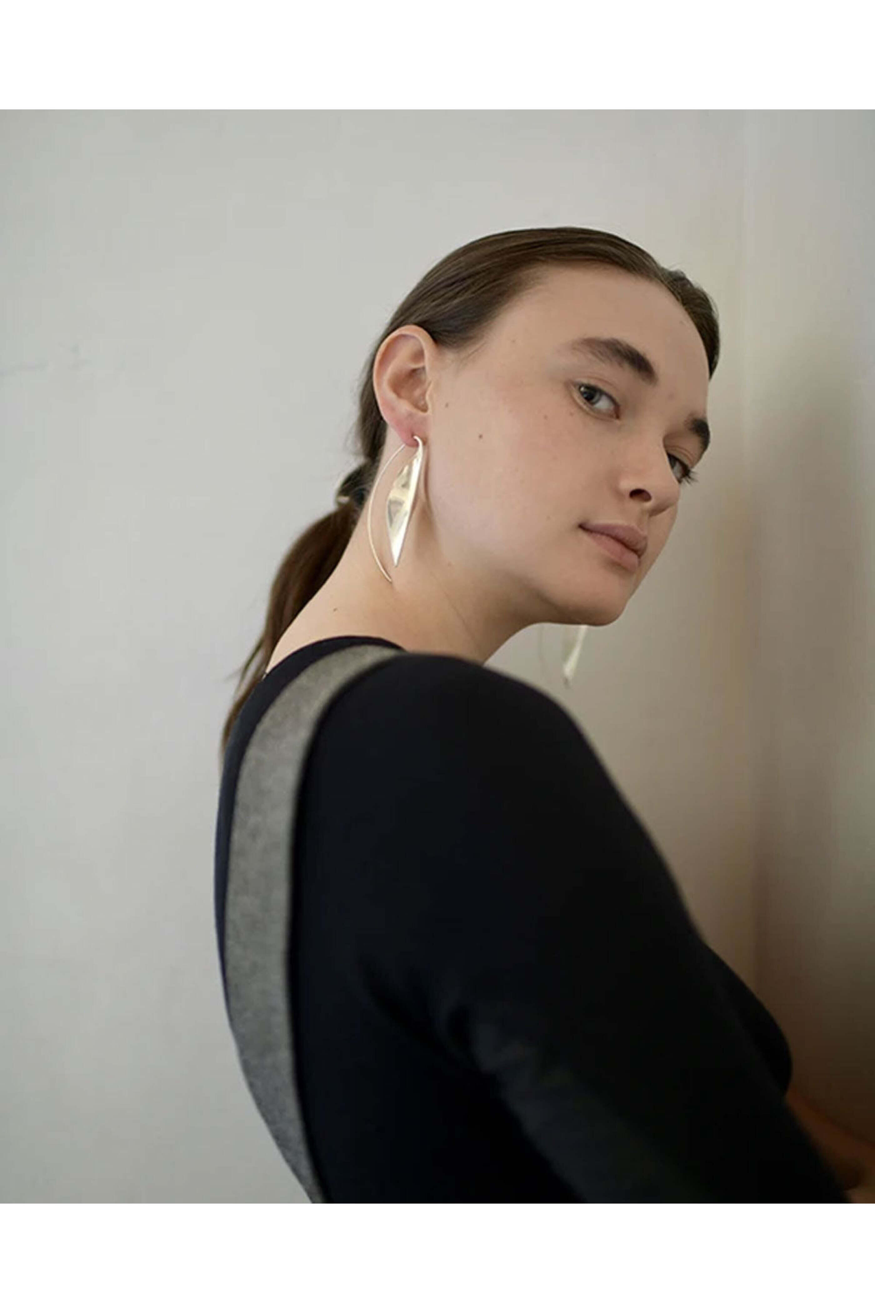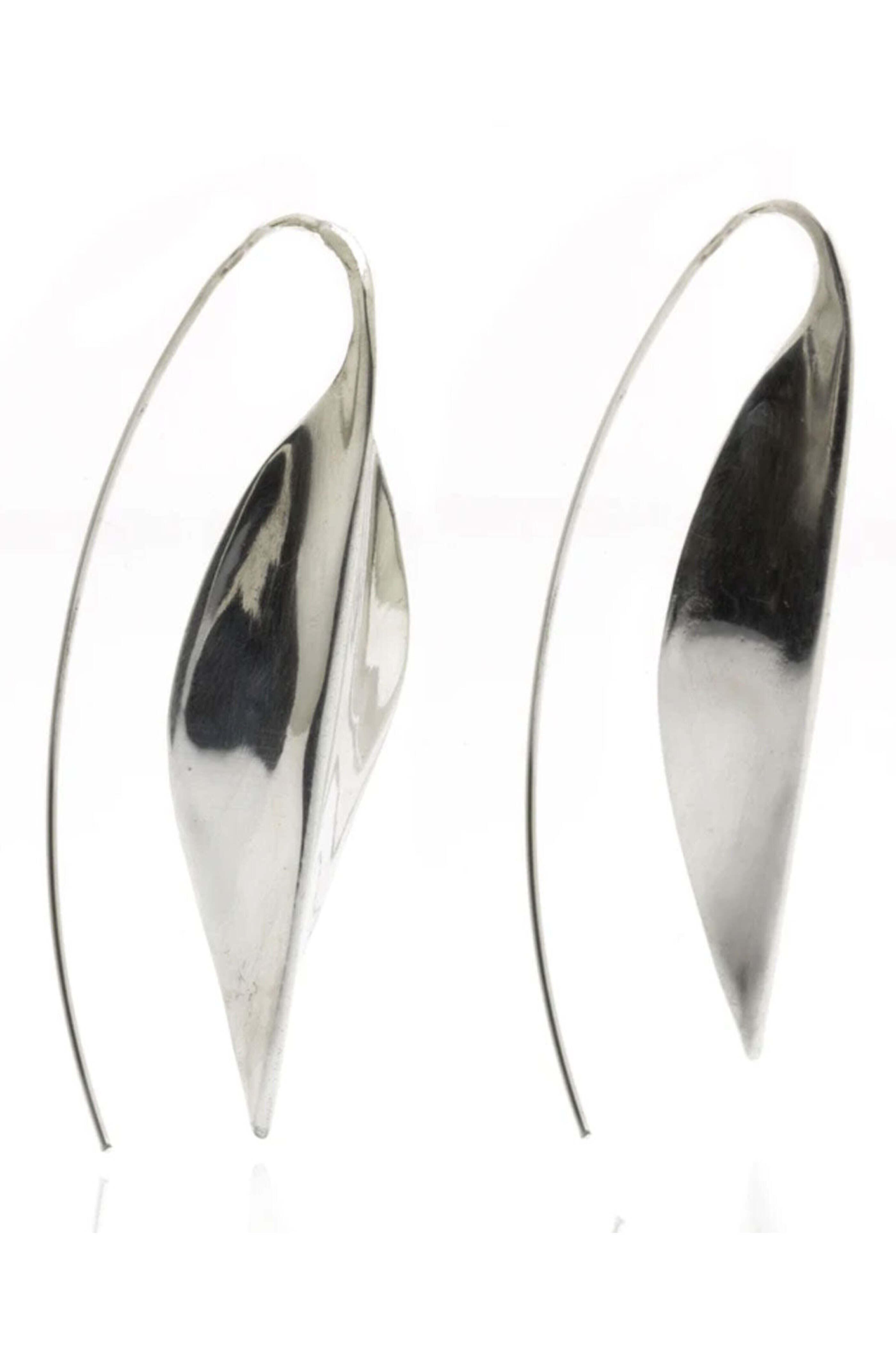 Ariana Boussard-Reifel Sterling Silver Ishtar Earrings. Sterling silver. 3" L x 0.75" L. Projects slightly from the ear, like a lilting leaf. Elongated earwires. Each piece is hand cast and finished.