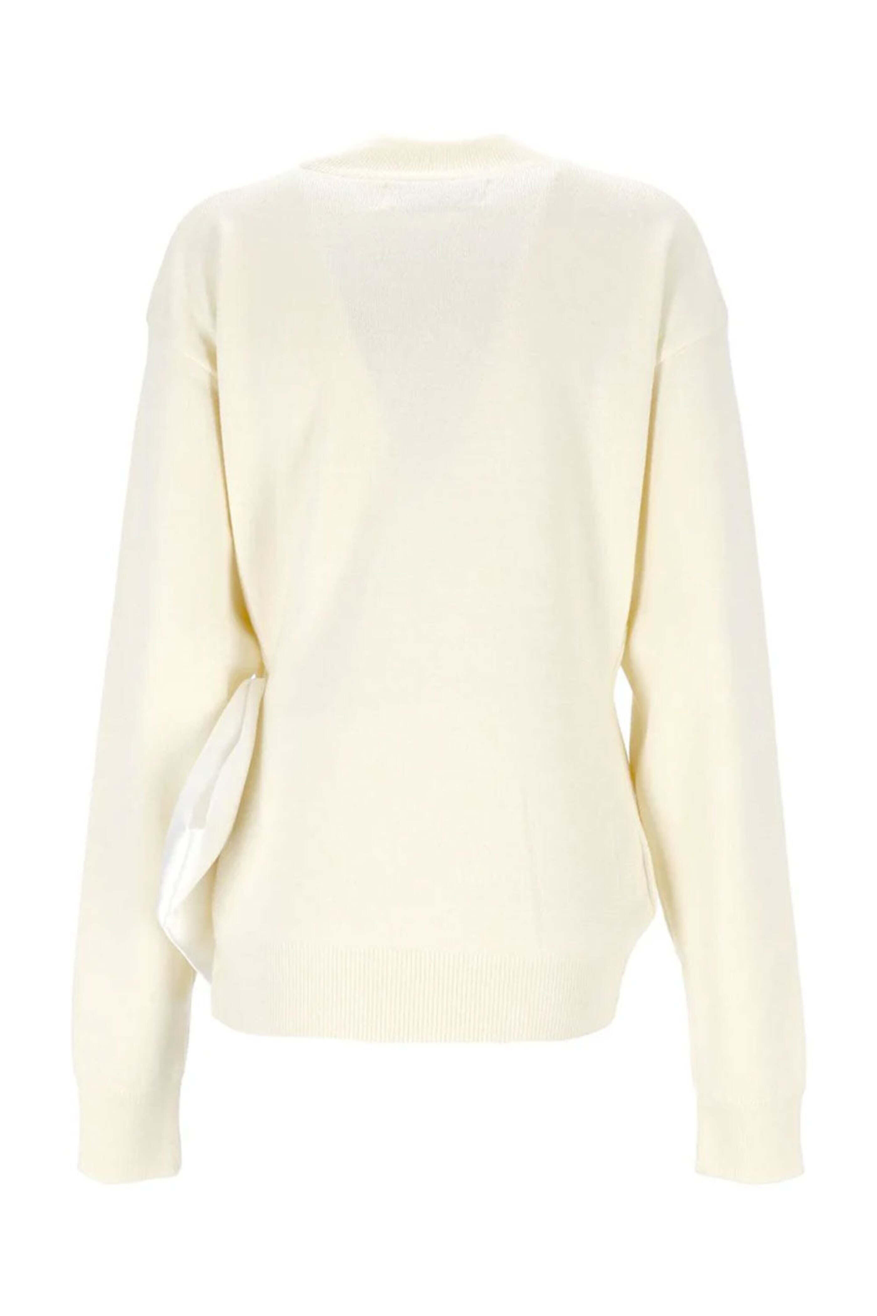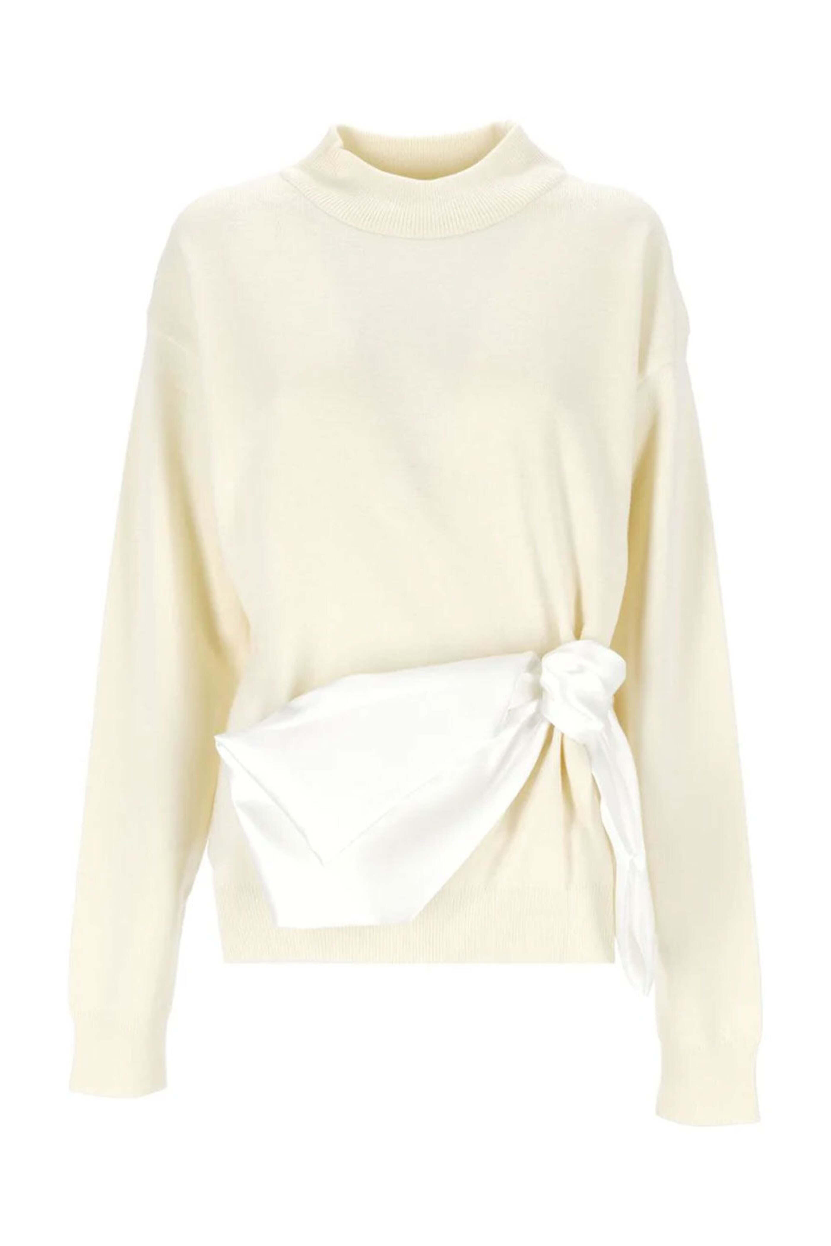 - Marques ' Almeida Off White Satin Bow Merino Knit Sweater