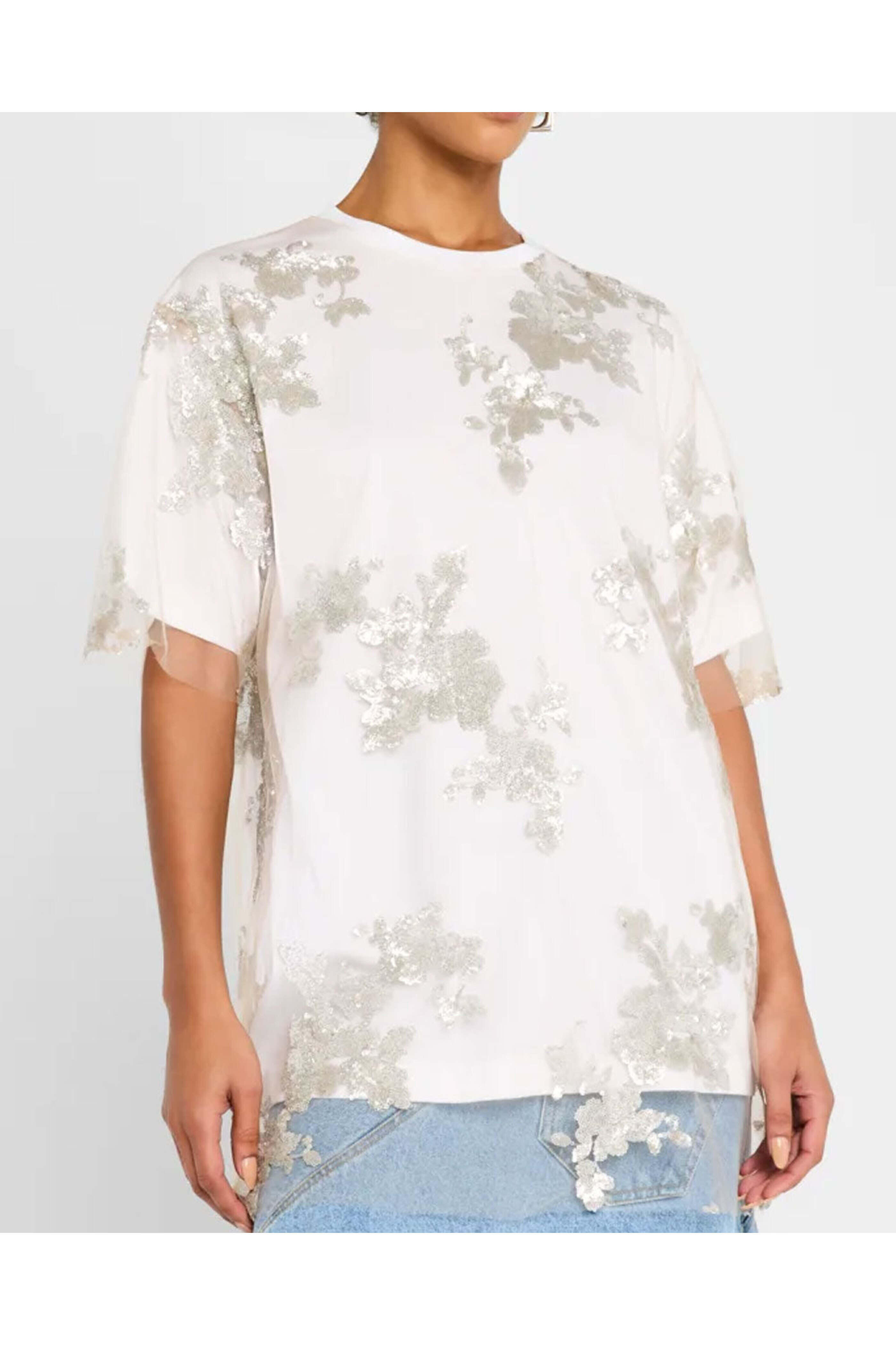 White Embroidered Relaxed T-Shirt