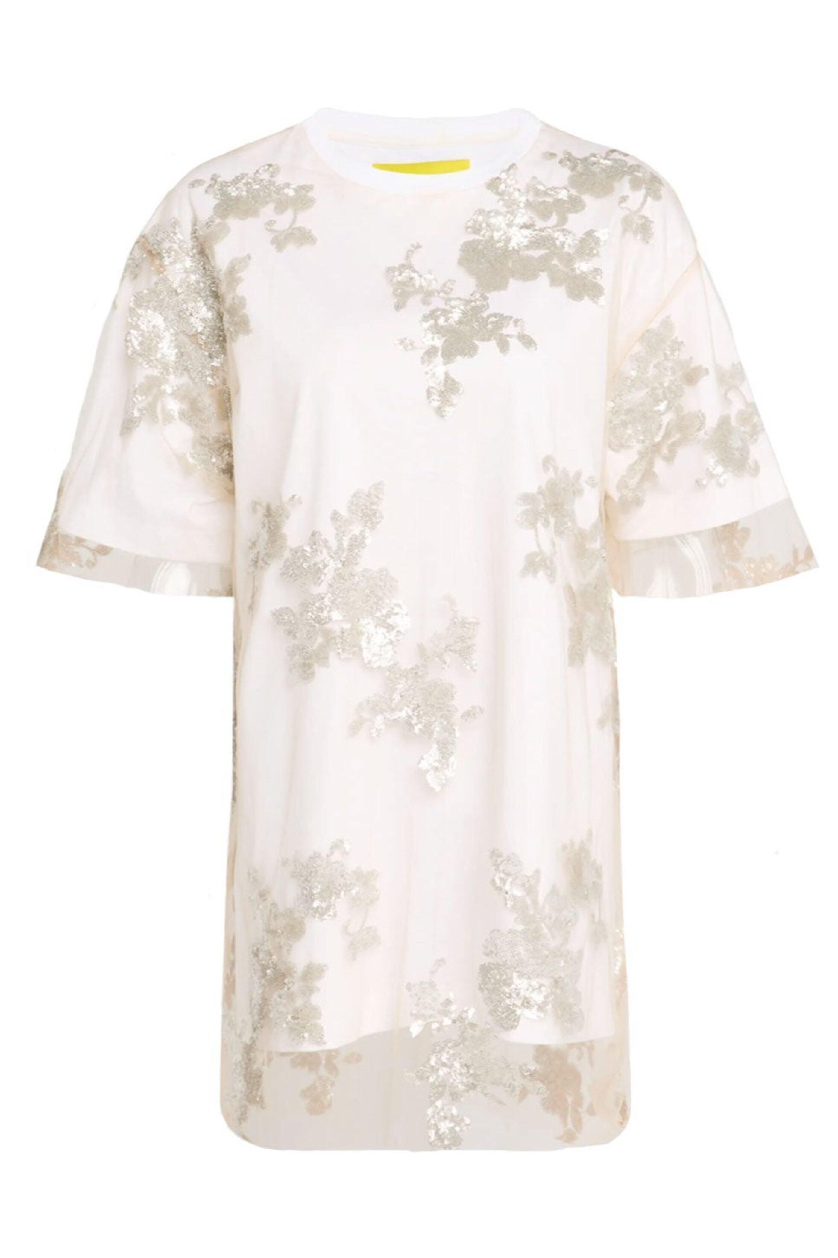 Marques ' Almeida White Embroidery Relaxed T-Shirt. Crew neckline . Short sleeves . Relaxed fit . Hem falls to the hip . Pullover style . Polyester/organic cotton/elastane . Lining: Cotton . Made in Portugal . Hand wash .