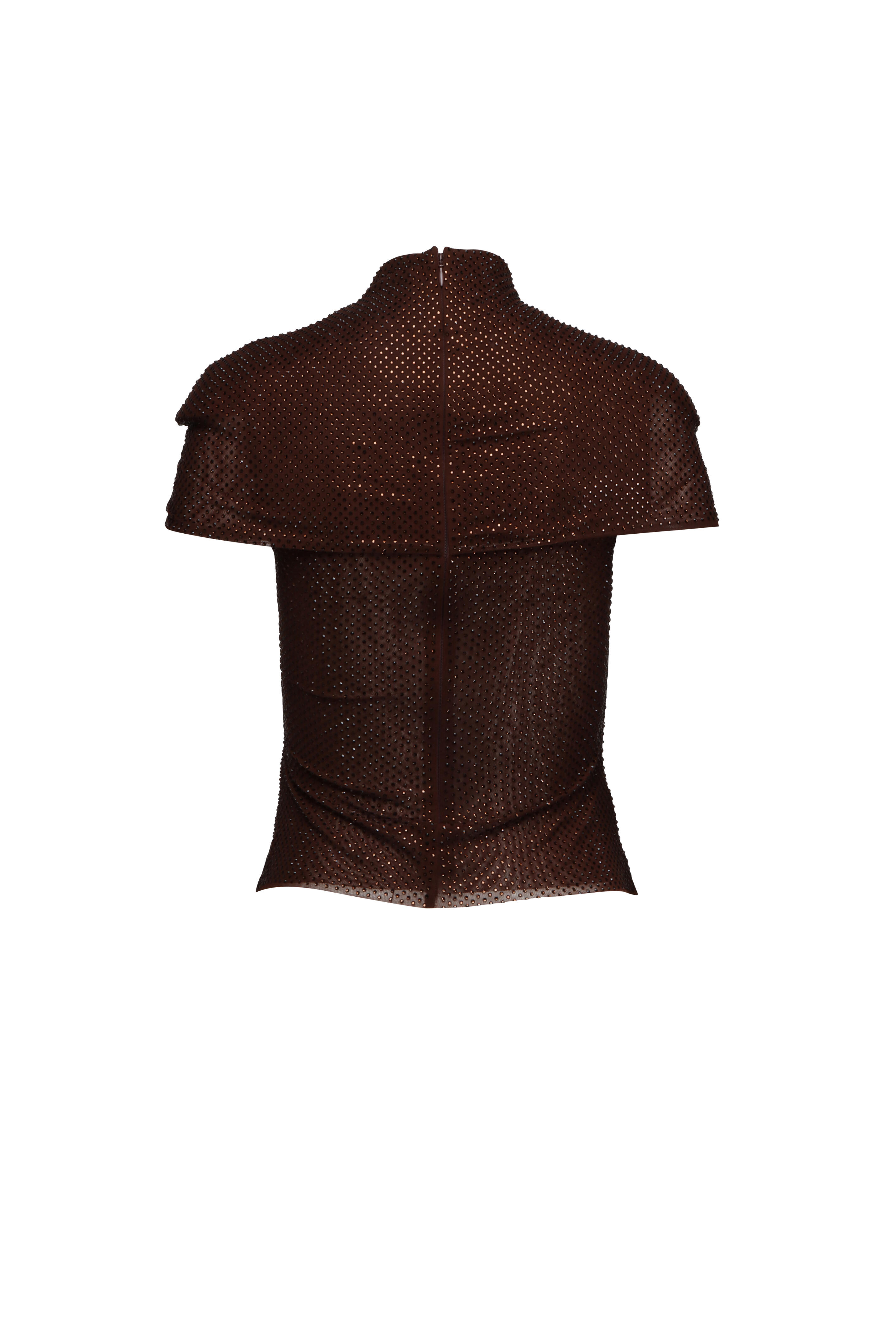High neck. Short sleeves. Front cutout detail. Concealed side zip closure. Slim silhouette. Tonal rhinestone detail throughout. Stretch fabrication. Imported. Bust 15” (US 4). Waist 13” (US 4). Hem 15.7” (US 4). 93% polyester, 7% elastane outer and lining. Dry clean.