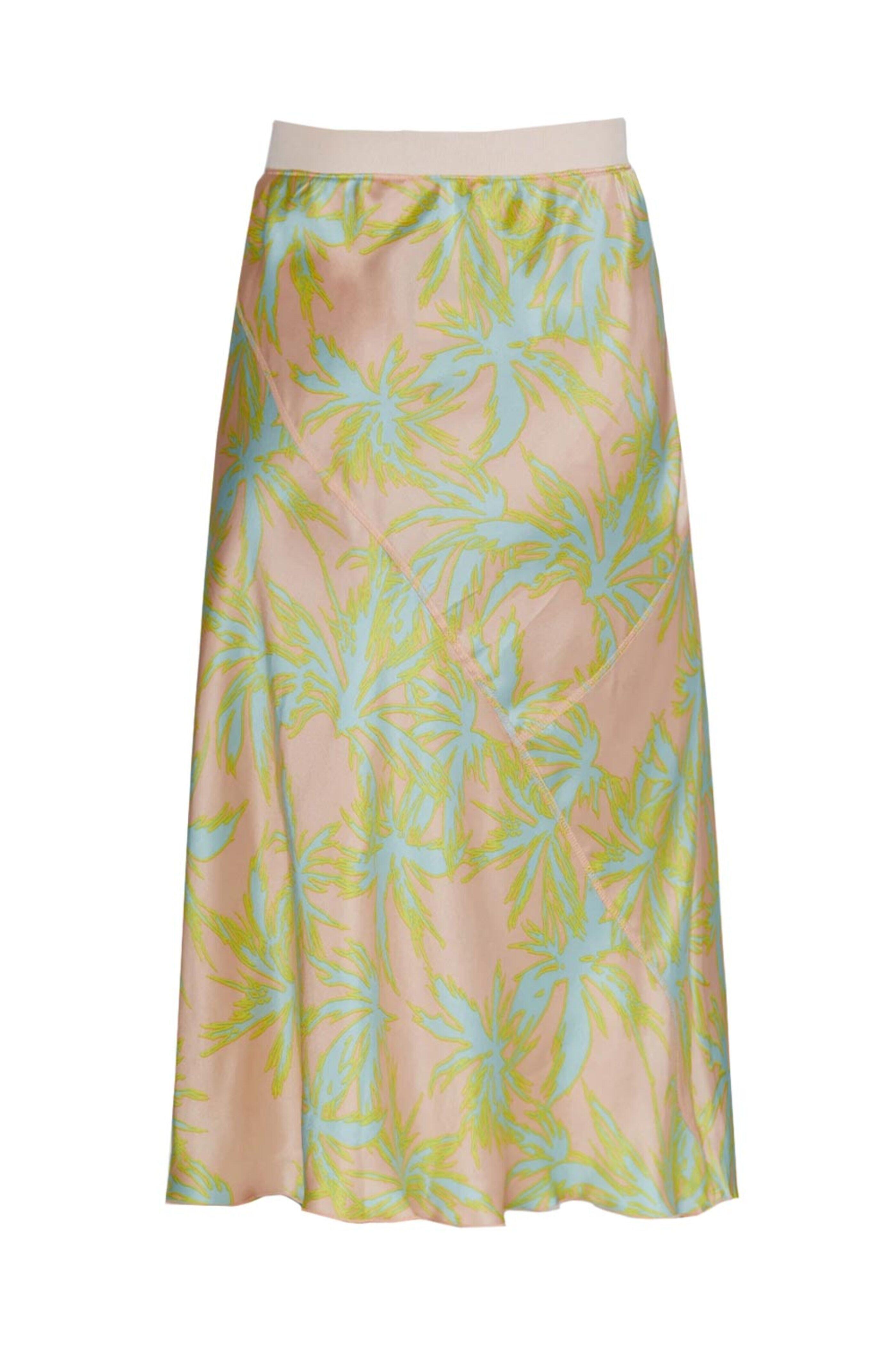 - ATM Anthony Thomas Melillo Palm Print Silk Midi Skirt Elastic waistband A line silhouette Midi length Unlined 100% silk
