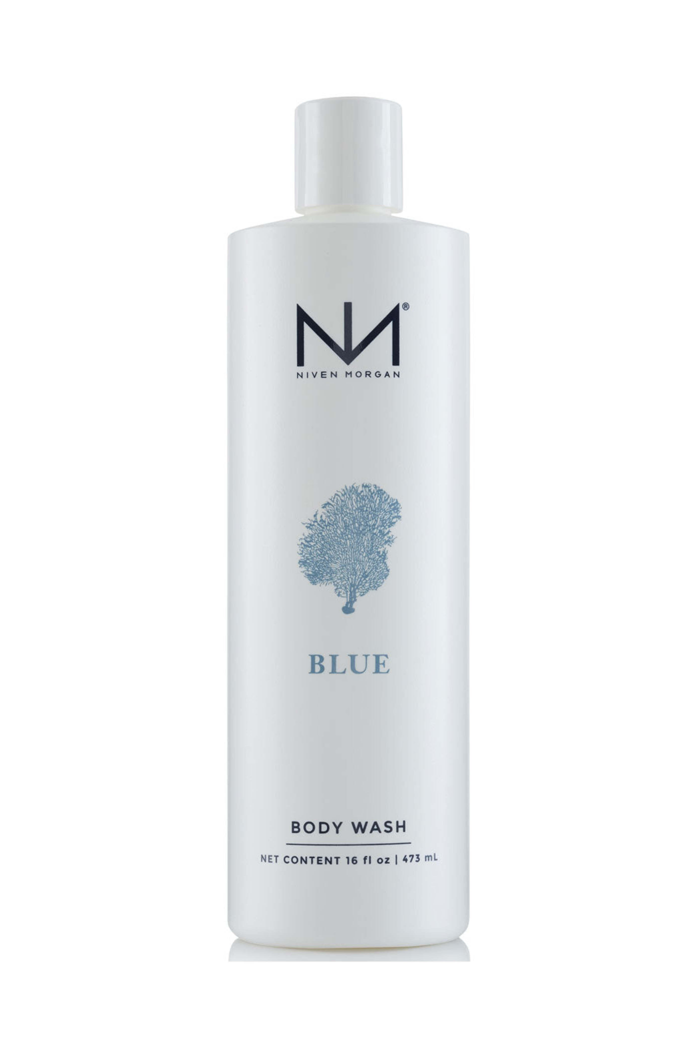 Niven Morgan Blue Body Wash Foaming gel enriched with vitamin E~ soothing chamomile~ comfrey~ and arnica extract Paraben free~ sulfate free~ dye free~ no animal testing 16 fl oz.